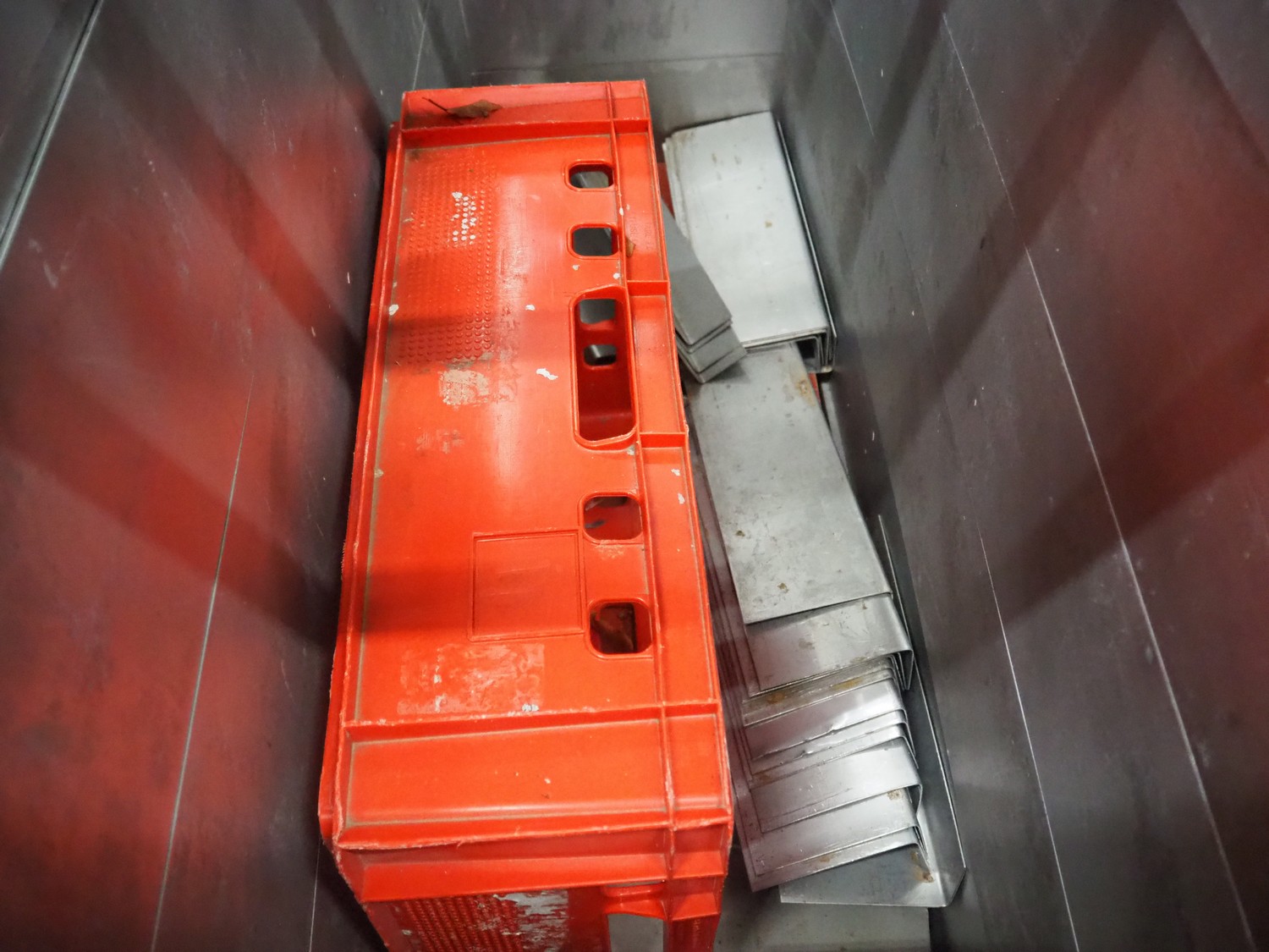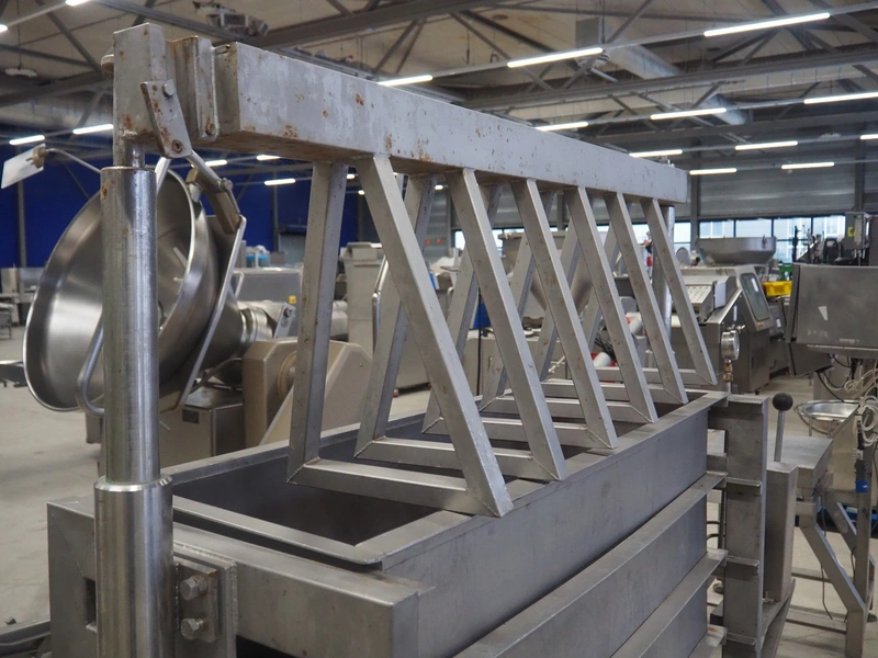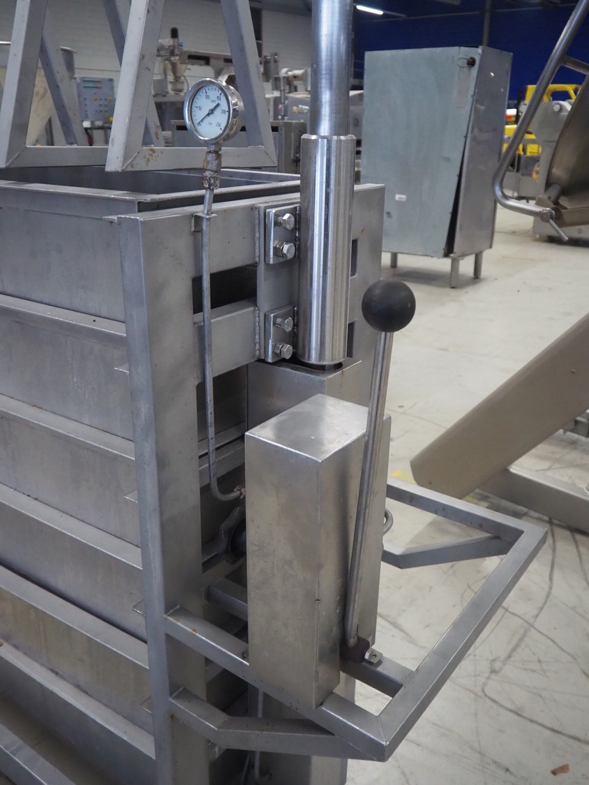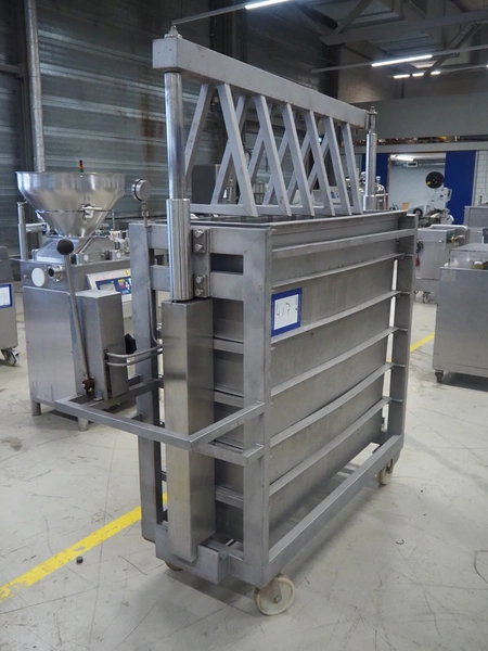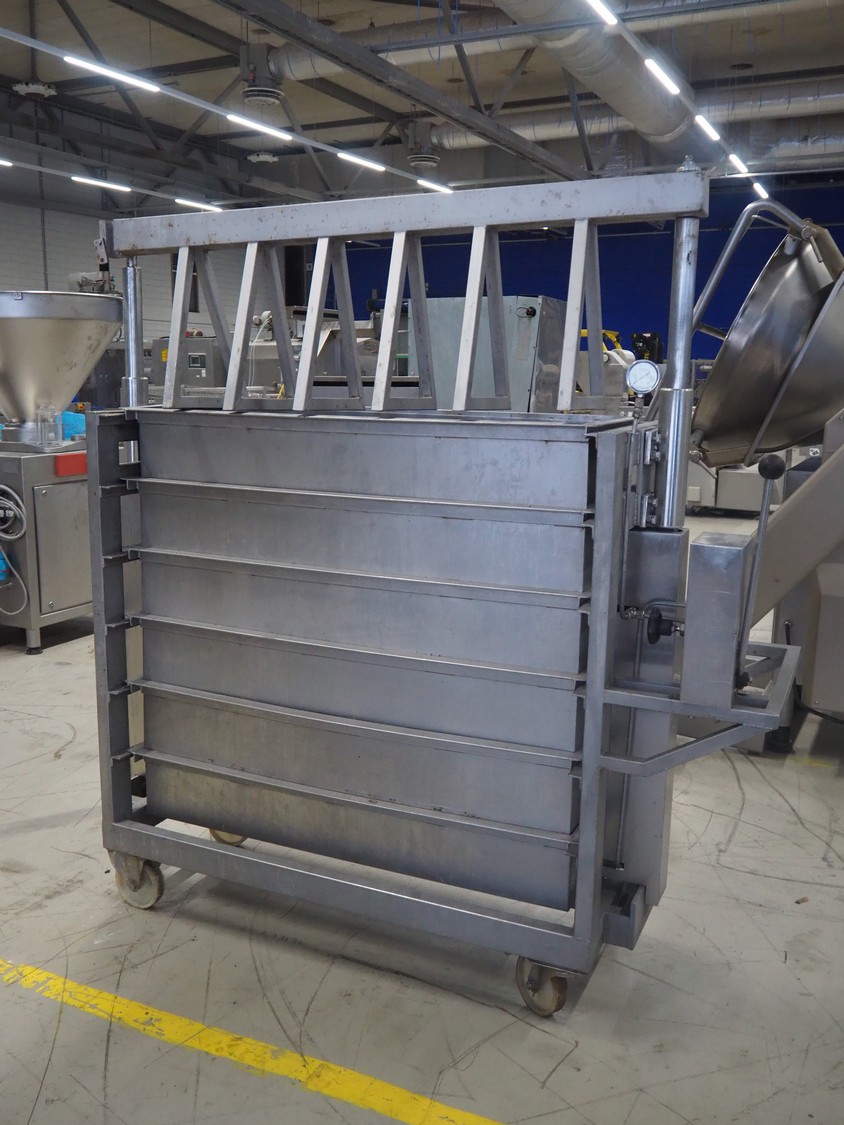 Mobile meat press, dimensions: 1800 mm x 600 mm x 950 mm.
