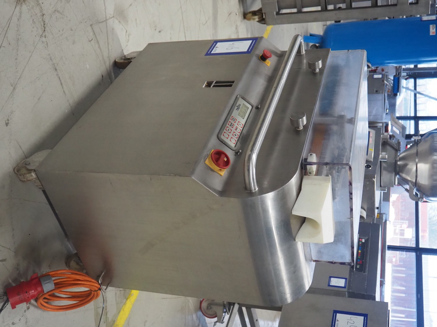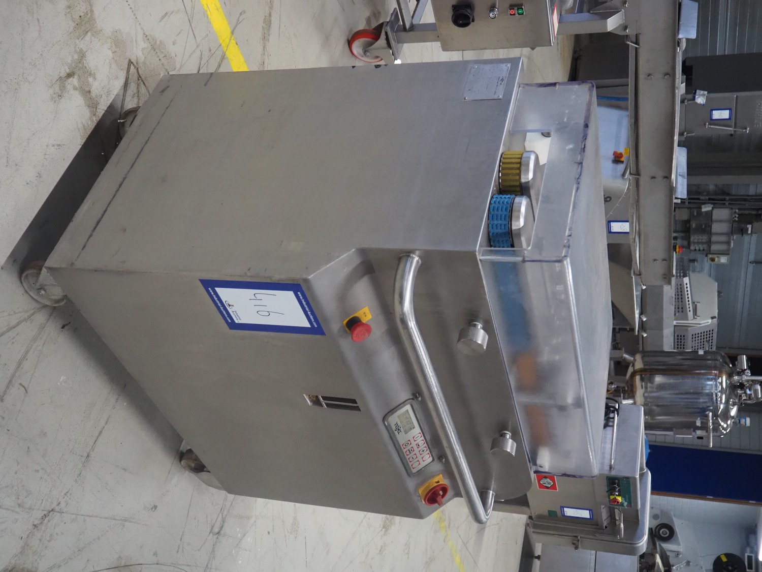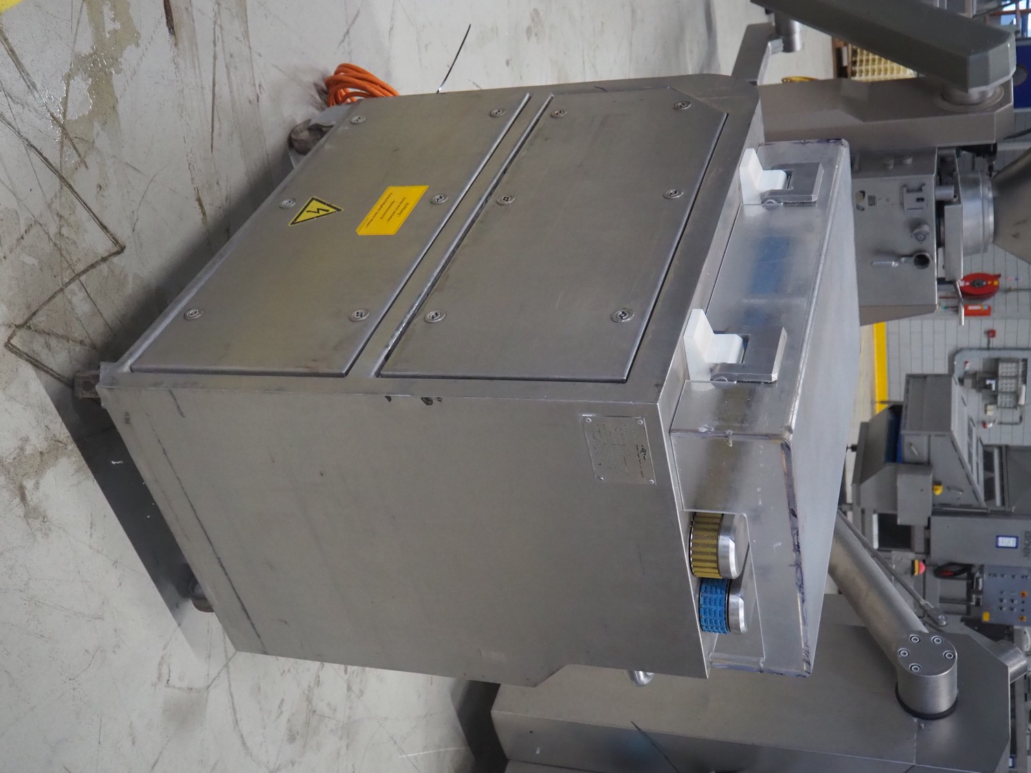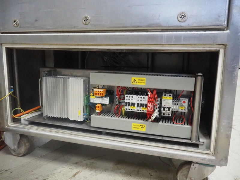 Inotec mobile sausage cutter, type: WI 93 S3/1, machine number: 1310, year of construction: 2002, 400 V, 3 Ph, 50 Hz, 5 A, 2 kW, dimensions: 1000 mm x 600 mm x 1150 mm.