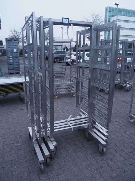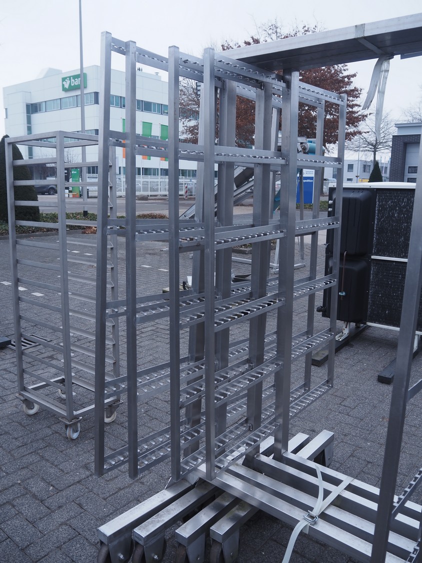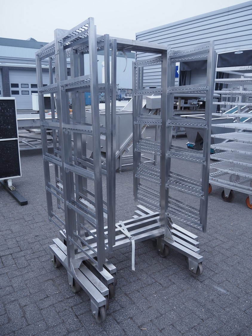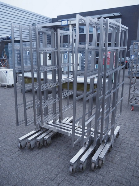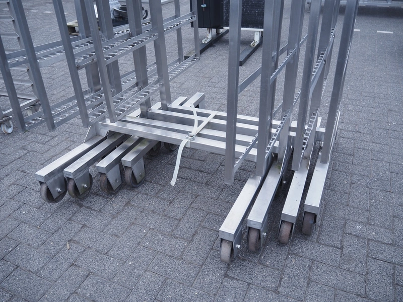 4 s/s smoke trolleys, 6 floors each, dimensions floors: 1000 mm x 970 mm, total dimensions: (4x) 1000 mm x 1020 mm x 2000 mm.