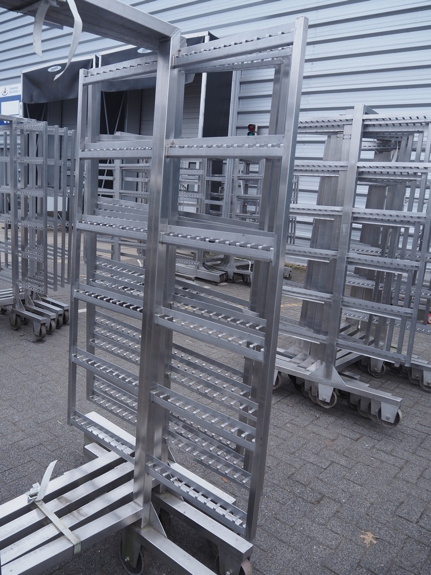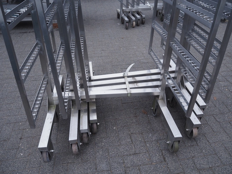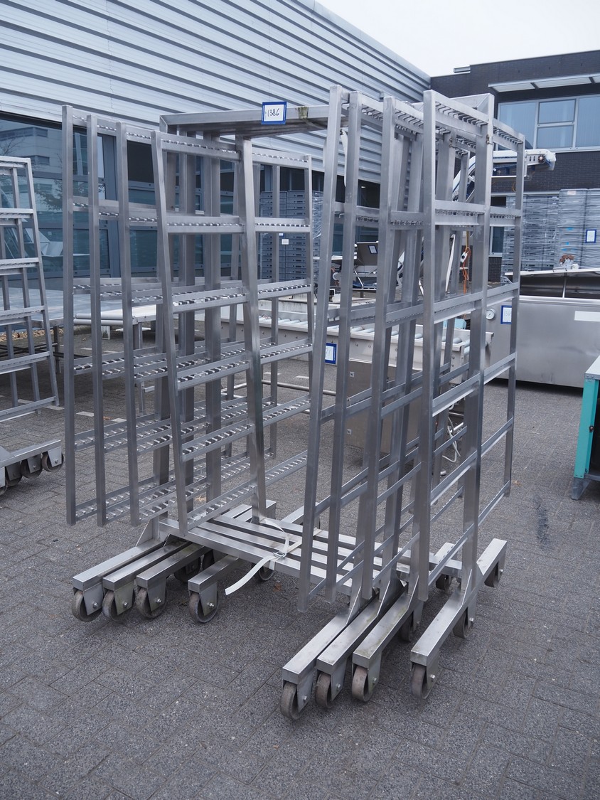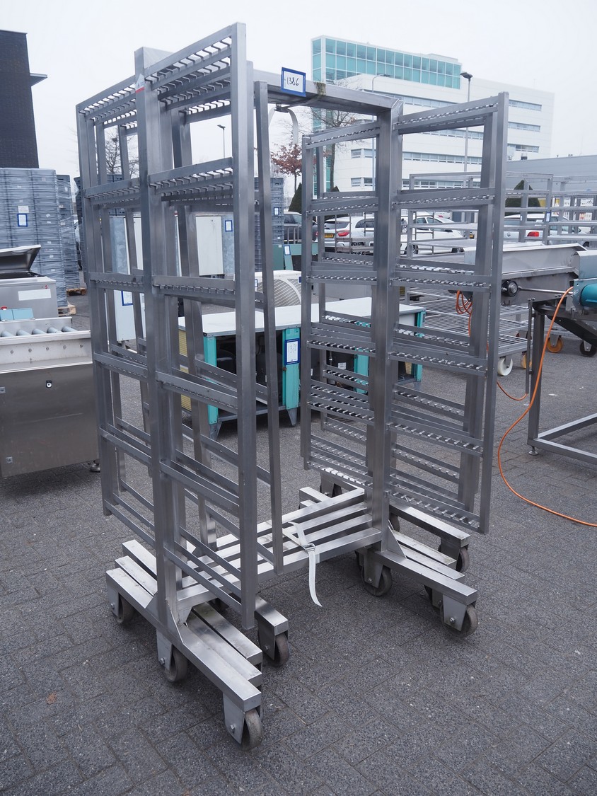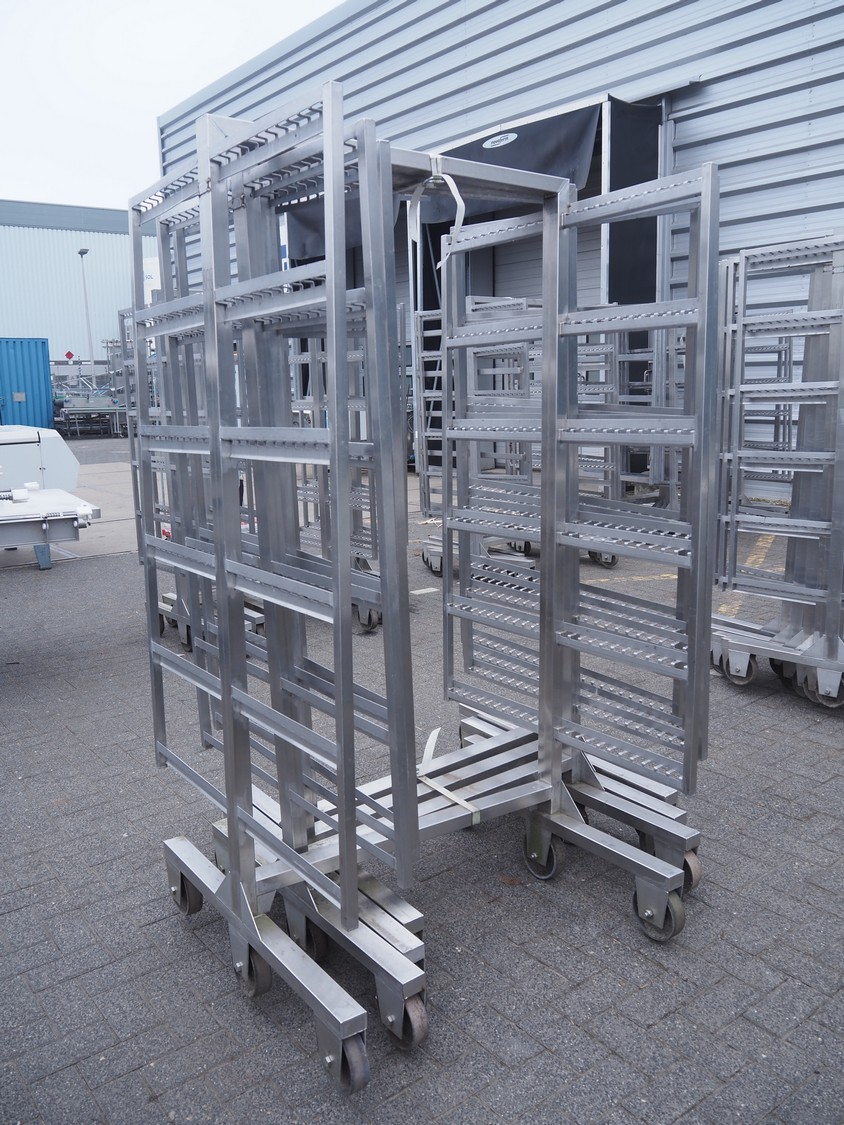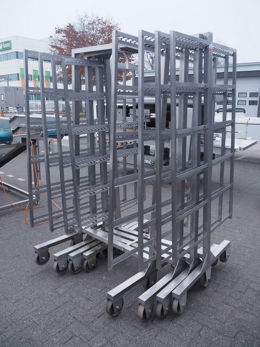 4 s/s smoke trolleys, 6 floors each, dimensions floors: 1000 mm x 970 mm, total dimensions: (4x) 1000 mm x 1020 mm x 2000 mm.