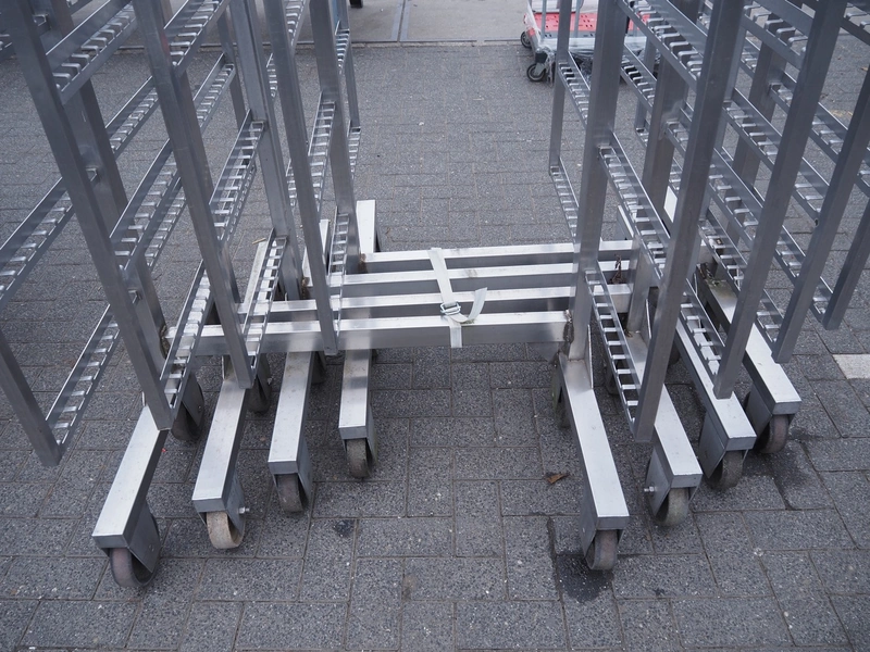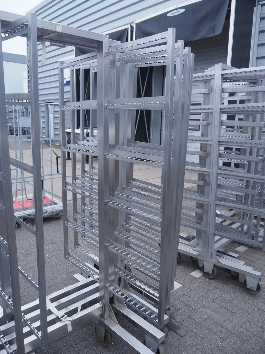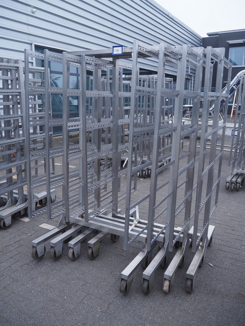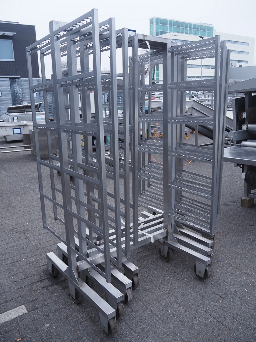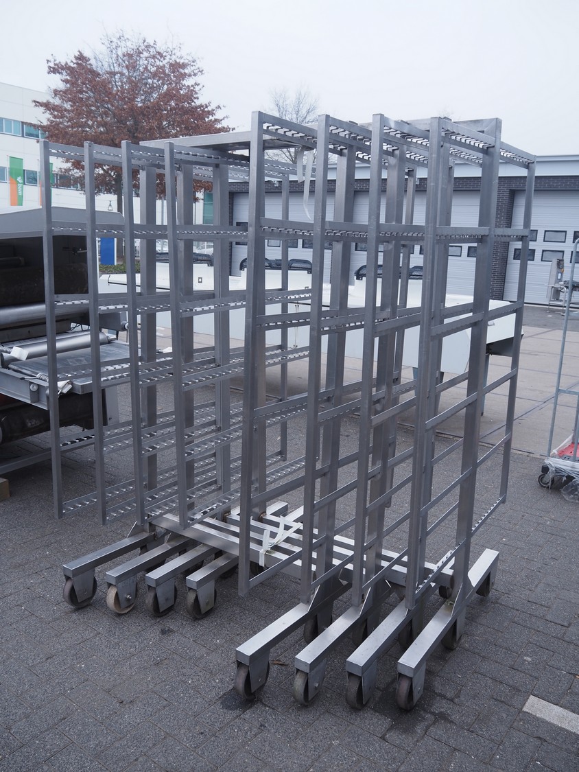 4 s/s smoke trolleys, 6 floors each, dimensions floors: 1000 mm x 970 mm, total dimensions: (4x) 1000 mm x 1020 mm x 2000 mm.