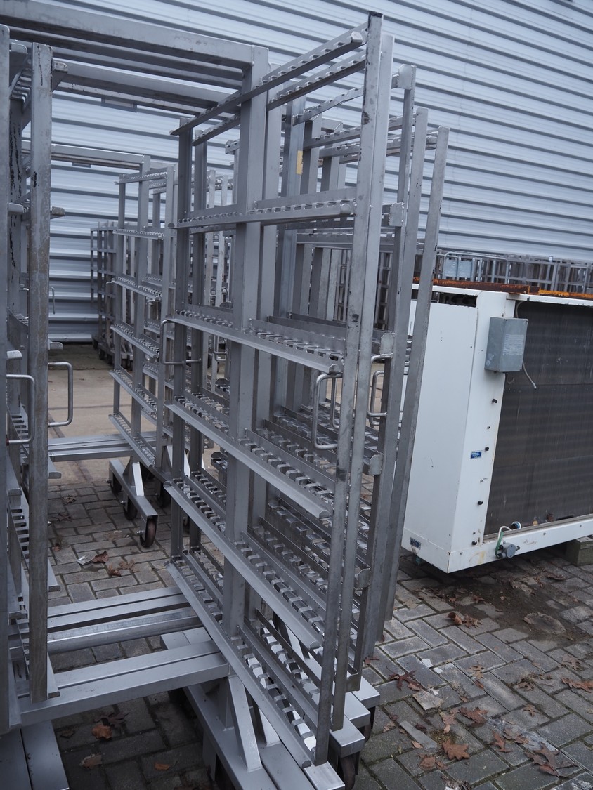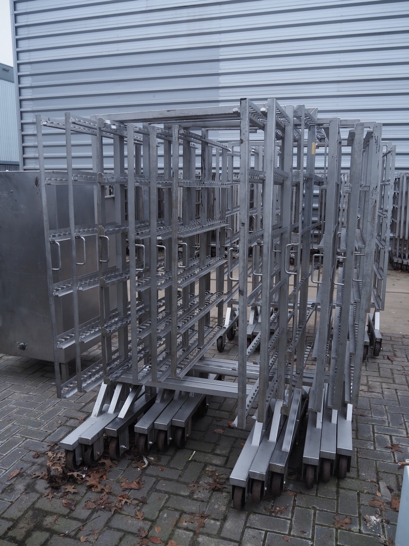 6 s/s smoke trolleys, 6 floors, dimensions: (6x) 1000 mm x 1010 mm x 1940 mm.