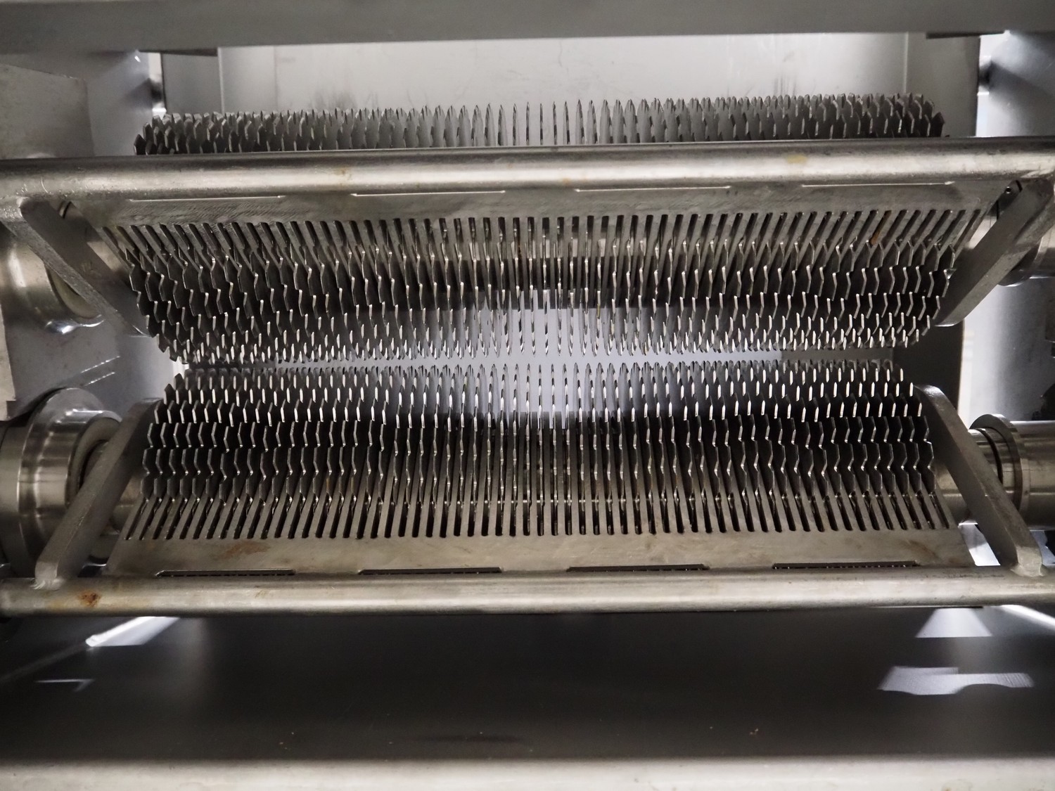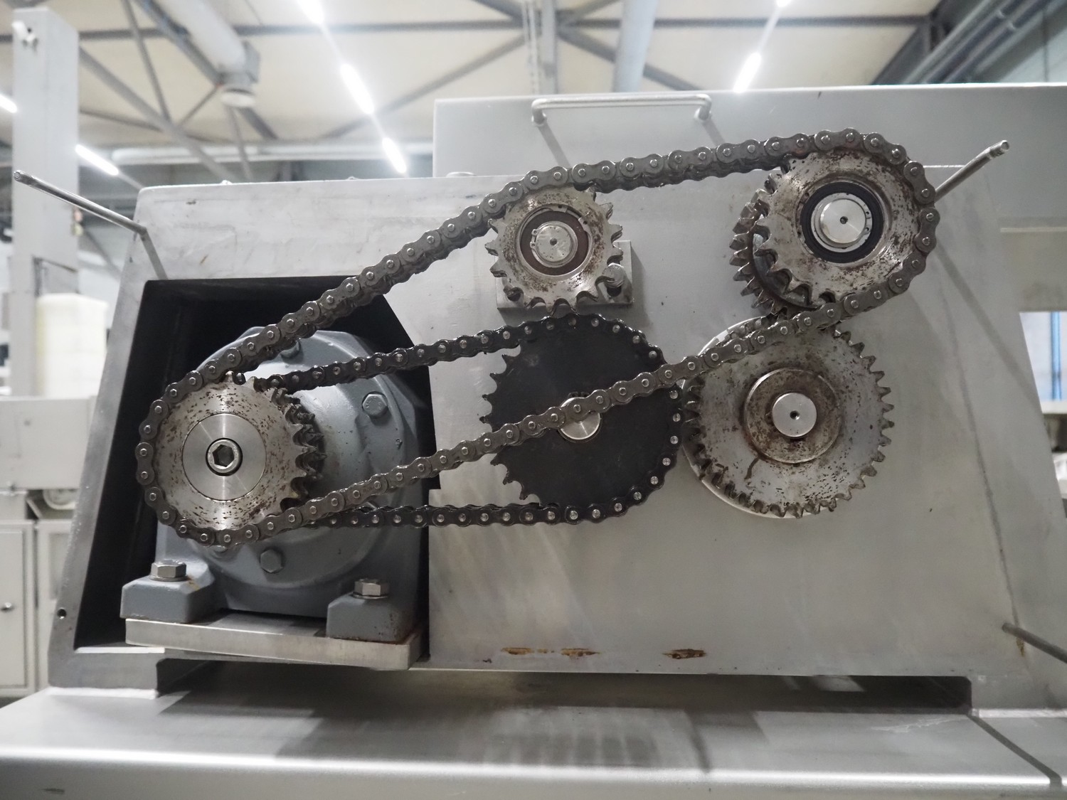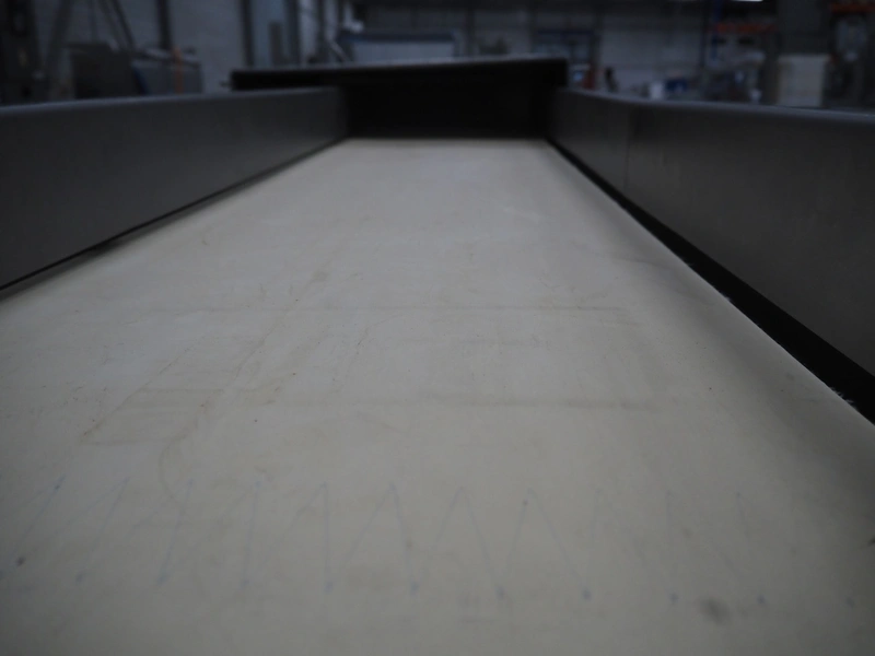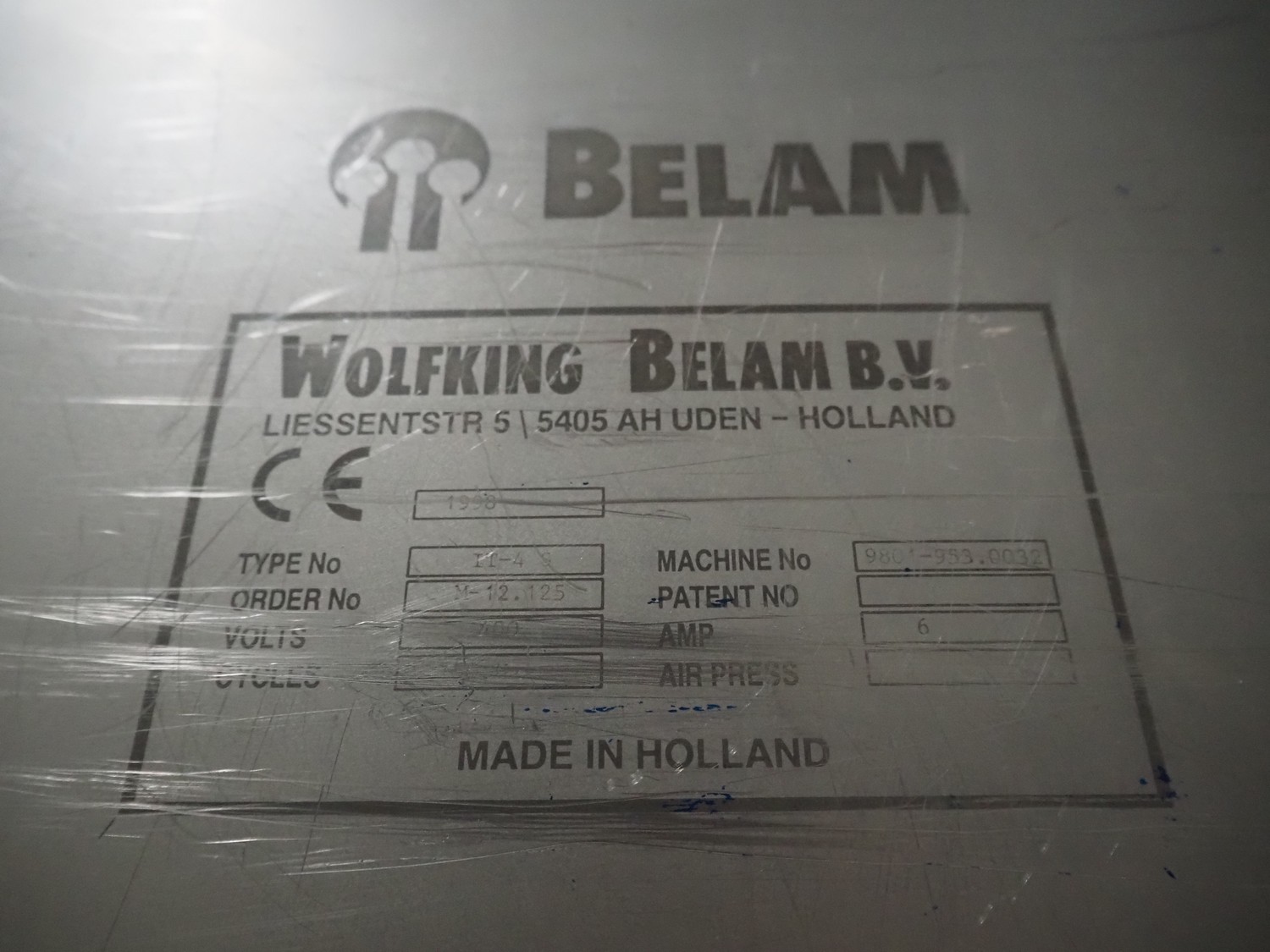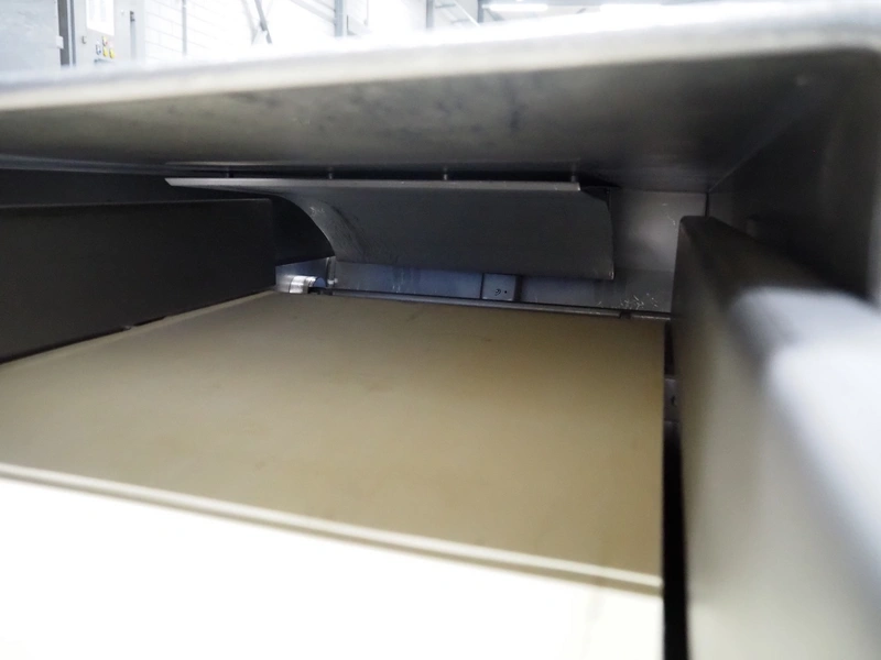 Wolfking Belam B.V. mobile steaker with mobile infeed belt, infeed belt, 400 V, 50 Hz, plastic belt, belt width: 410 mm, steaker type: IT-4 S, machine number: 9801-953.0032, year of construction: 1998, 400 V, 50 Hz, 6 A, working width: 440 mm, total dimensions: 3650 mm x 1400 mm x 1370 mm.