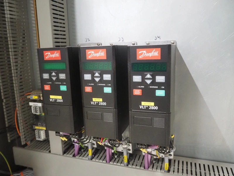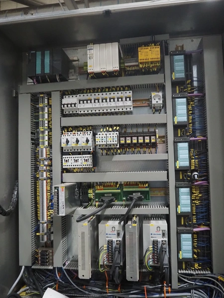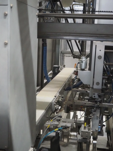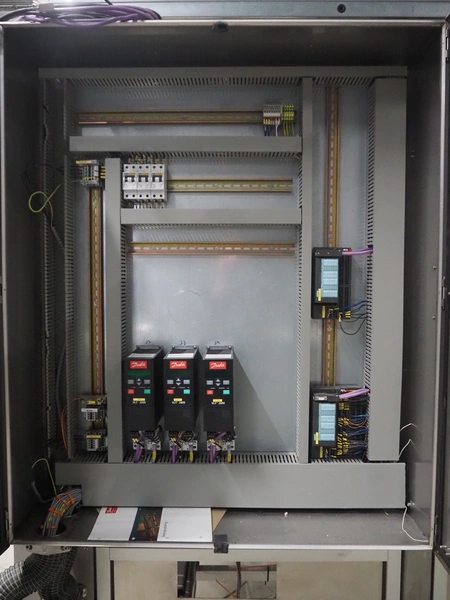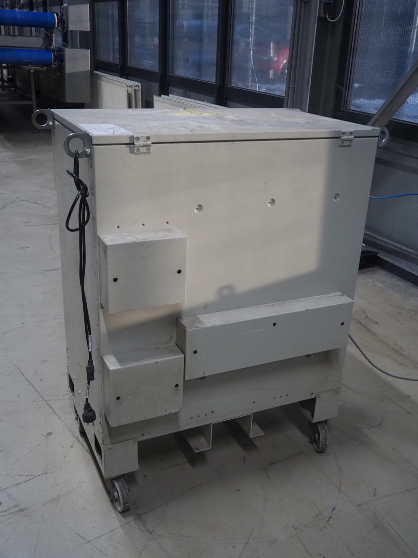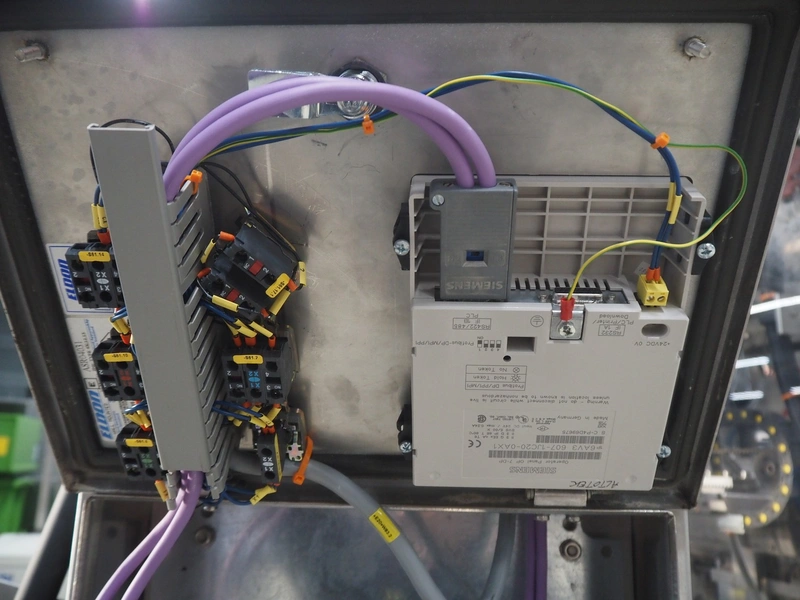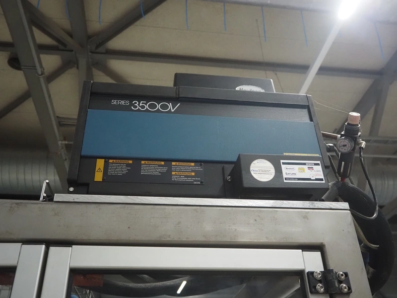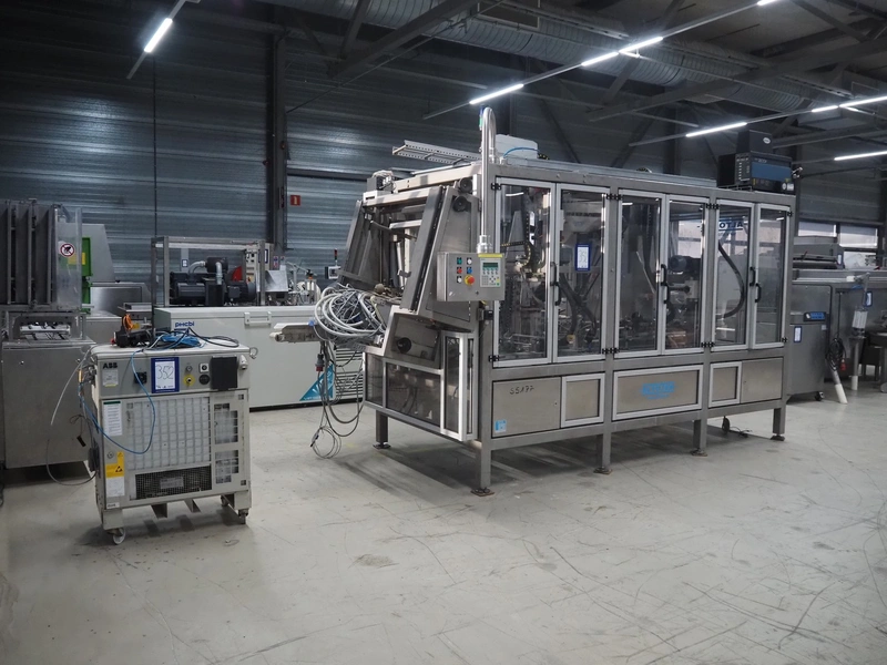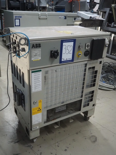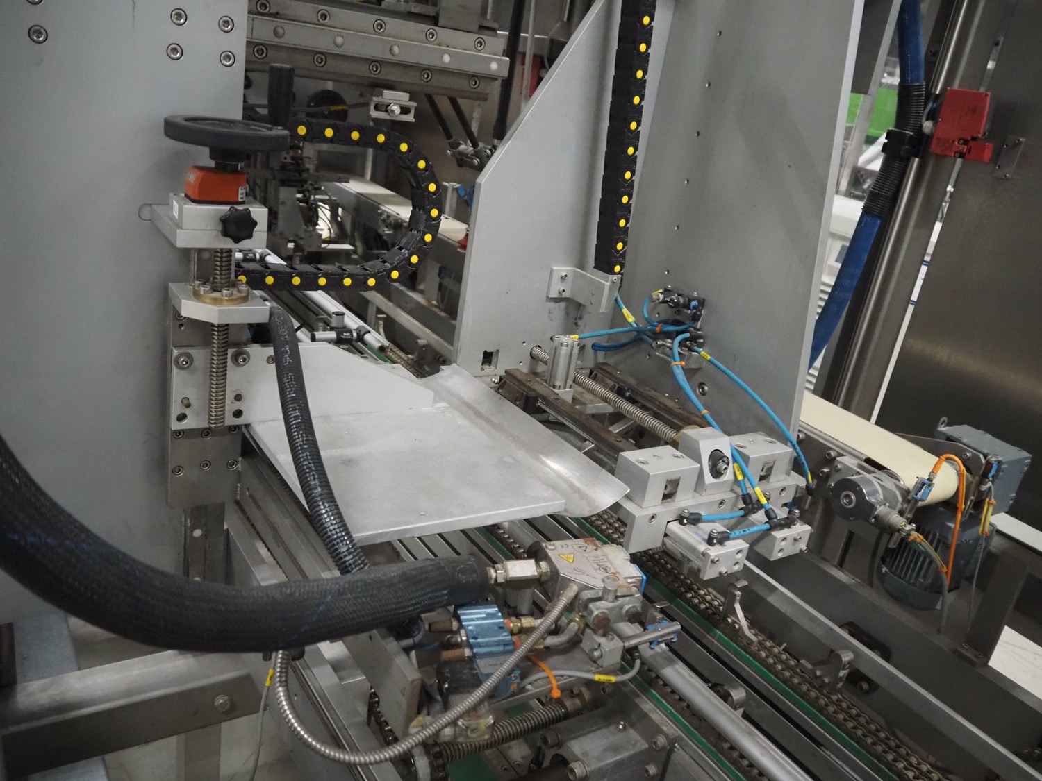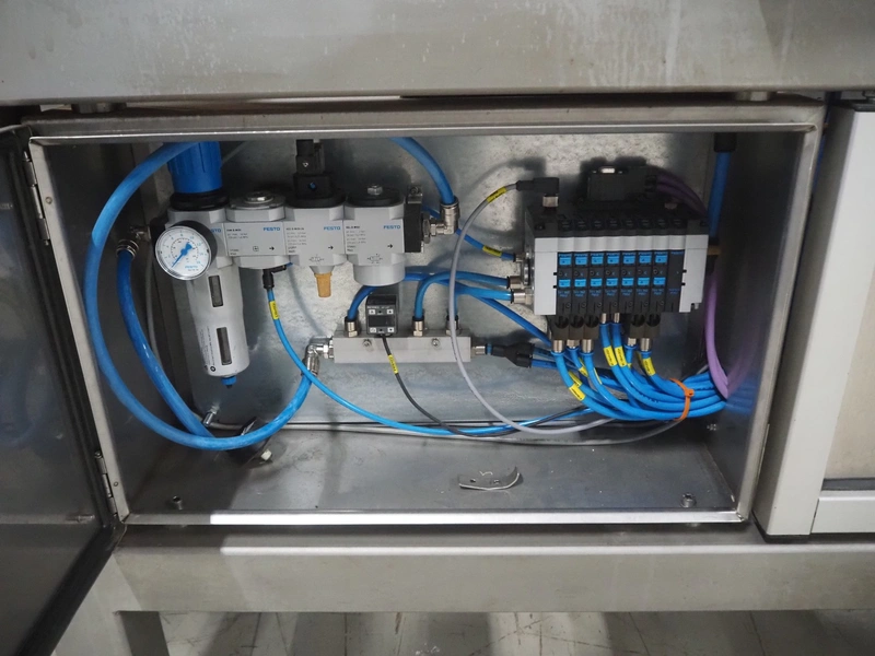 Altotek case erecting and filling machine with FlexPicker, machine number: 754867, year of construction: 31/01-2003, 400 V, 3 Ph, 50 Hz, 35 A, Nordson glue unit, minimum box sizes: 175 mm x 115 mm x 100 mm, maximum box sizes: 350 mm x 250 mm x 250 mm, s/s chain conveyor with dividers, belt width: 200 mm, distance between dividers: 350 mm, divider height: 50 mm, plastic belts, belt width: 130 mm, total dimensions: 4500 mm x 2000 mm x 2600 mm. With ABB control panel and cabinet for robot, type: IRB340 M2000, serial number: 34-20212, year of construction: 19-08-2002, dimensions: 900 mm x 550 mm x 1100 mm.