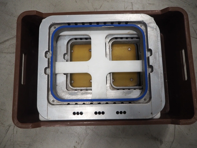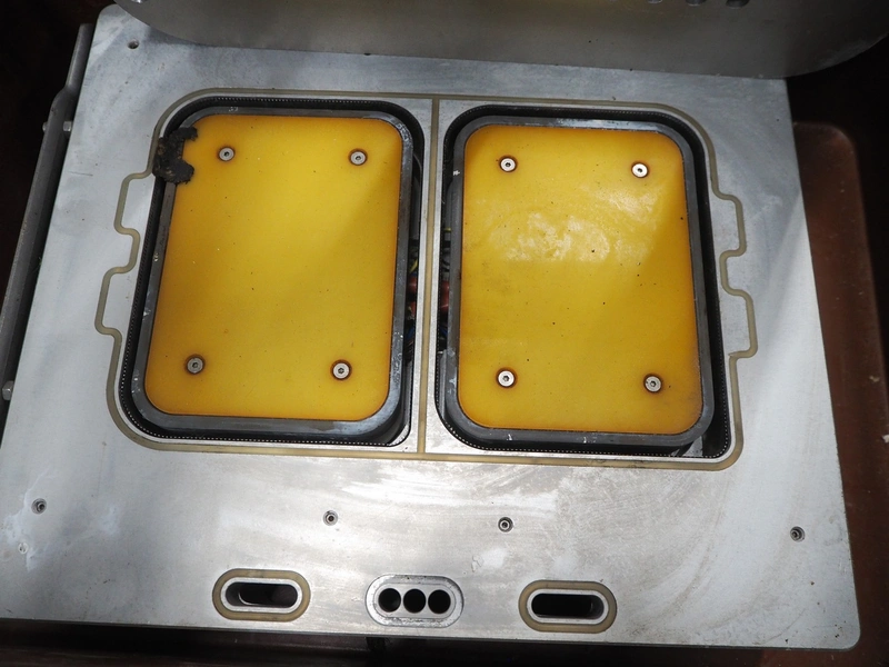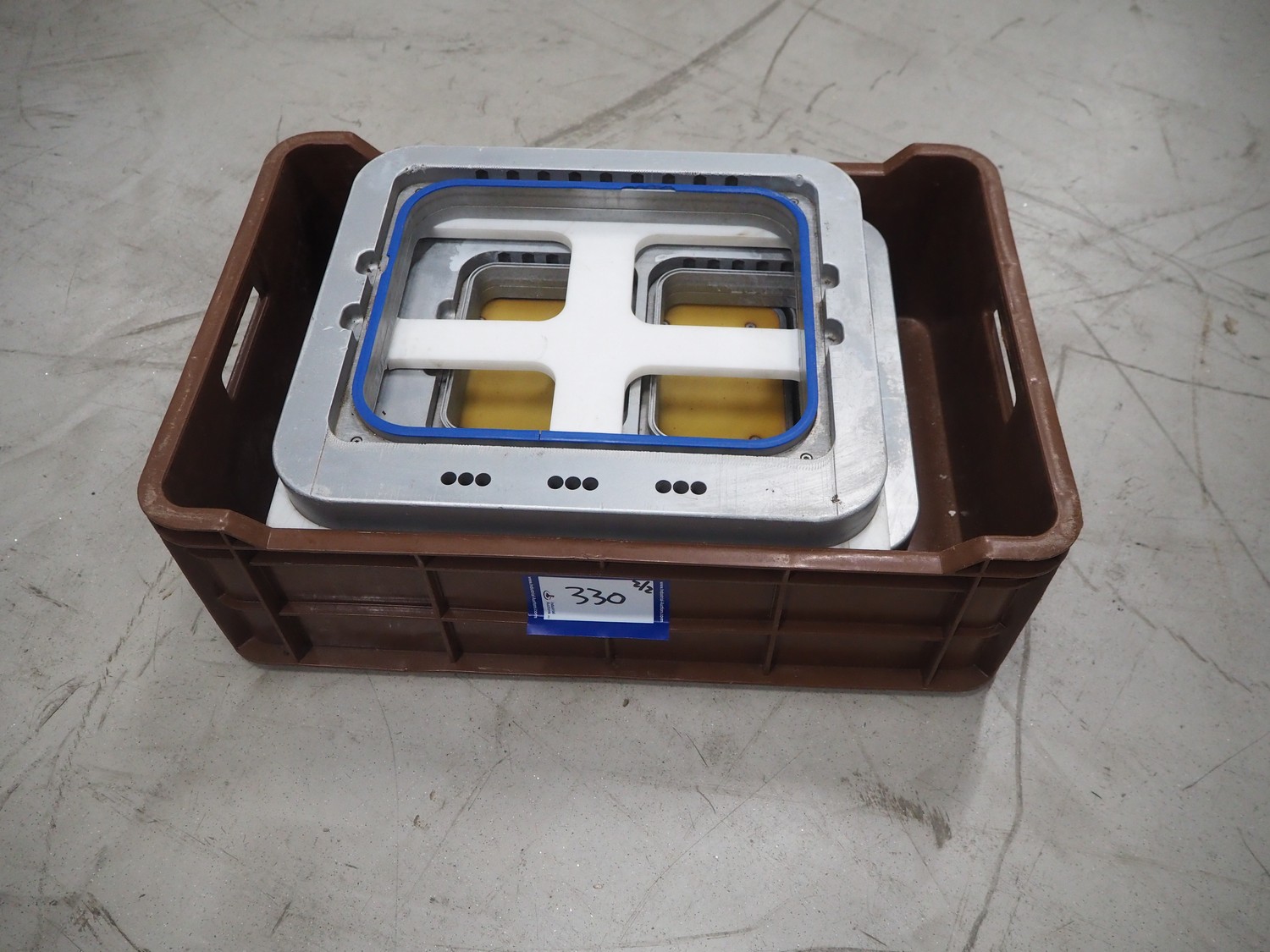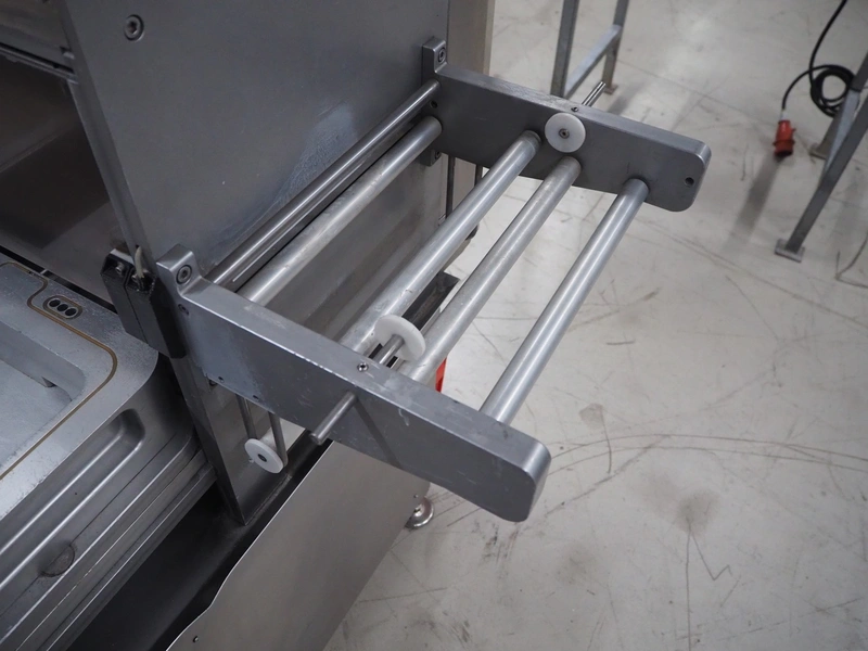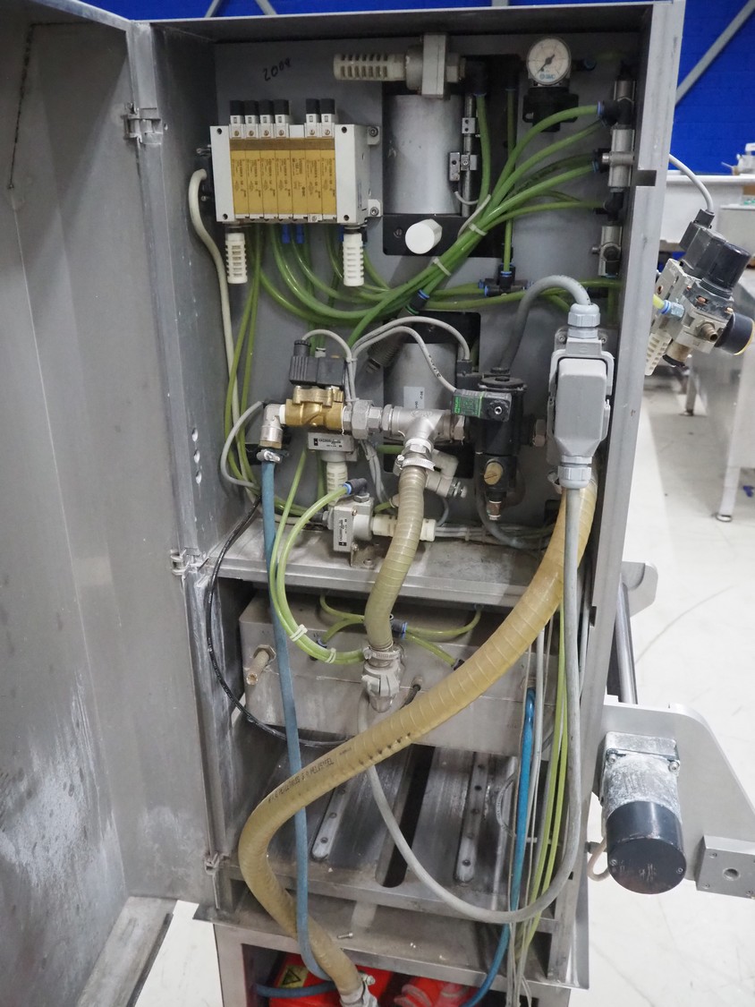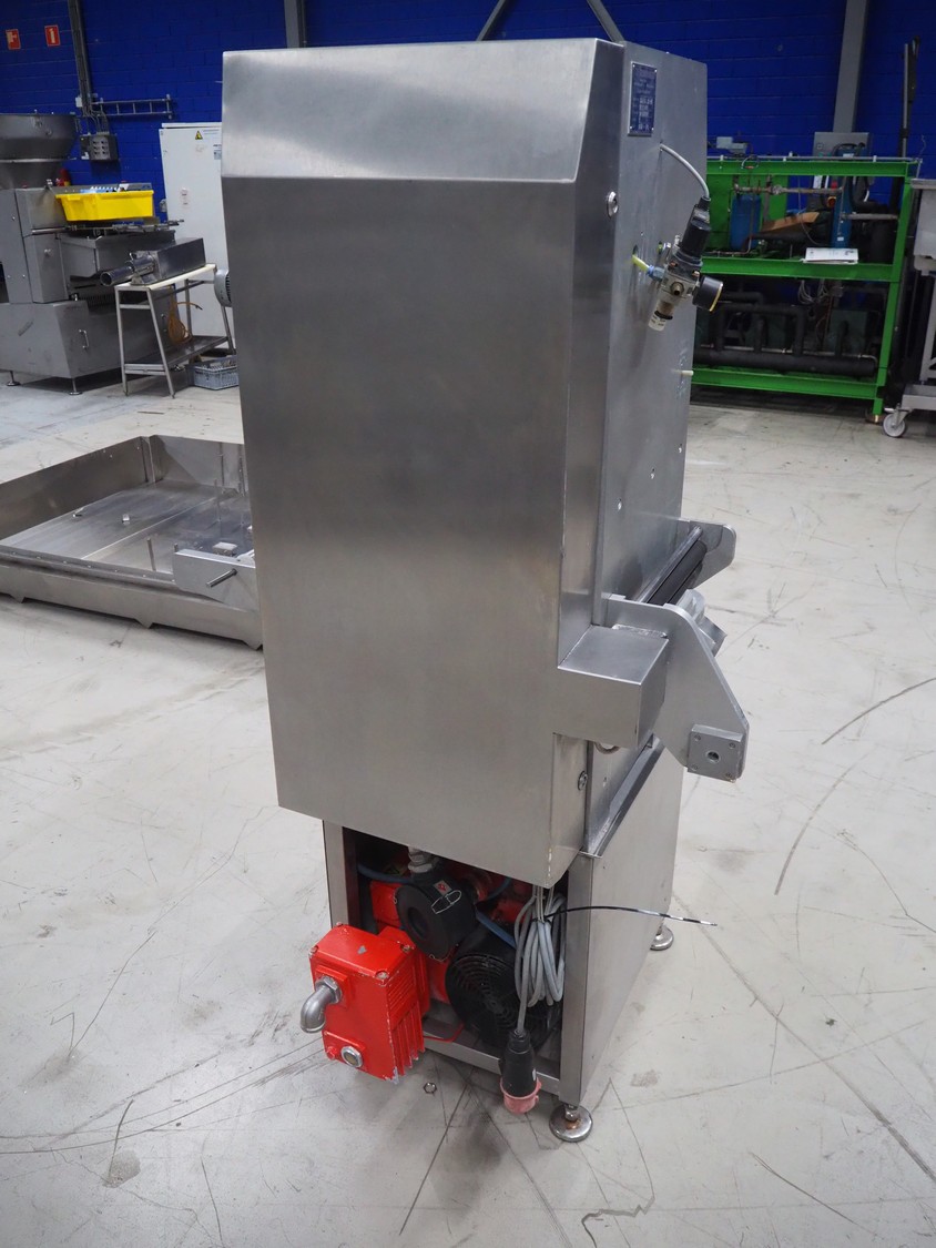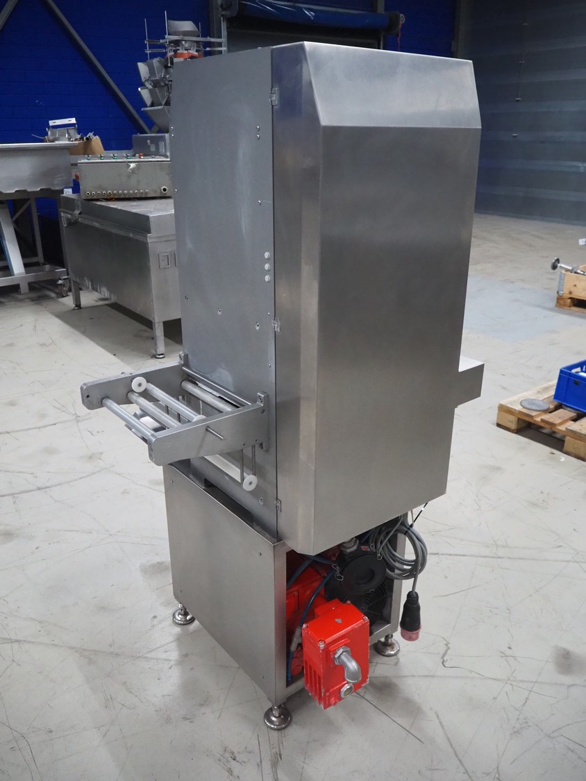 Sealpac traysealer, model: SP-M3, serial number: M3 01 1439, year of construction: 2006, 400/230 V, 3 Ph, 3 kW, 270 kg, dimensions dye: 315 mm x 265 mm, Busch vacuum pump, typer: RC 0063 E, capacity: 63 m³ per hour, total dimensions: 950 mm x 1200 mm x 1770 mm.