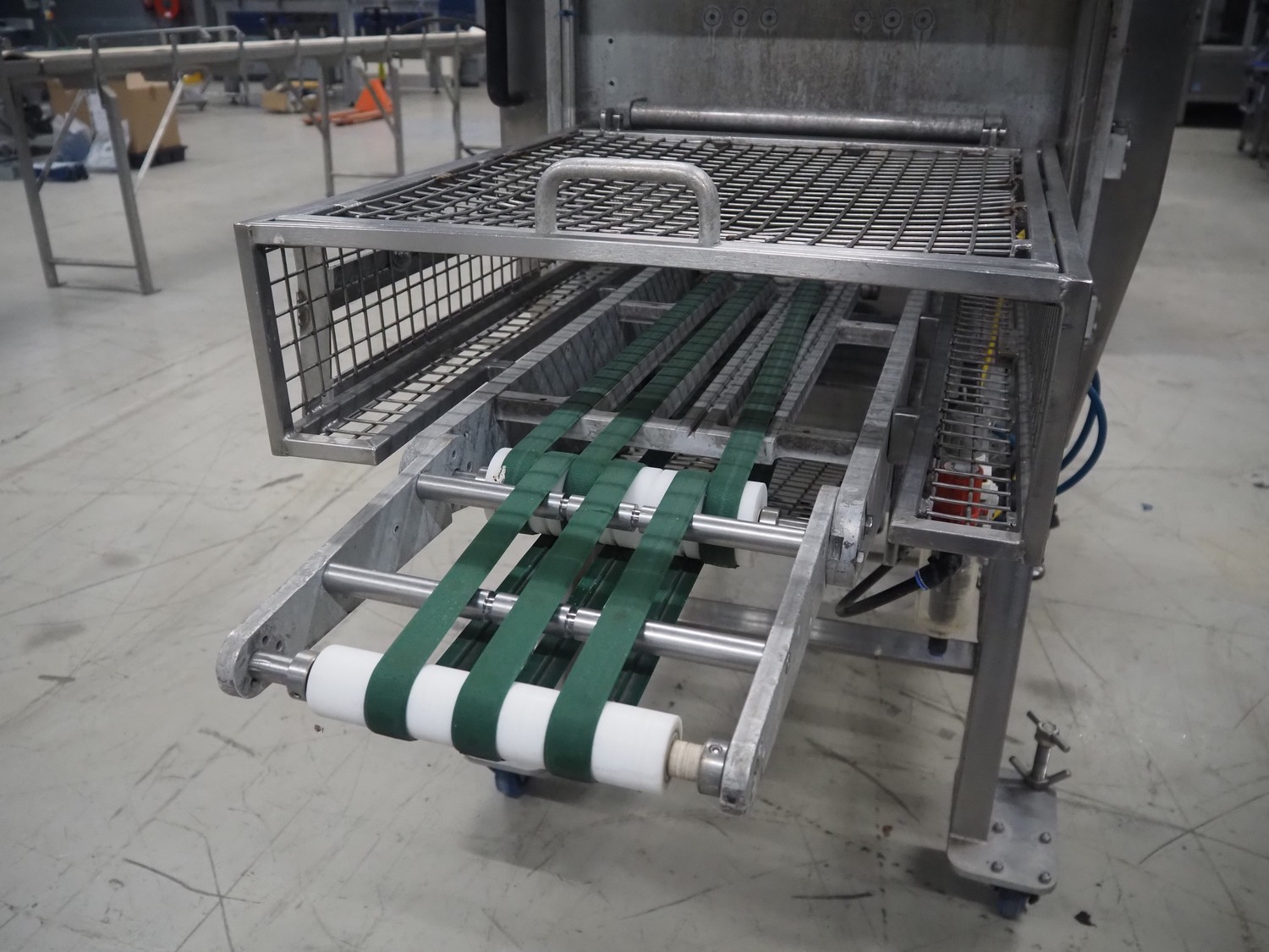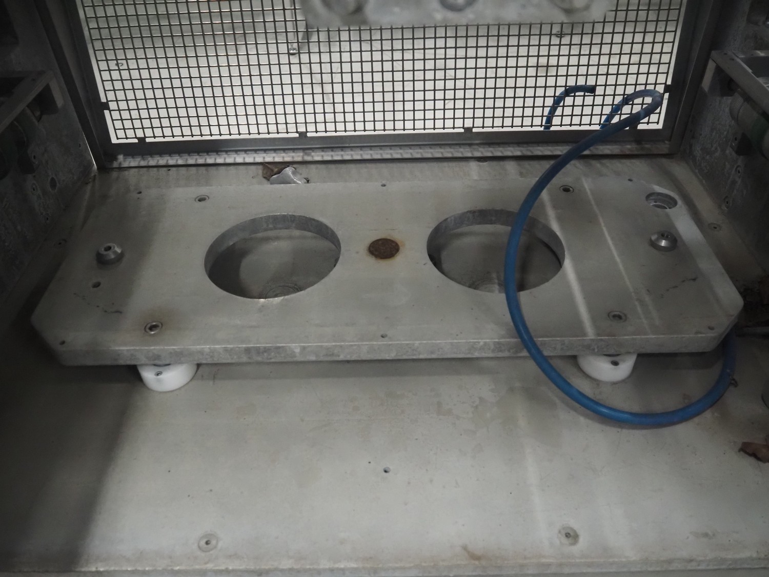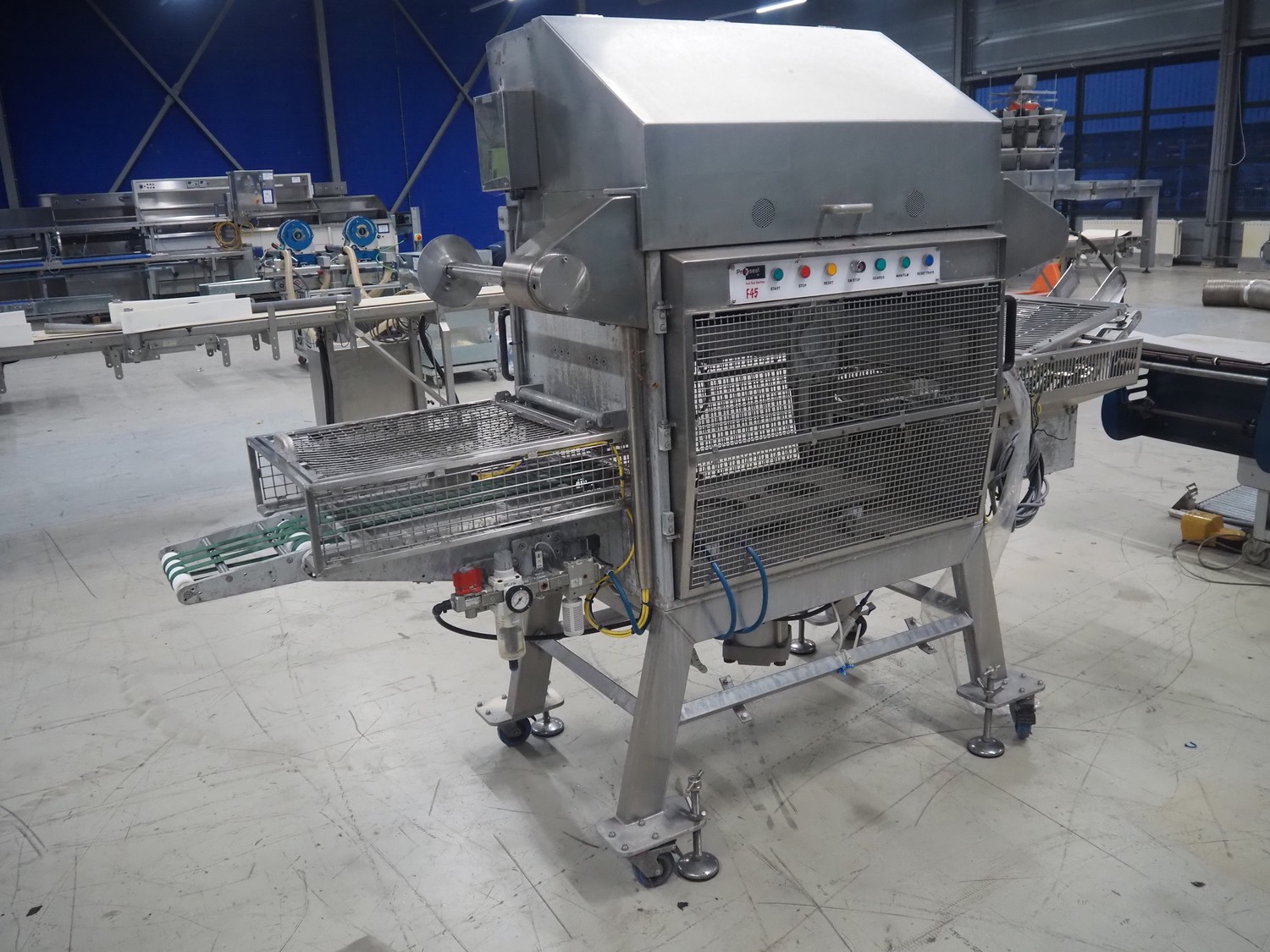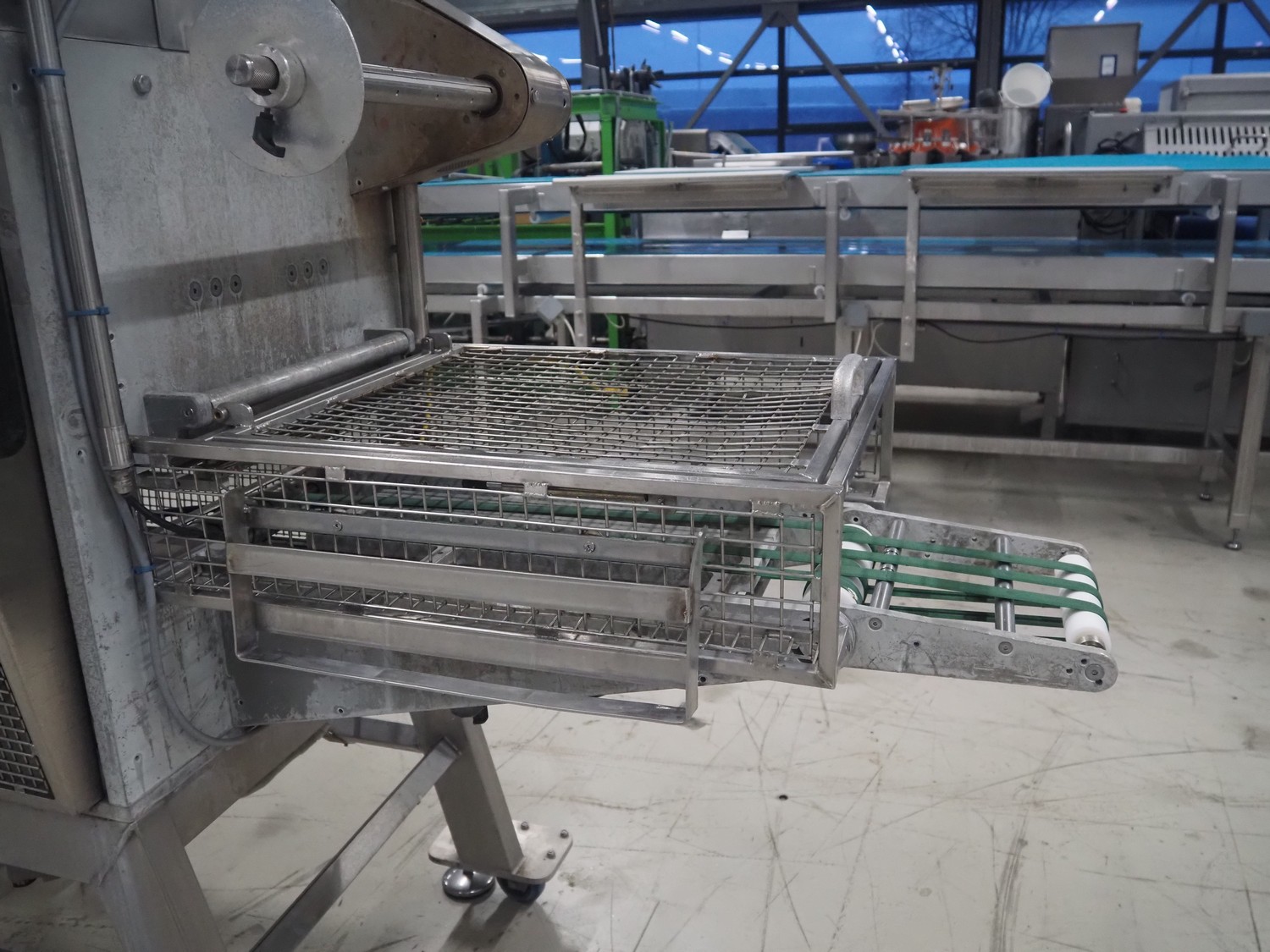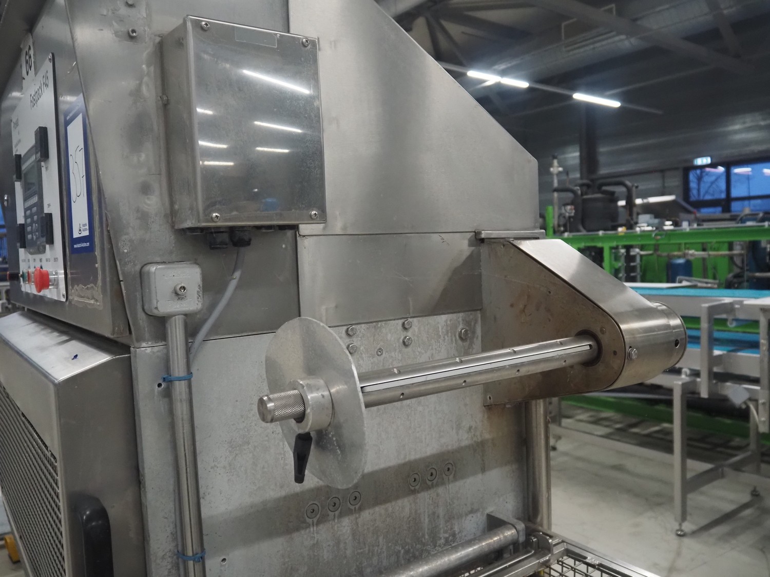 Proseal traysealer, type: Fastpack F45, serial number: 1202, 50 Hz, wire belt, belt width: 175 mm, film width: 215 mm, total dimensions: 2980 mm x 850 mm x 1950 mm. Incomplete, missing dye.