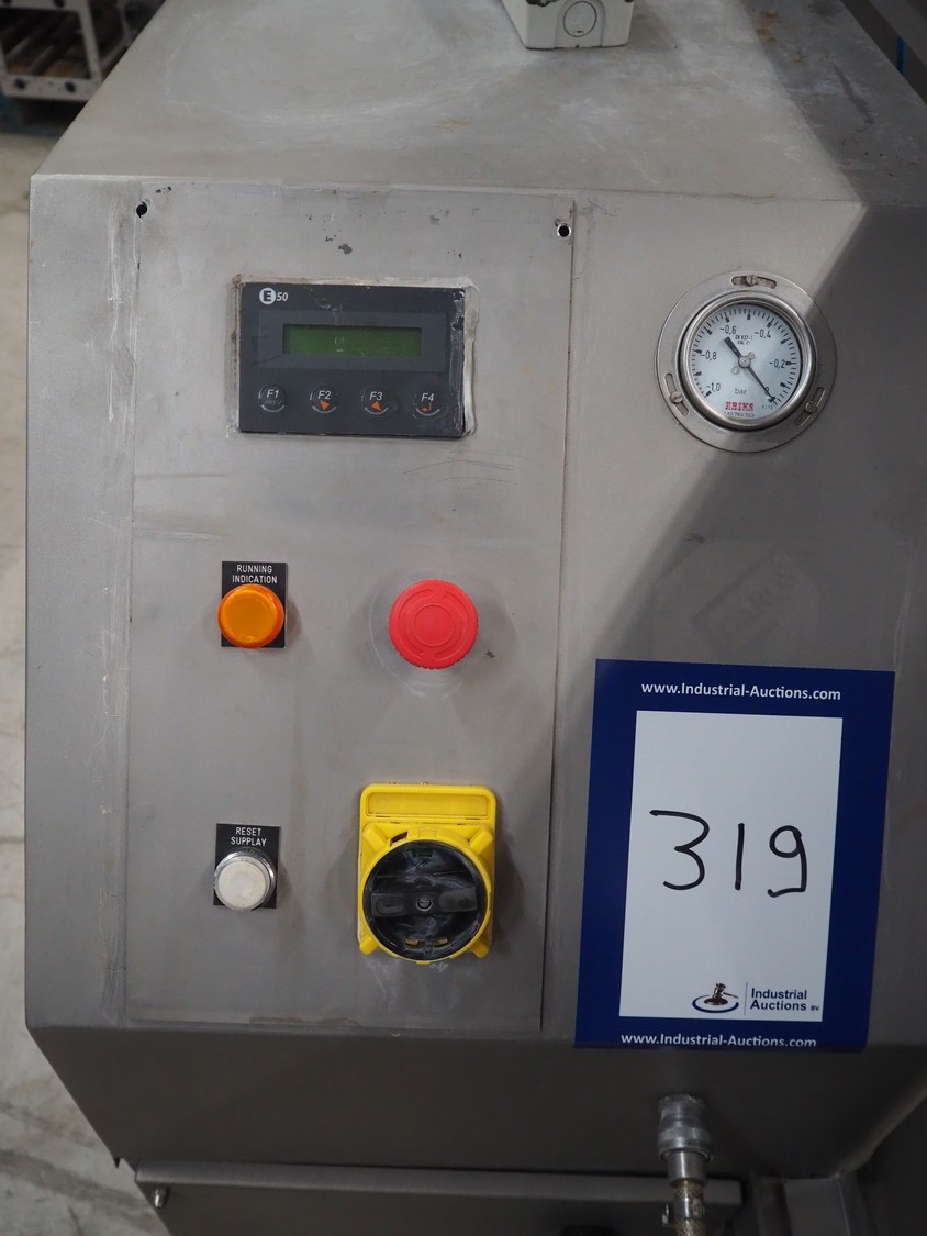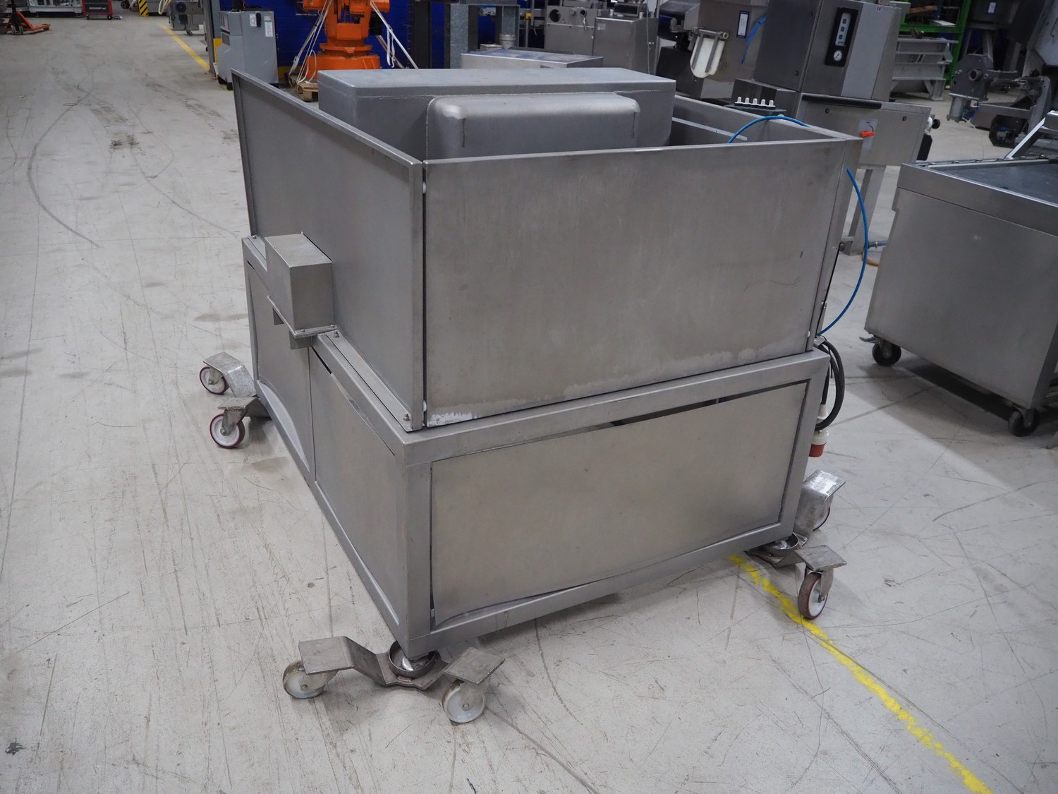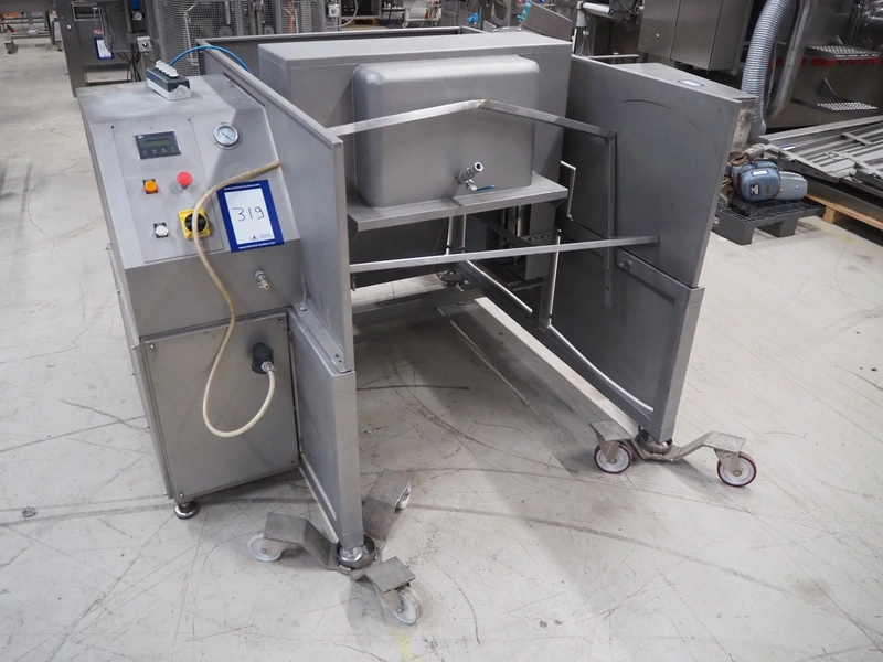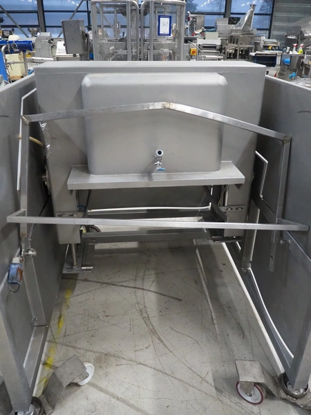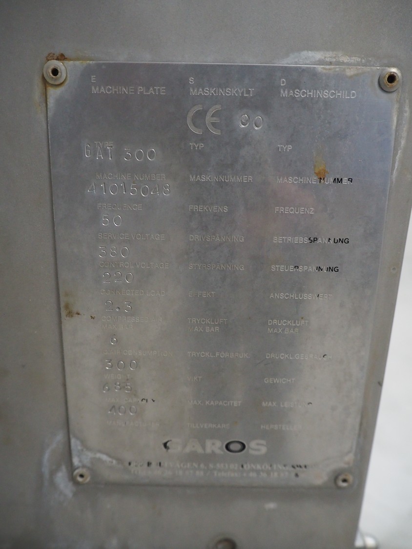 Garos tumbler for 200 liter meat bins, type: GAT 300, machine number: 41015048, year of construction: 2000, 380/220 V, 50 Hz, 2.3 A, weight: 685 kg, capacity: 400 kg, dimensions: 1750 mm x 1600 mm x 1300 mm. Without rollies.