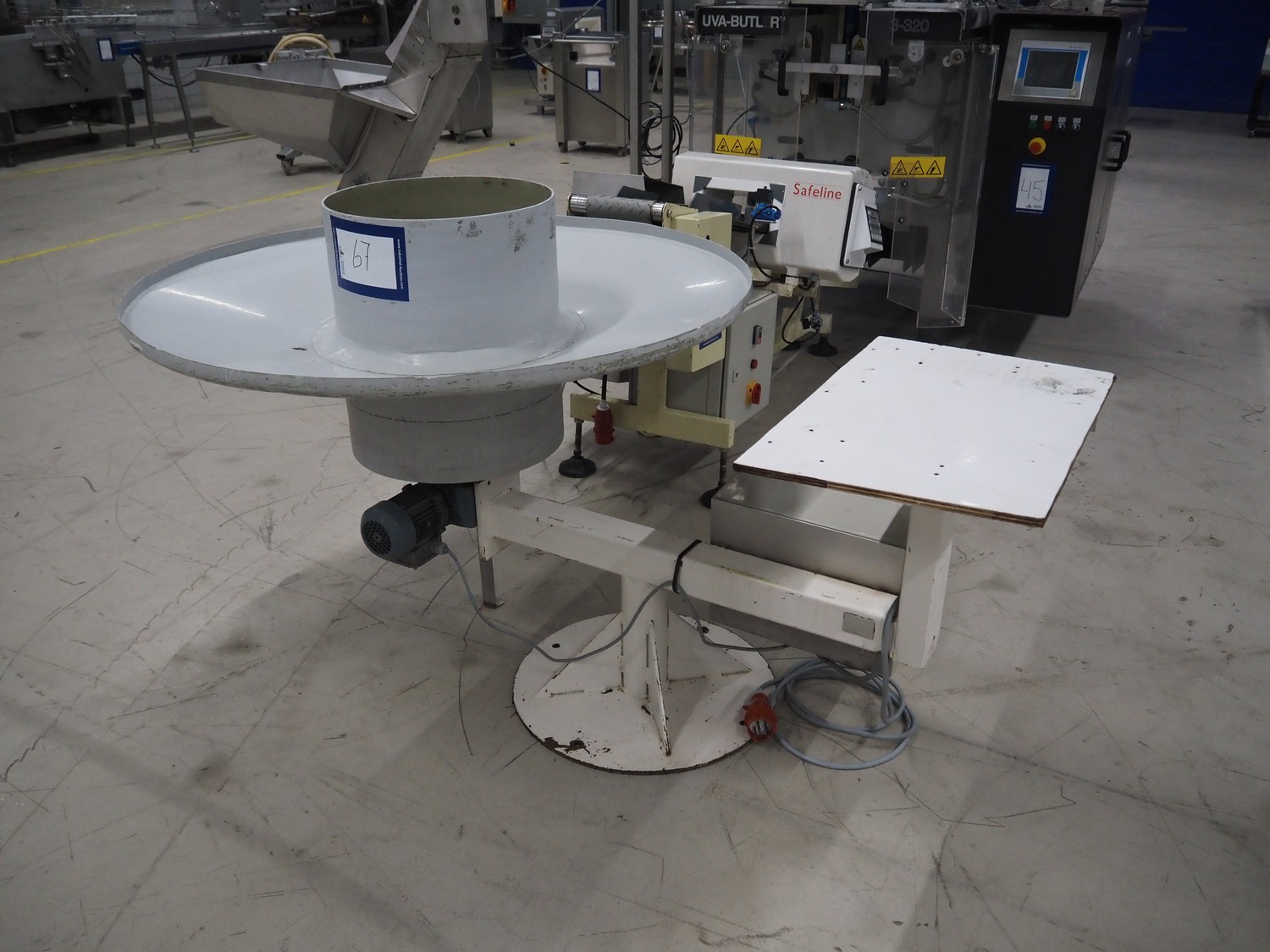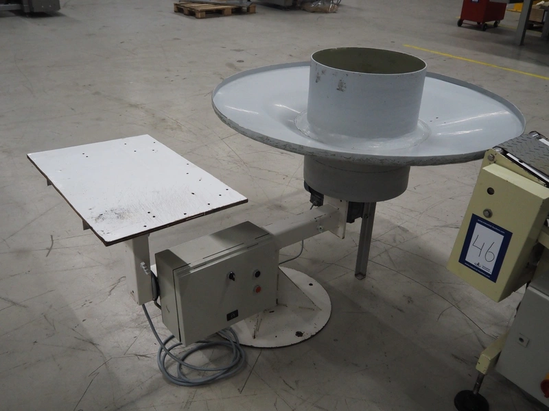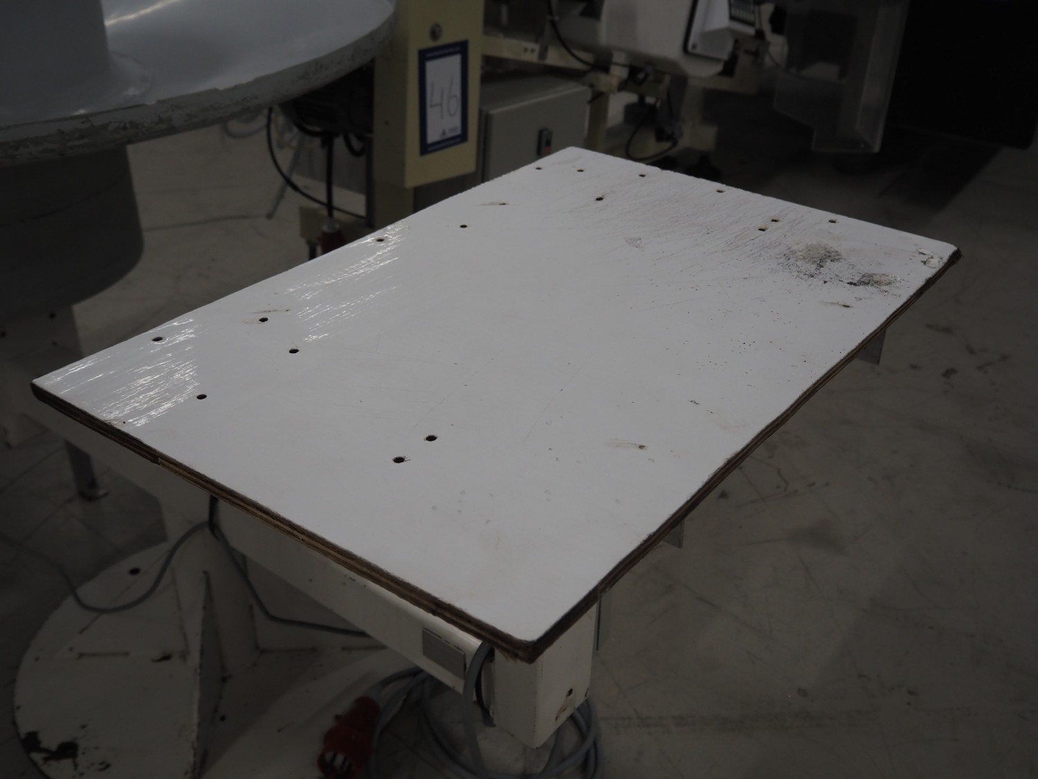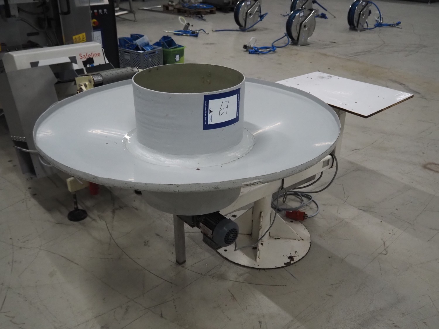 Turning packaging table, diameter top: 1350 mm, total dimensions: 2000 mm x 1350 mm x 1090 mm.