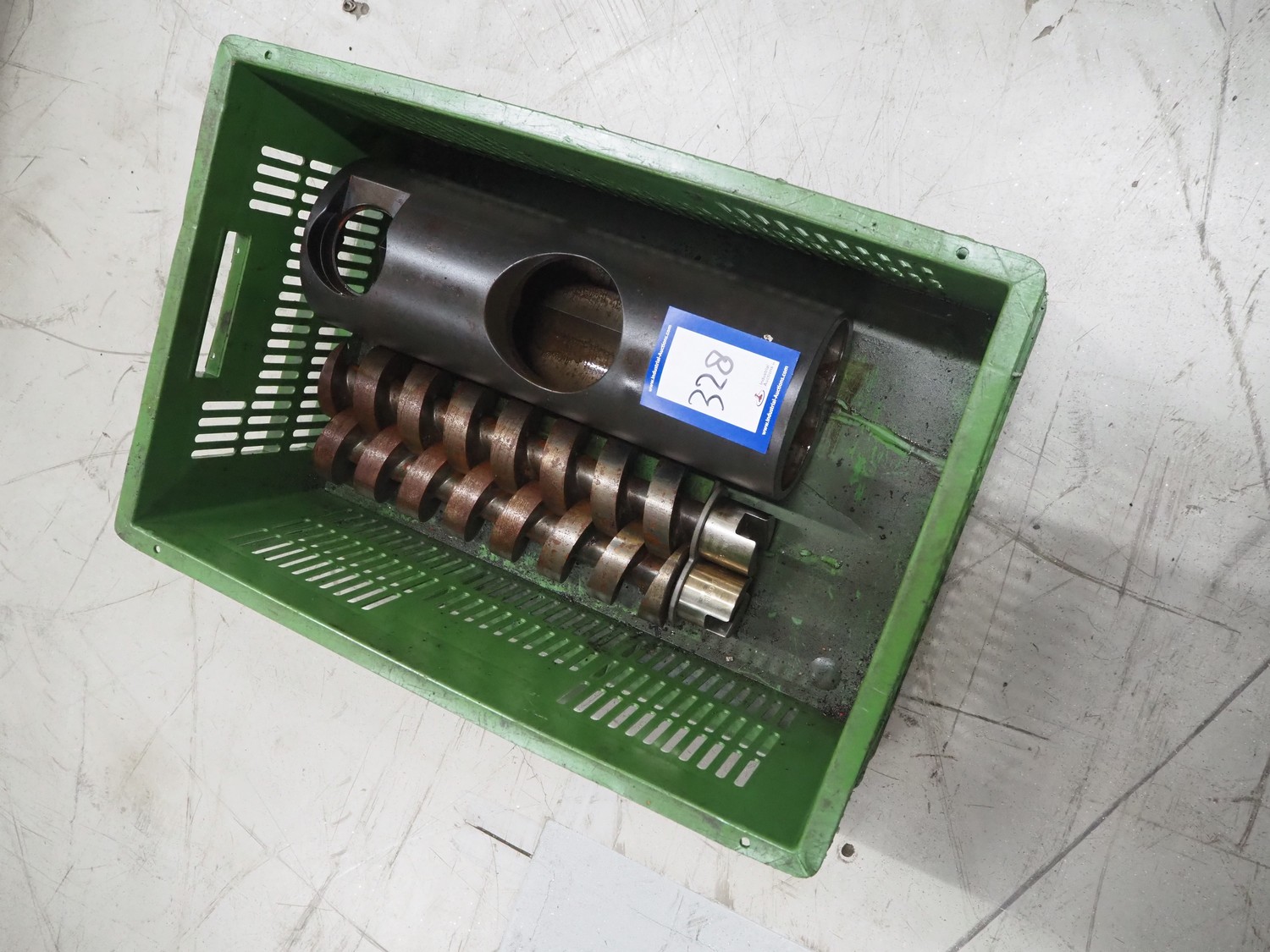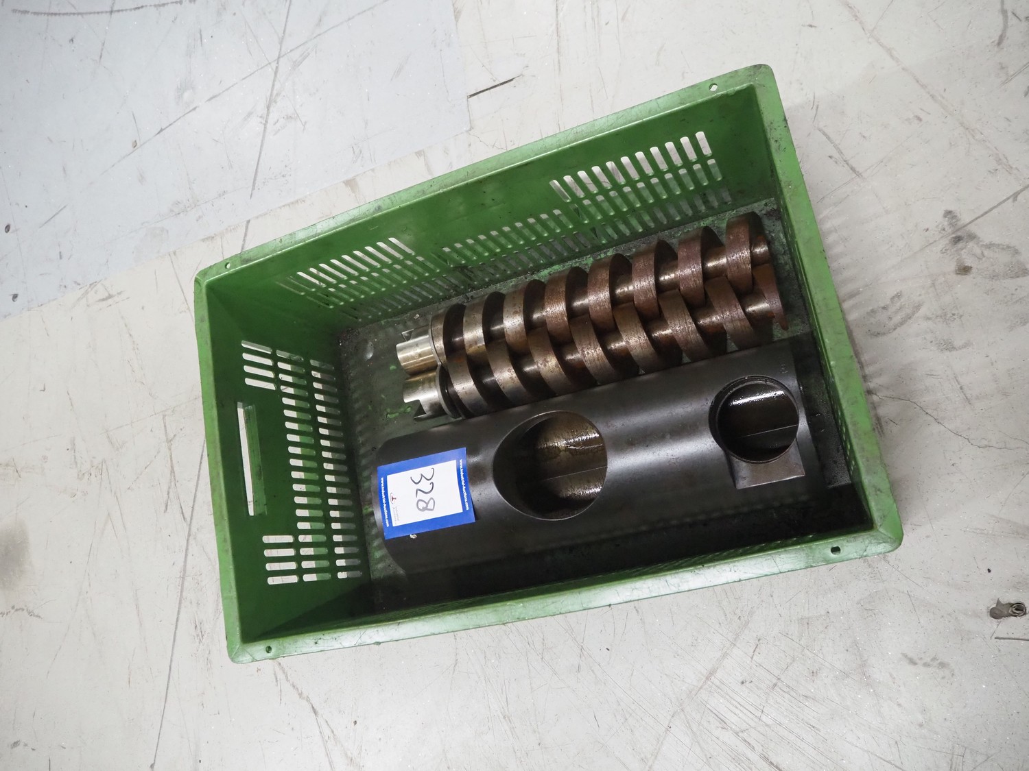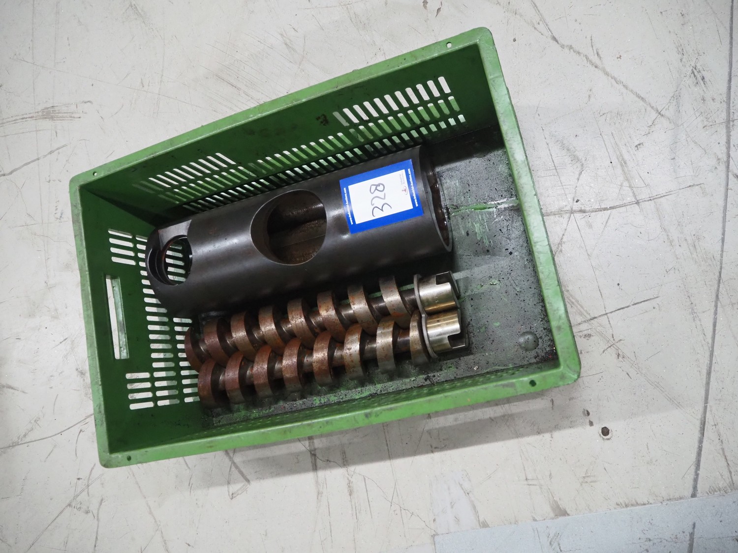 Plastic crate with with housing and worm for Vemag vacuum filling machine, number 911310048.