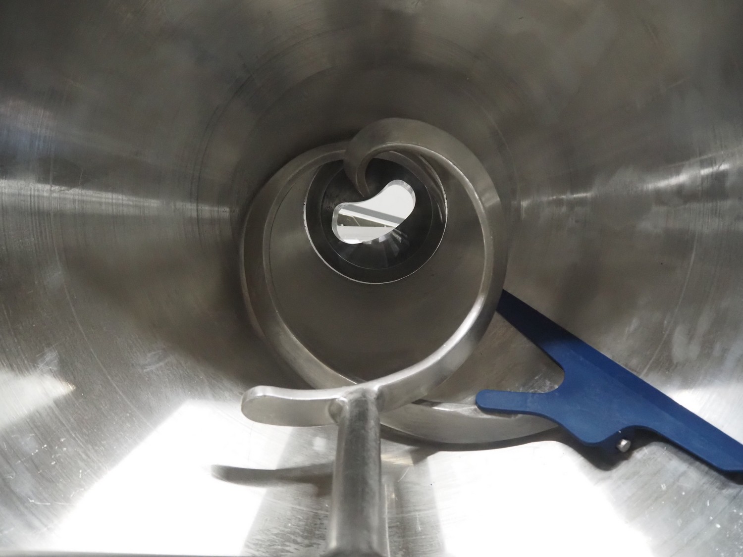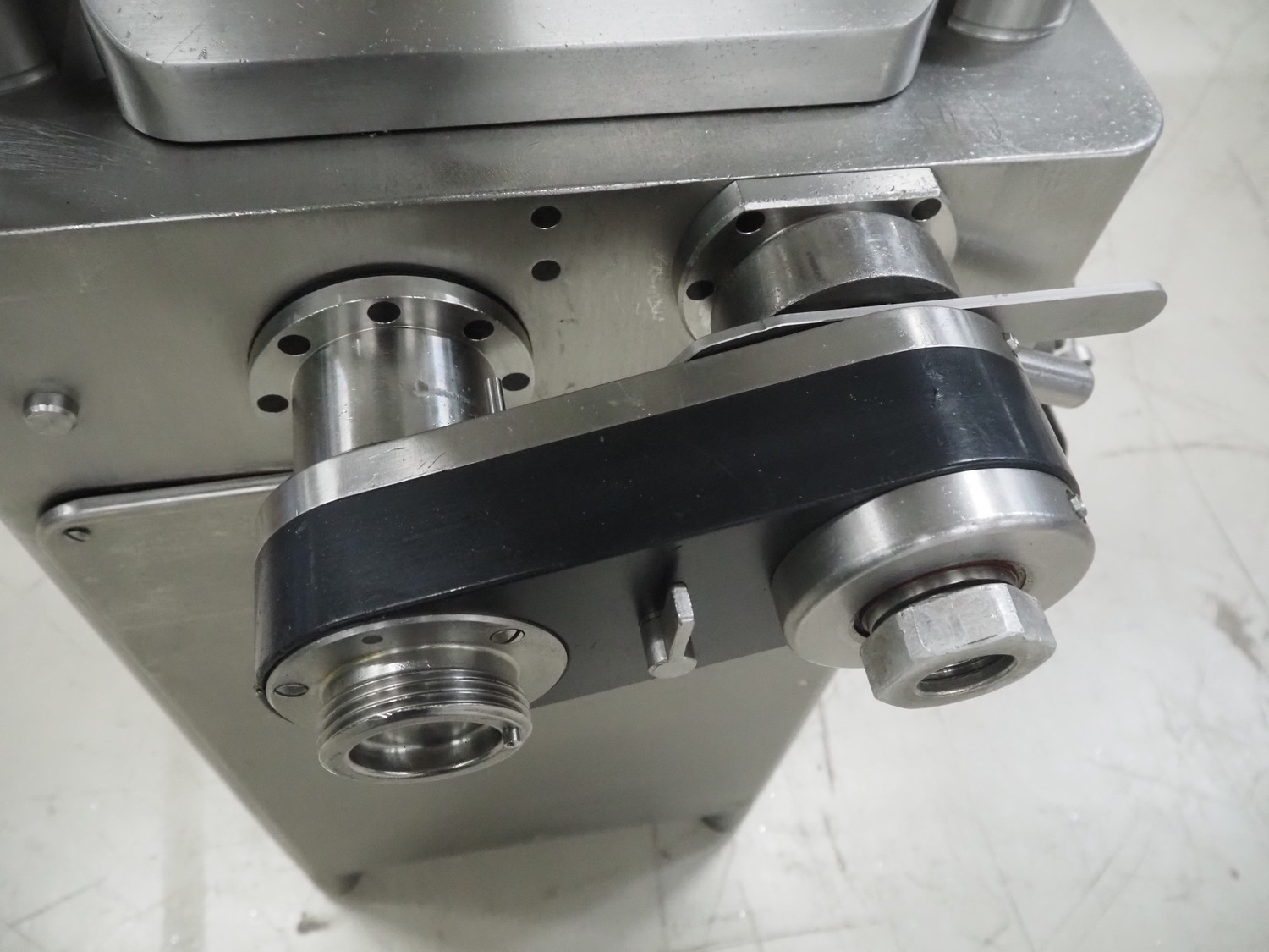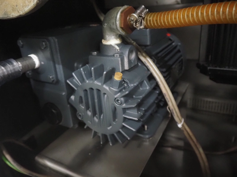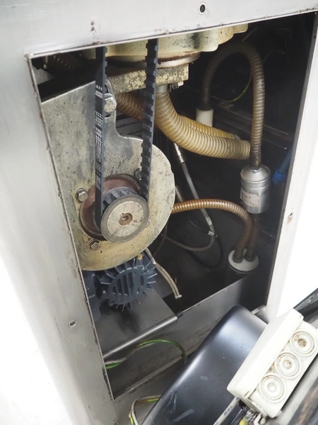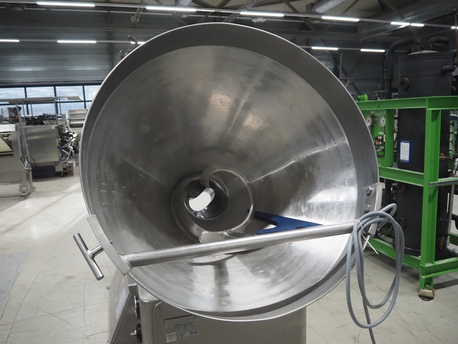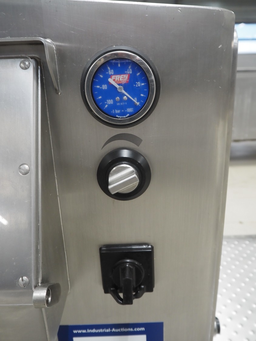 Frey vacuum filling machine with linking attachment, type: Konti-E120, machine number: KE1201111320GU, year of construction: 2010, 400 V, 50 Hz, 4.8 kW, Busch vacuum pump, operating hours: 28406, dimensions: 950 mm x 700 mm x 1620 mm.
