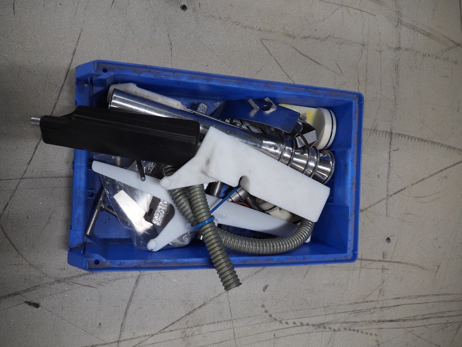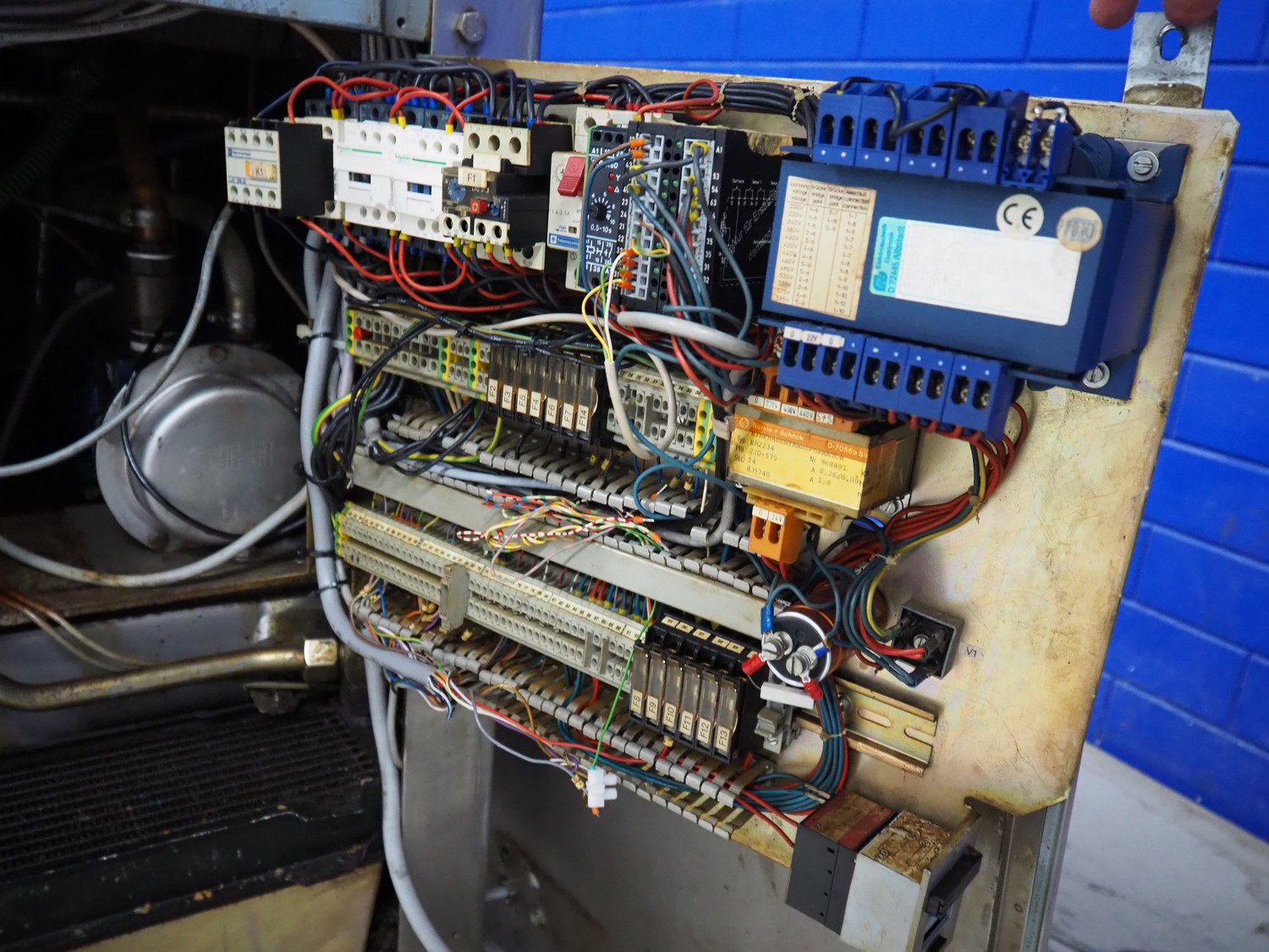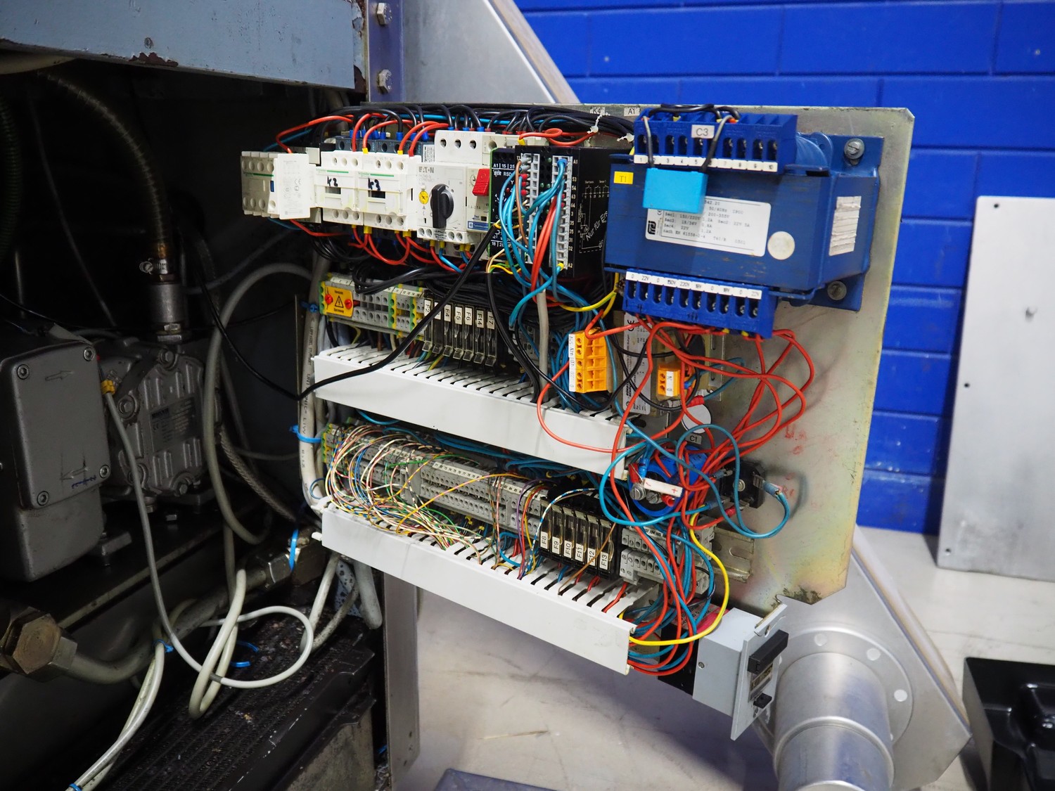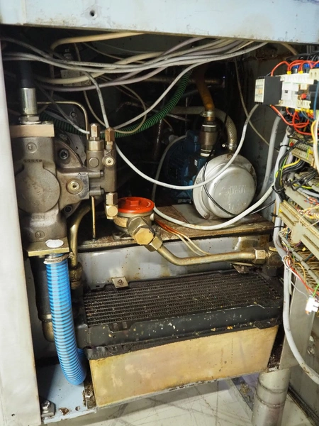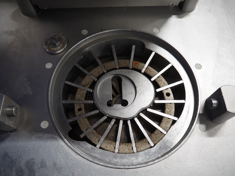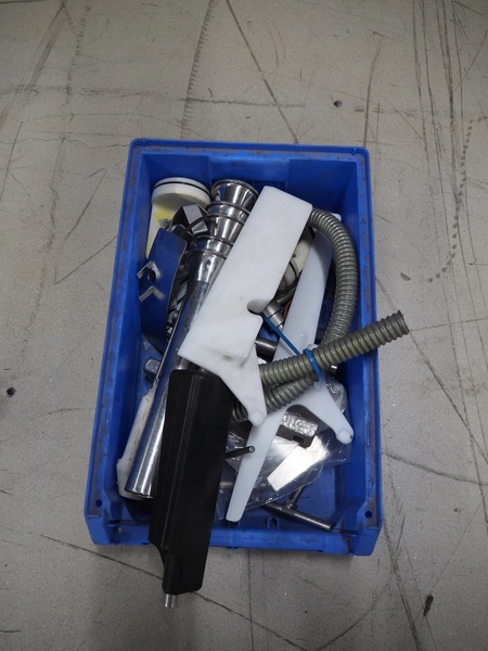 Handtmann vacuum filling machine with lifter for meat bins, type: VF300B, number: 2645, 400 V, 50 Hz, 23.6 A, 9.5 kW, Becker vacuum pump, type: U 1.16SA-31, number: B 2678255, year of construction: 2012, capacity: 16 m³ per hour, dimensions: 1700 mm x 1400 mm x 1970 mm.