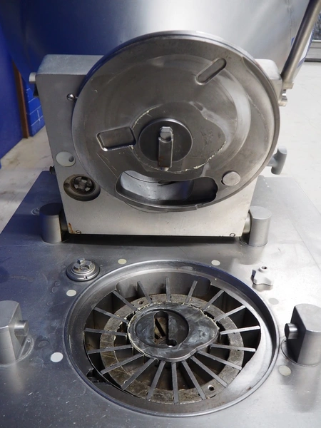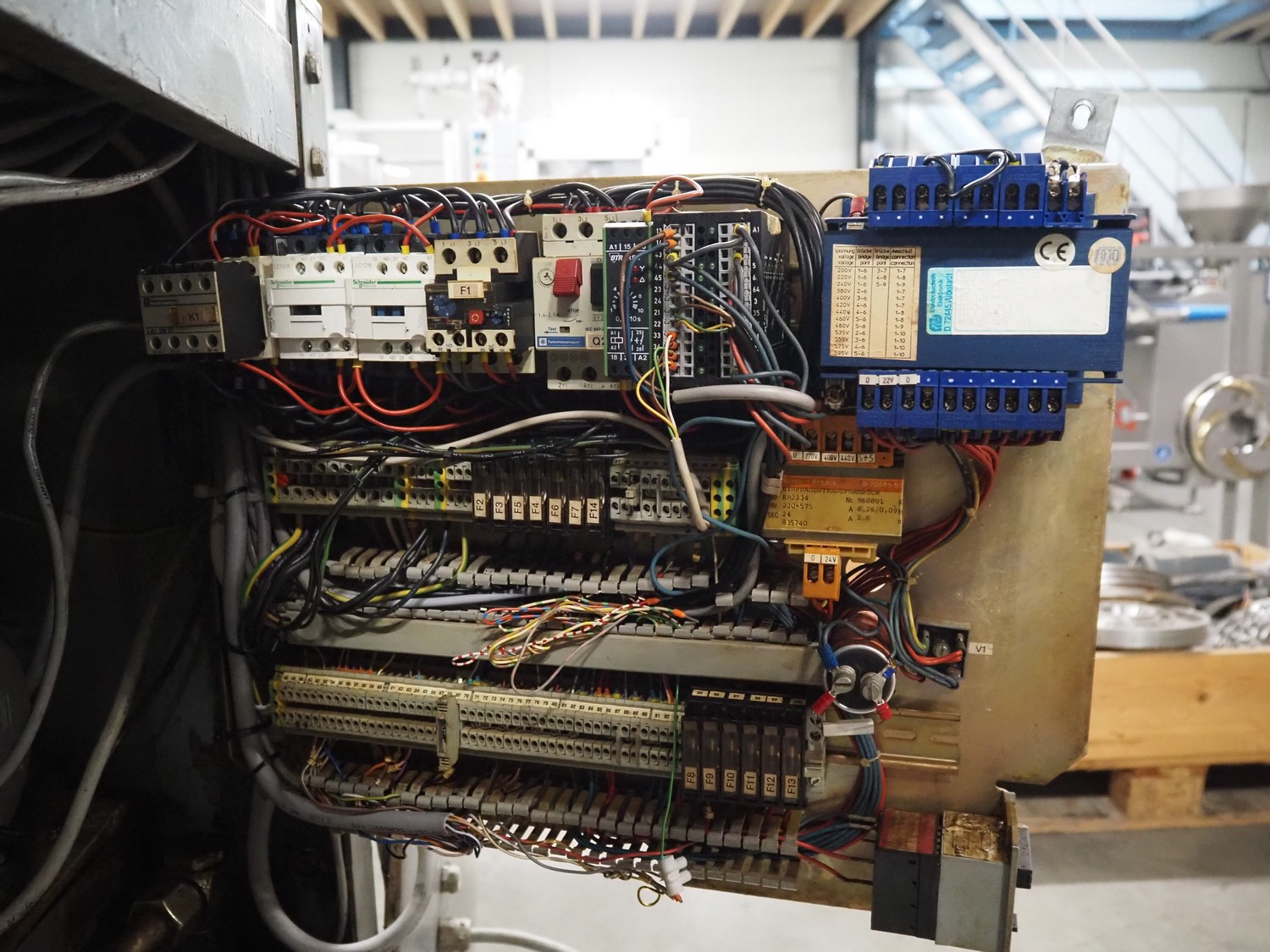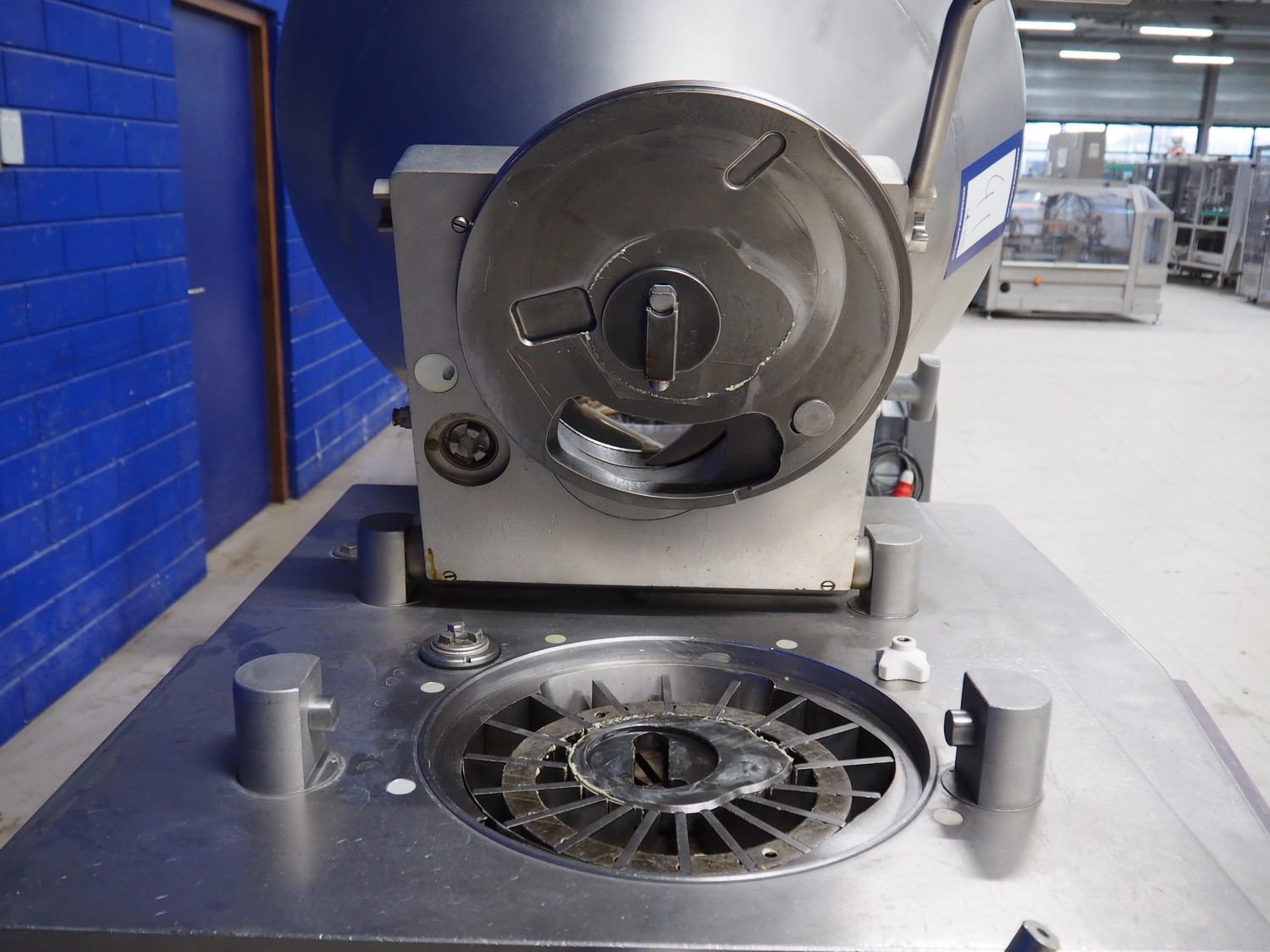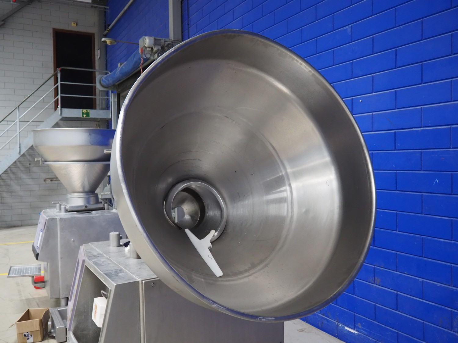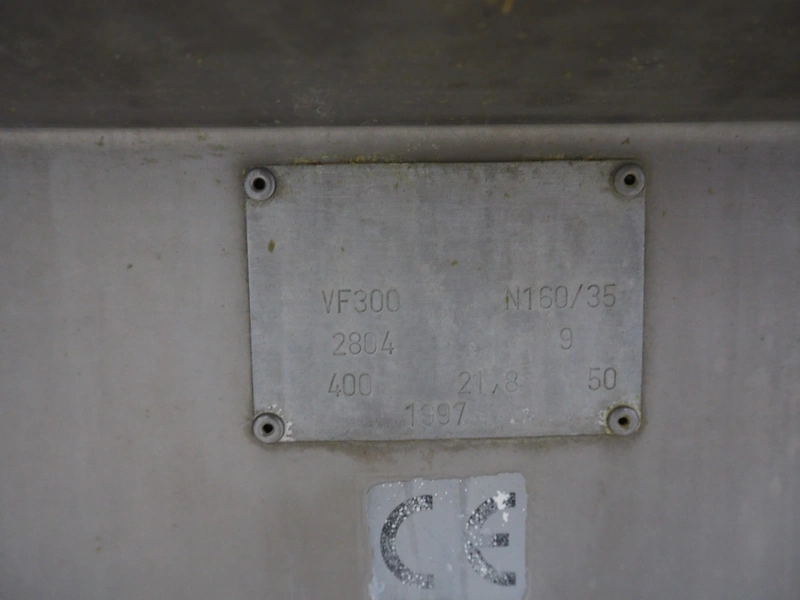 Handtmann mobile vacuum filling machine, type: VF300, number: 2804, year of construction: 1997, 400 V, 50 Hz, 21.8 A, 9 kW, dimensions: 1150 mm x 950 mm x 2050 mm. Incomplete.
