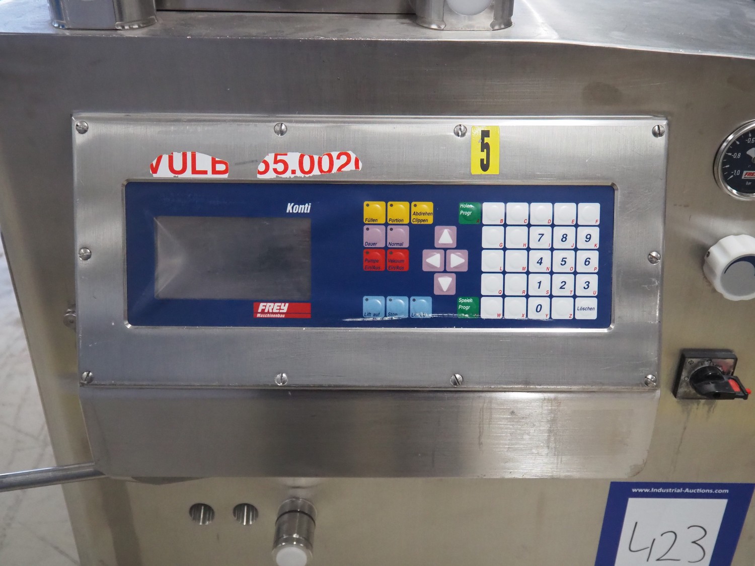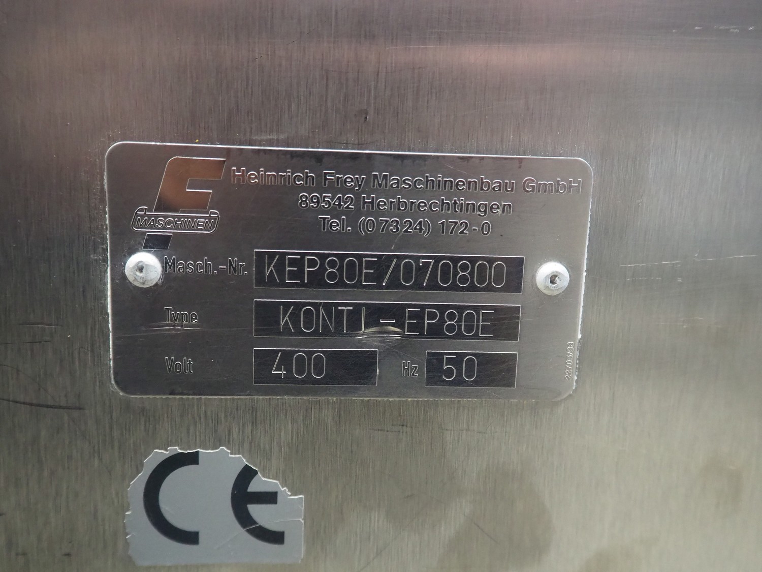 Frey vacuum filling machine, type: KONTI-EP80E, machine number: KEP80E/070800, 400 V, 50 Hz, dimensions: 950 mm x 700 mm x 1620 mm. Without rotor and vanes.