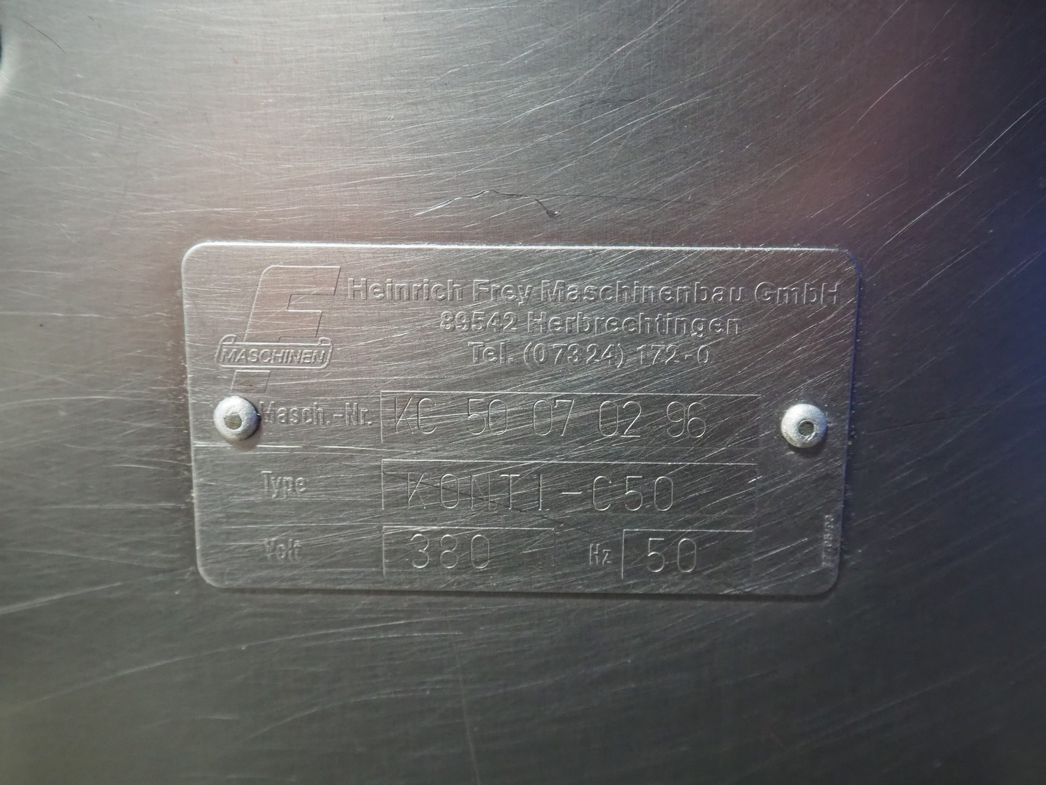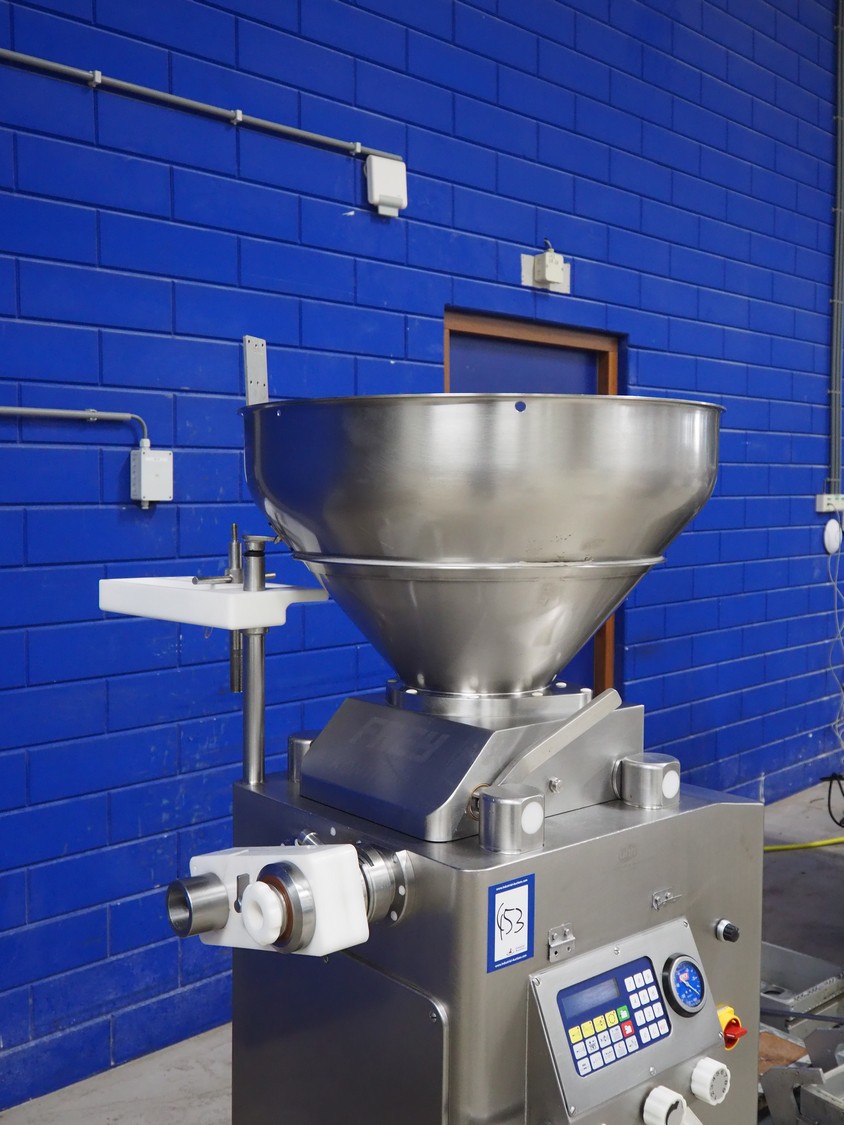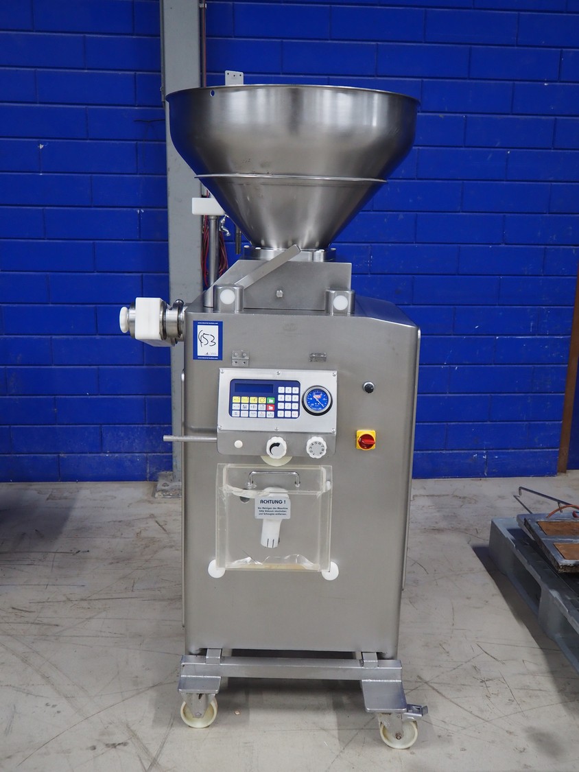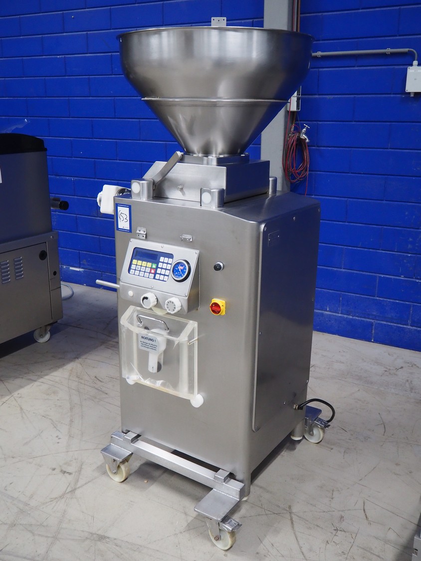 Frey mobile vacuum filling machine with linking attachment, type: KONTI-C50, machine number: KC 50 07 02 96, 380 V, 50 Hz, dimensions 800 mm x 900 mm x 1800 mm.