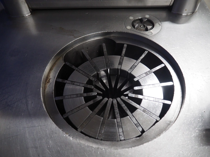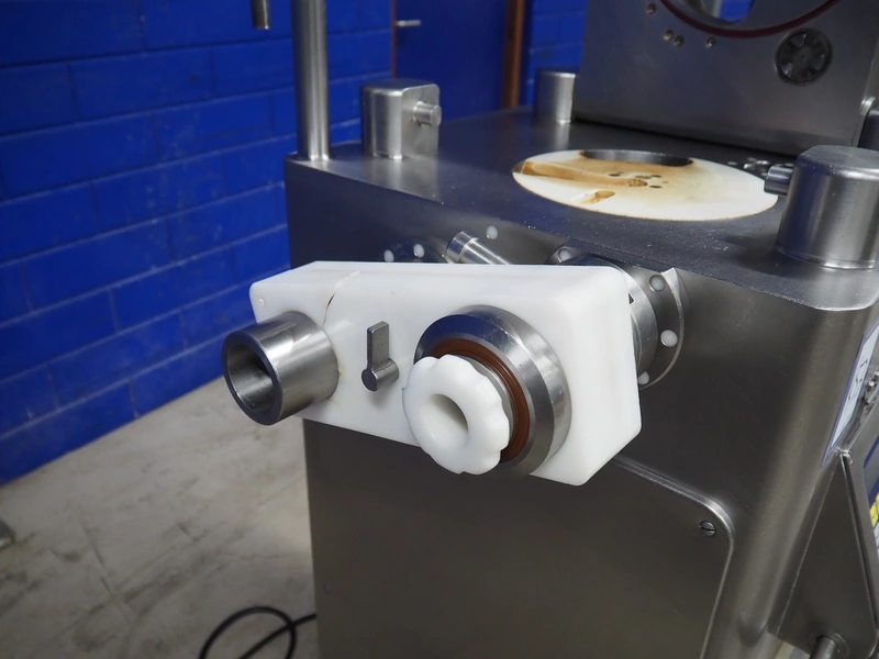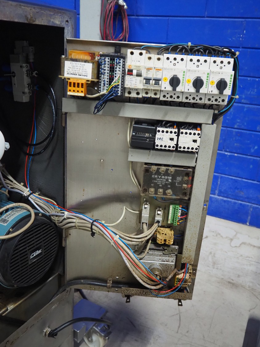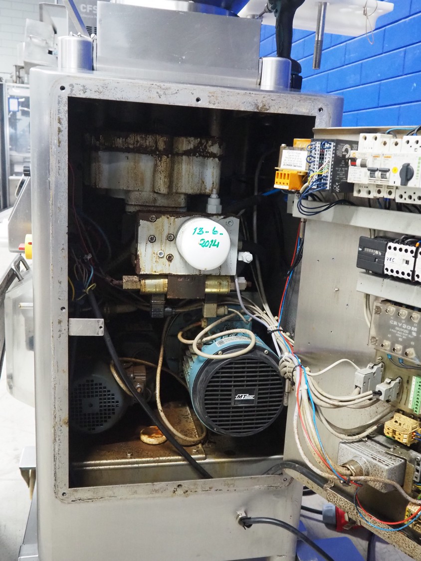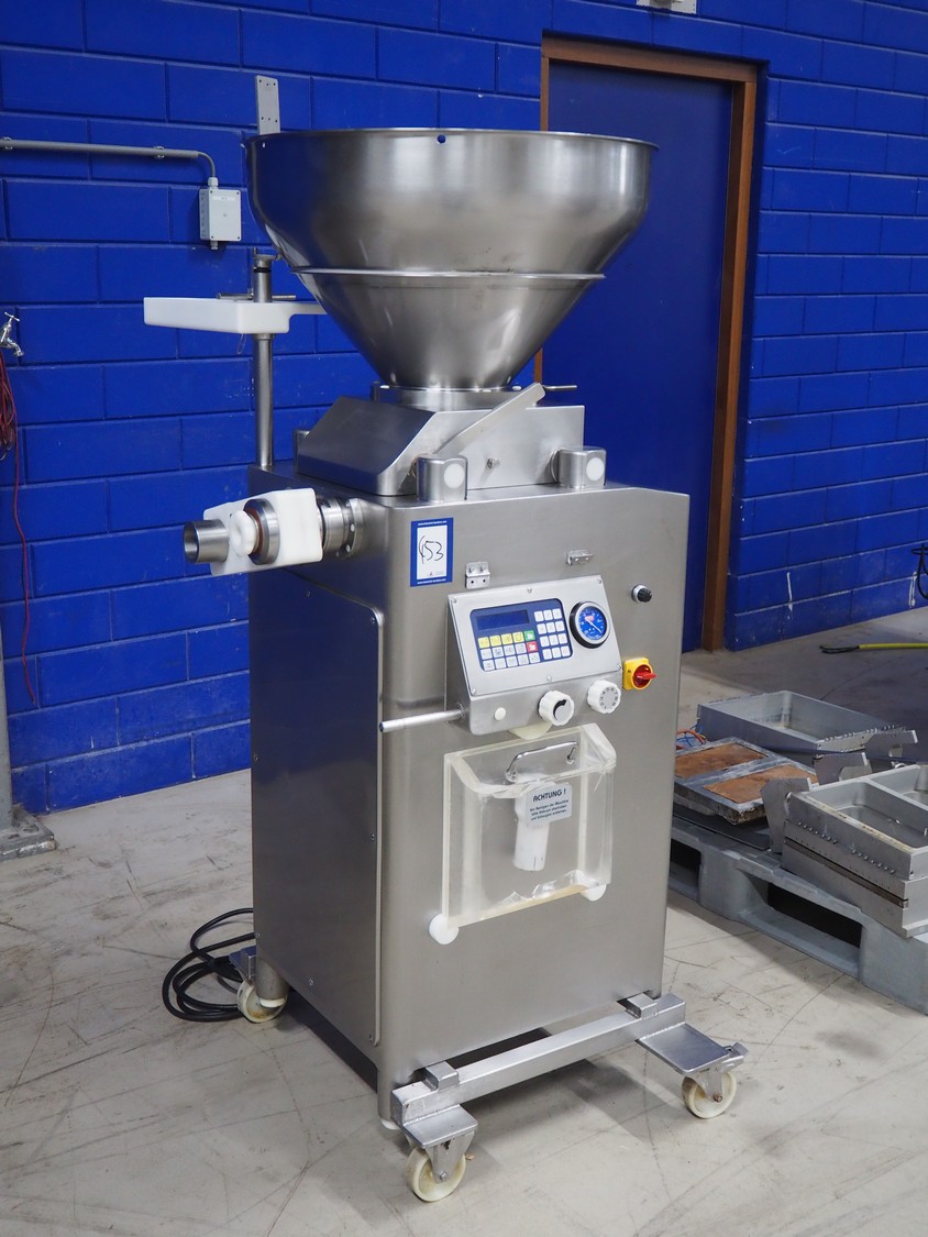 Frey mobile vacuum filling machine with linking attachment, type: KONTI-C50, machine number: KC 50 07 02 96, 380 V, 50 Hz, dimensions 800 mm x 900 mm x 1800 mm.
