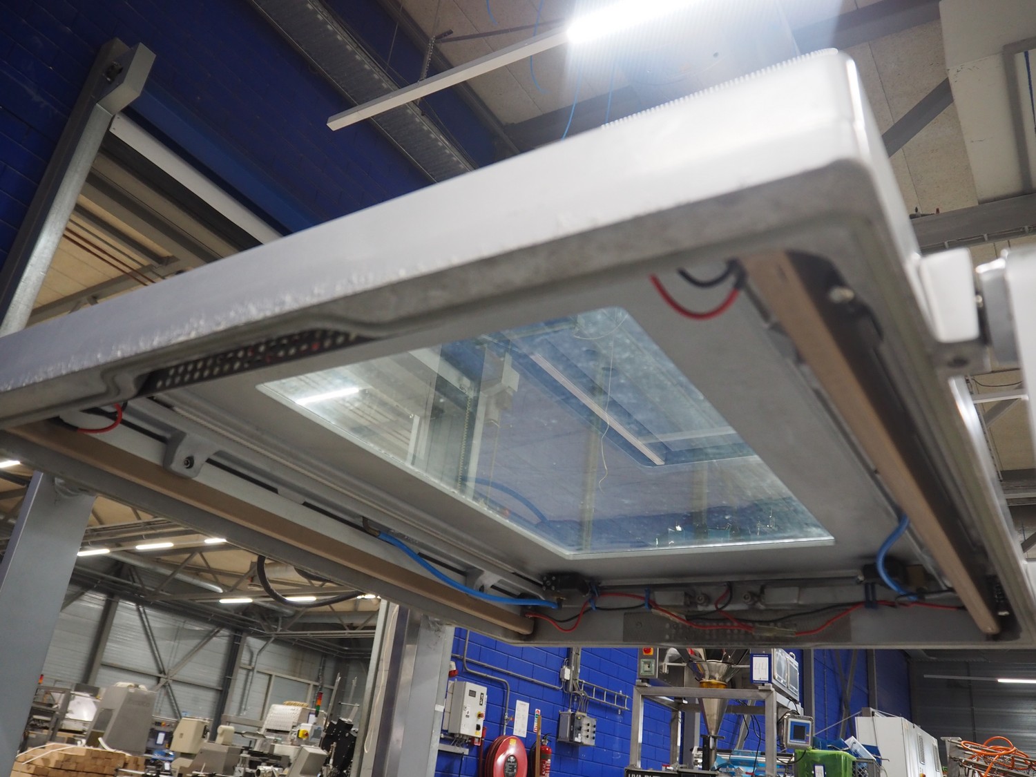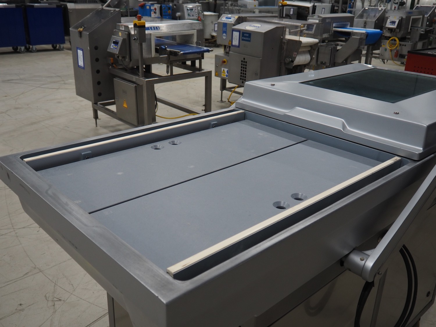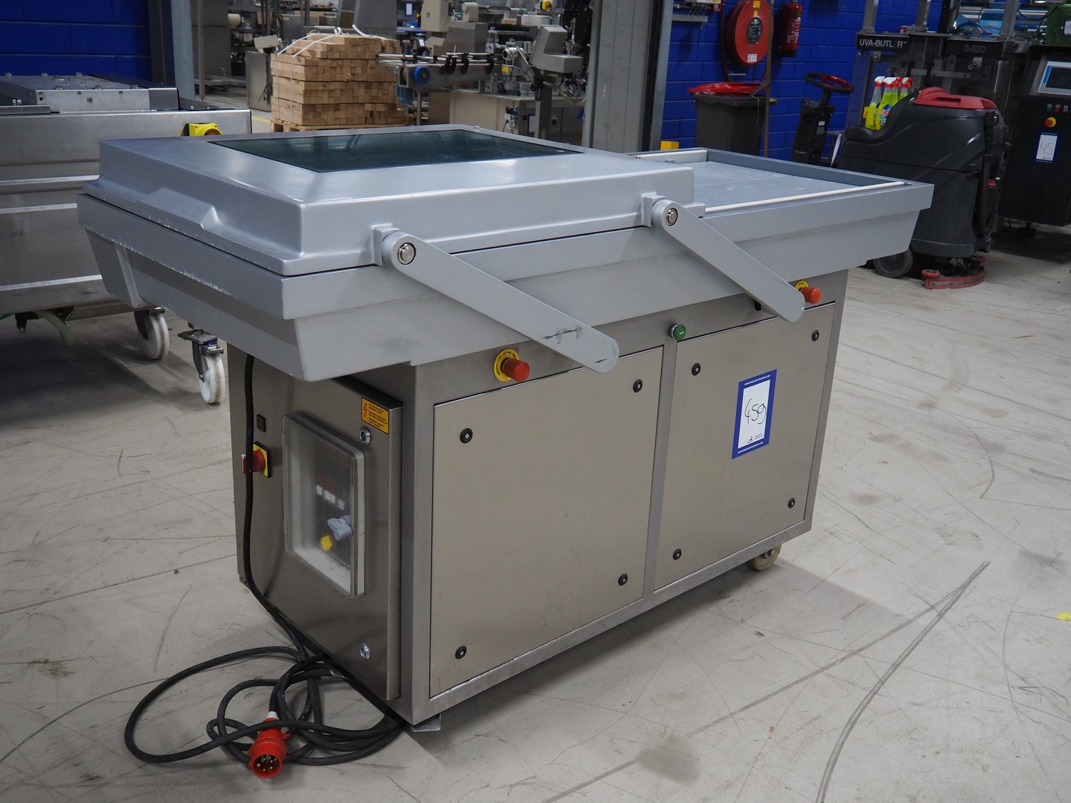 Webomatic mobile double chamber vacuum machine, type: PNC 20, machine number: 5310MK001, 400 V, 3 Ph, 50 Hz, 14.1 A, 5.5 kW, seal length: (4x) 800 mm, dimensions chamber: (2x) 800 mm x 700 mm, total dimensions: 1900 mm x 900 mm x 1200 mm. Without vacuum pump.