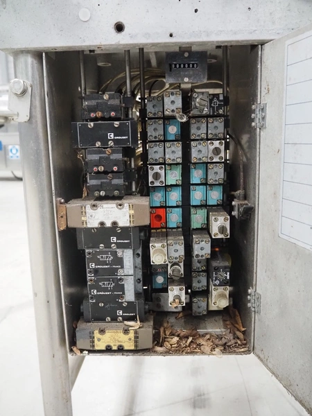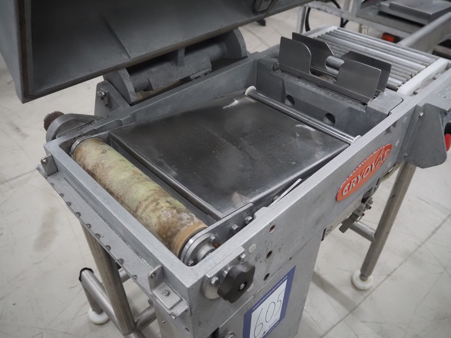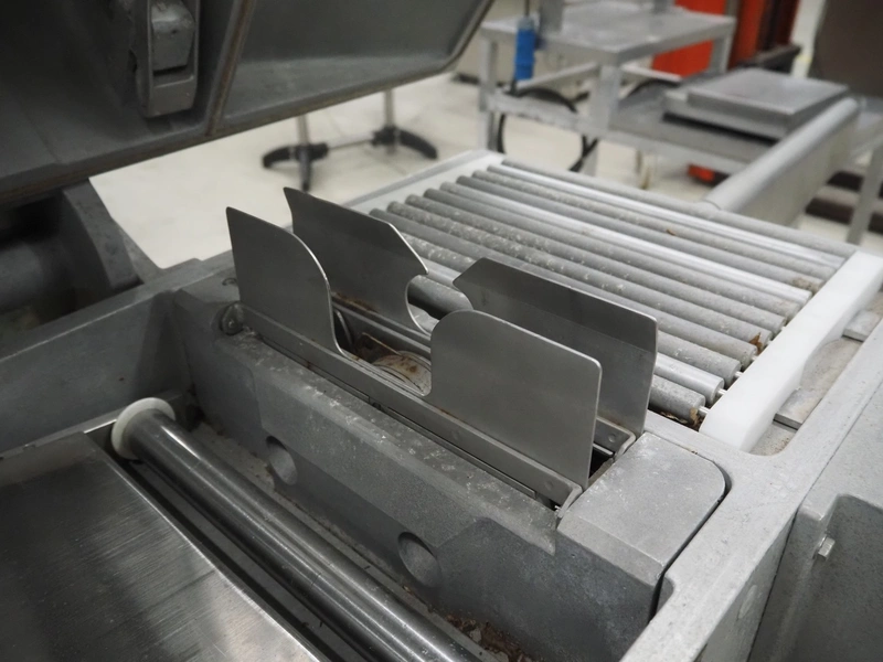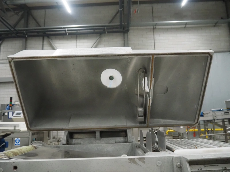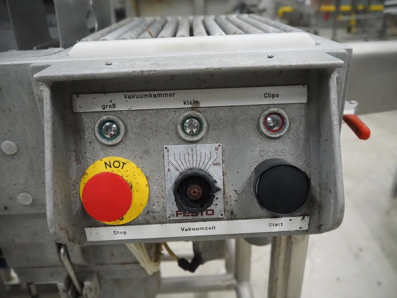 Cryovac / W.R. Grace & Co belt vacuum machine with clipper, s/s rollers, roller width: 300 mm, camber: 530 mm x 370 mm, maximum belt width: 320 mm, total dimensions: 1750 mm x 800 mm x 1300 mm.