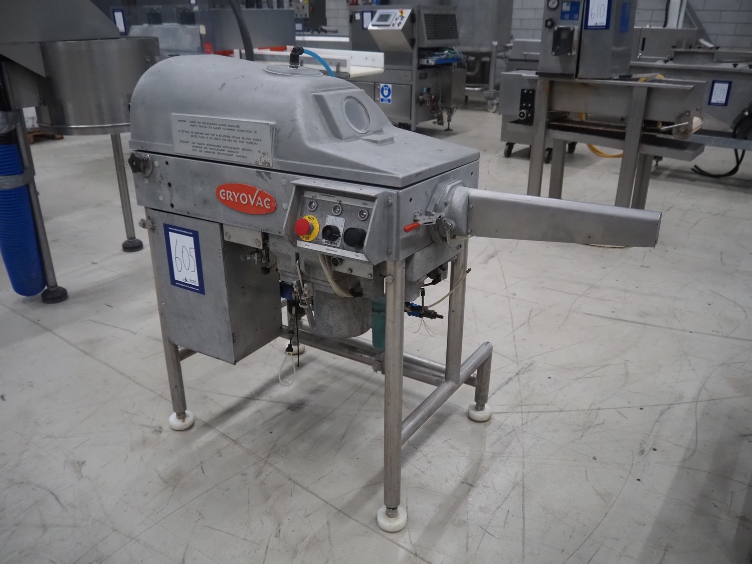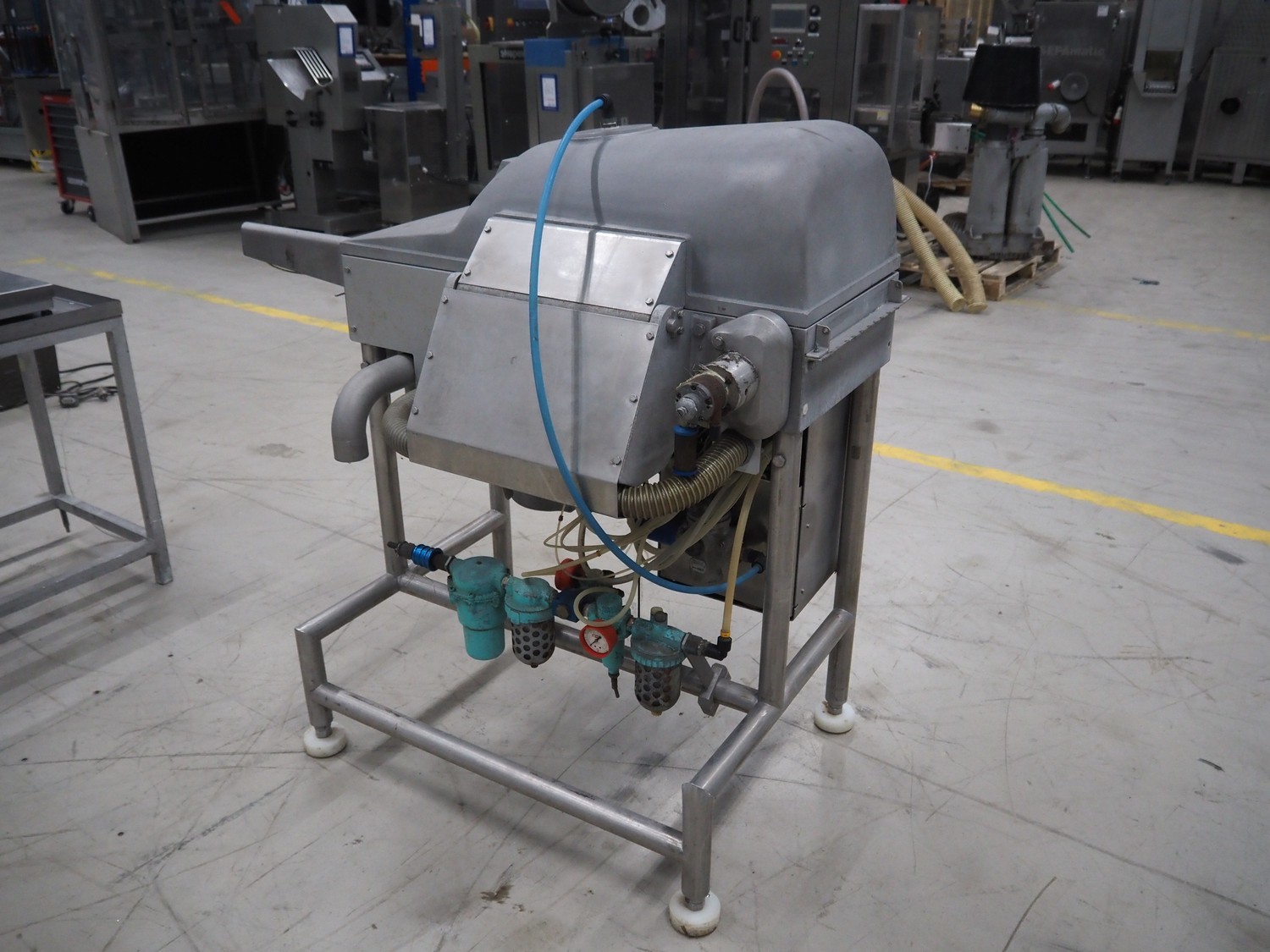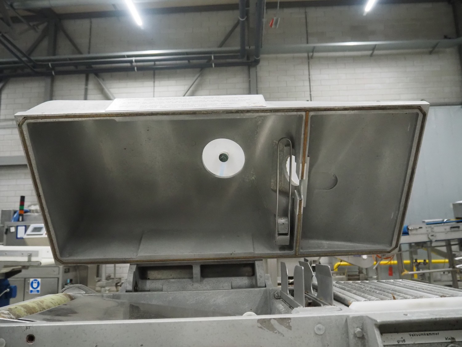 Cryovac / W.R. Grace & Co belt vacuum machine with clipper, s/s rollers, roller width: 300 mm, camber: 530 mm x 370 mm, maximum belt width: 320 mm, total dimensions: 1750 mm x 800 mm x 1300 mm.