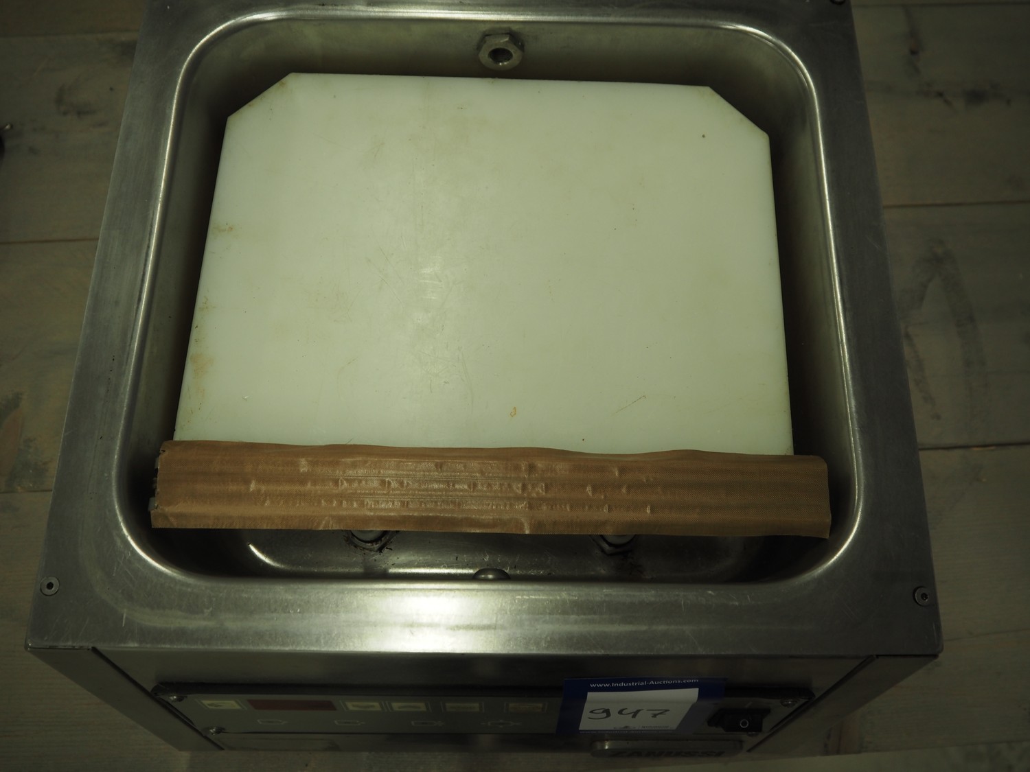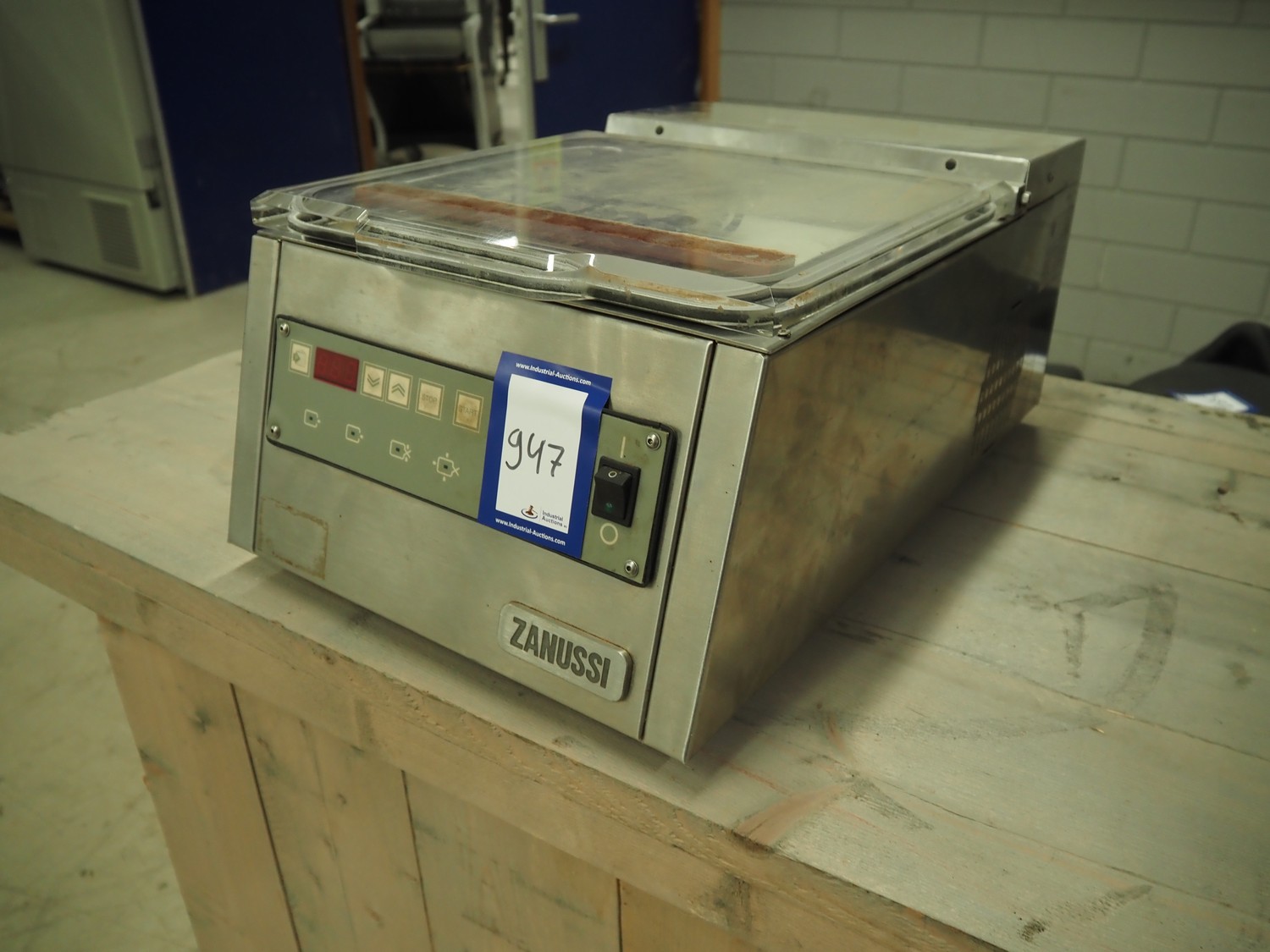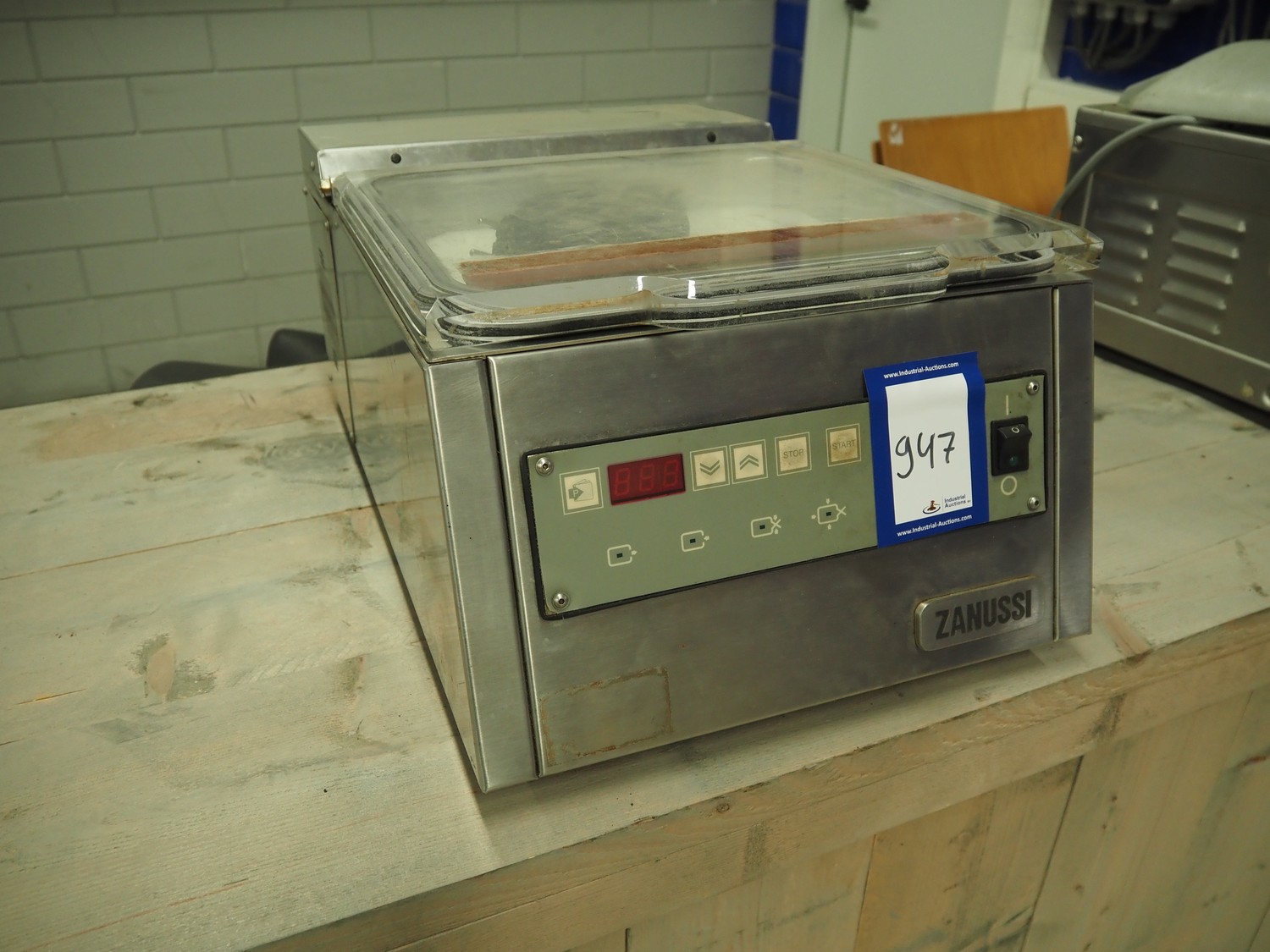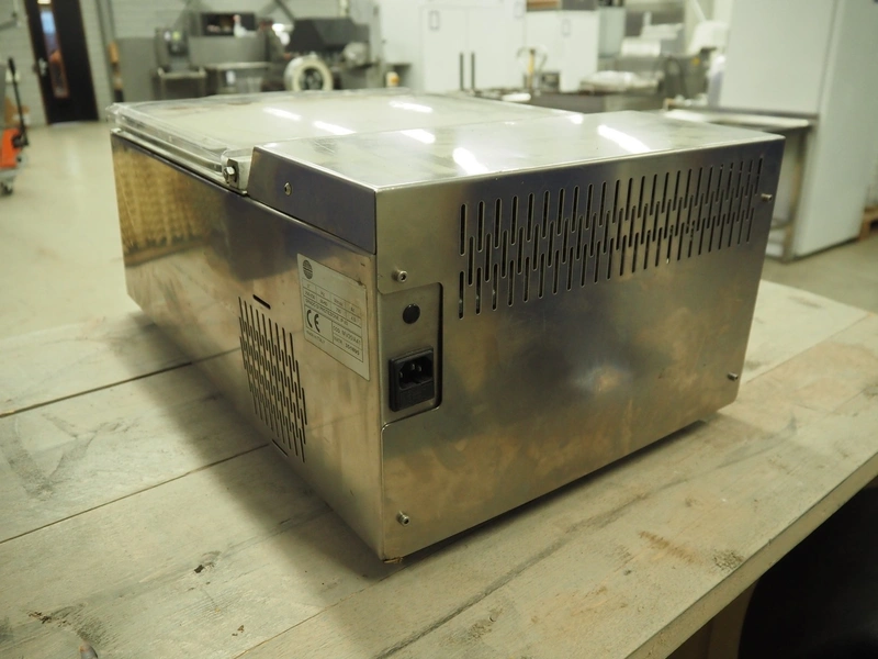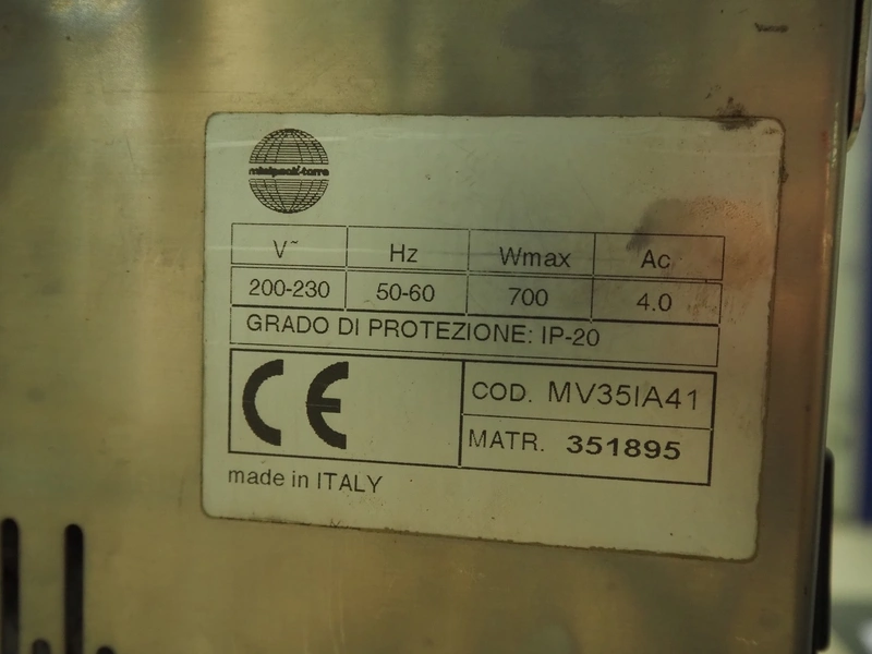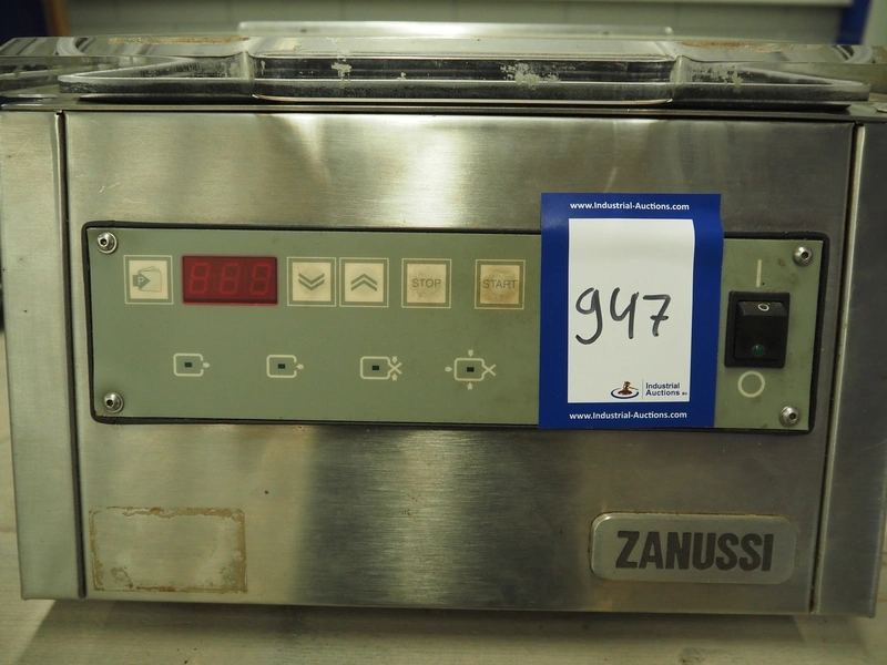Zanussi vacuum machine, model: MV35AI41, serial number: 351895, 220-230 V, 50/60 Hz, 700 W, seal length: 310 mm, dimensions chamber: 325 mm x 245 mm x 40 mm, total dimensions: 620 mm x 390 mm x 250 mm.