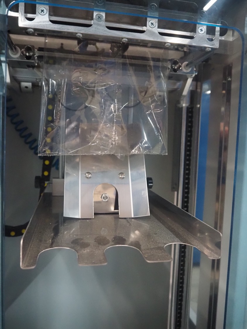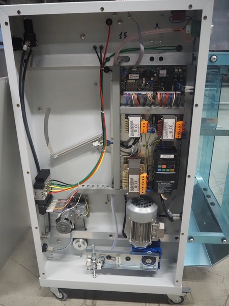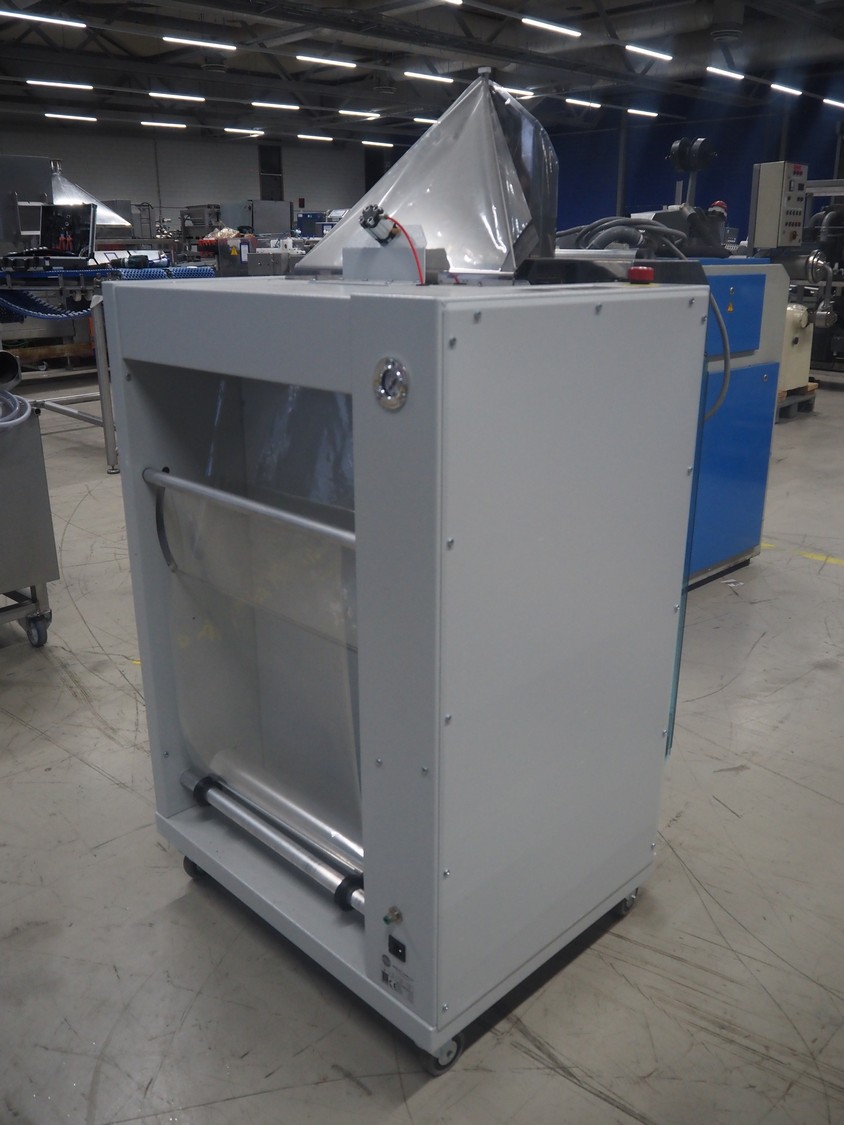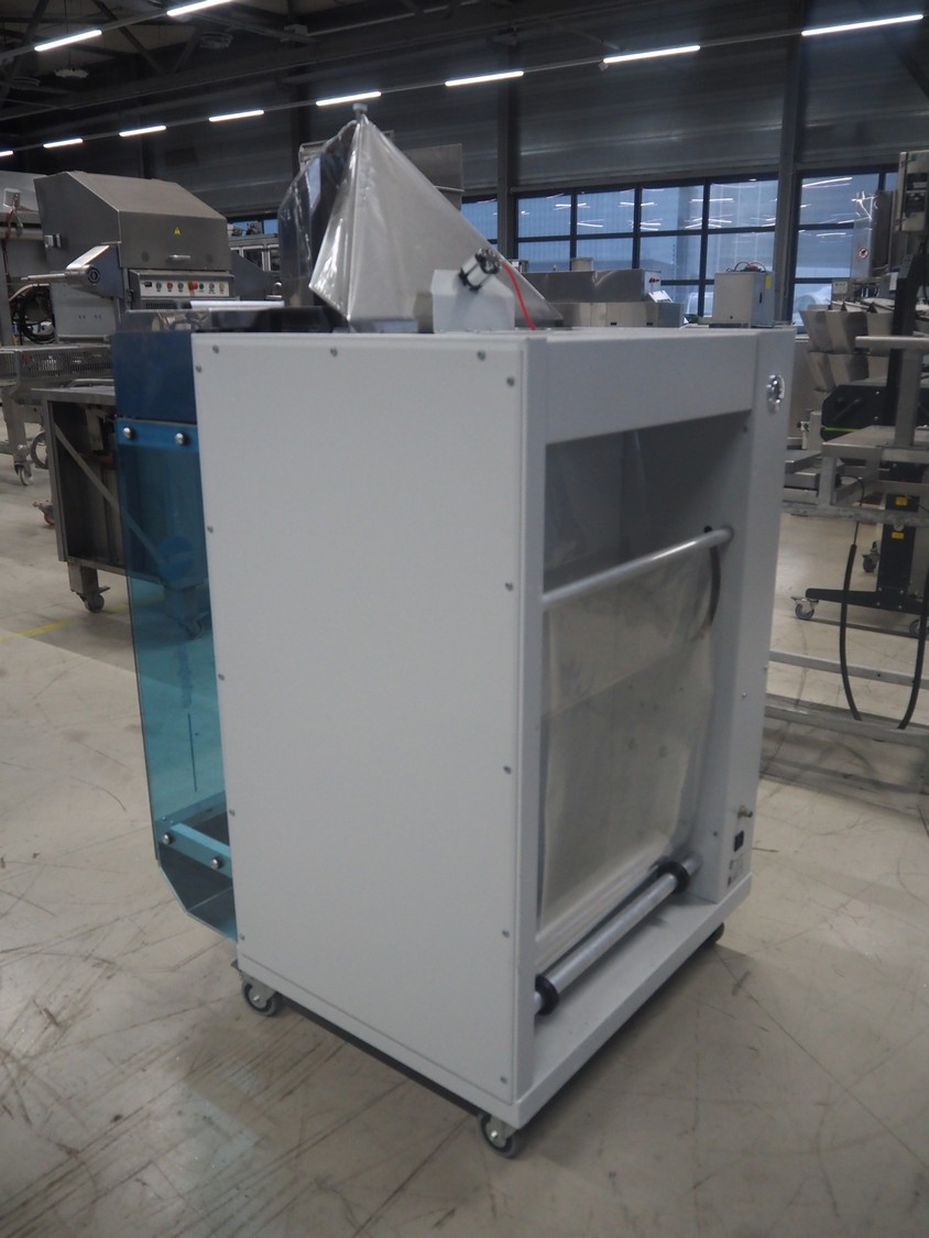 Minipack Torre mobile vertical bag form-, fill-, and seal machine, model: XBAG, serial number: 0115, year of construction: 2011, 230 V, 50 Hz, 2.2 A, 500 W, seal width: 250 mm, total dimensions: 850 mm x 800 mm x 1600 mm. With box with additional parts.