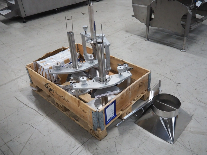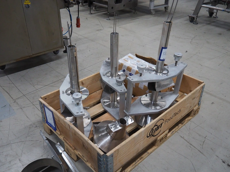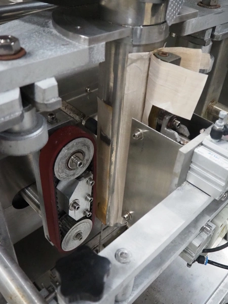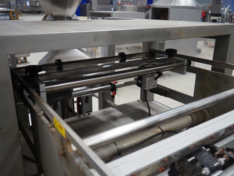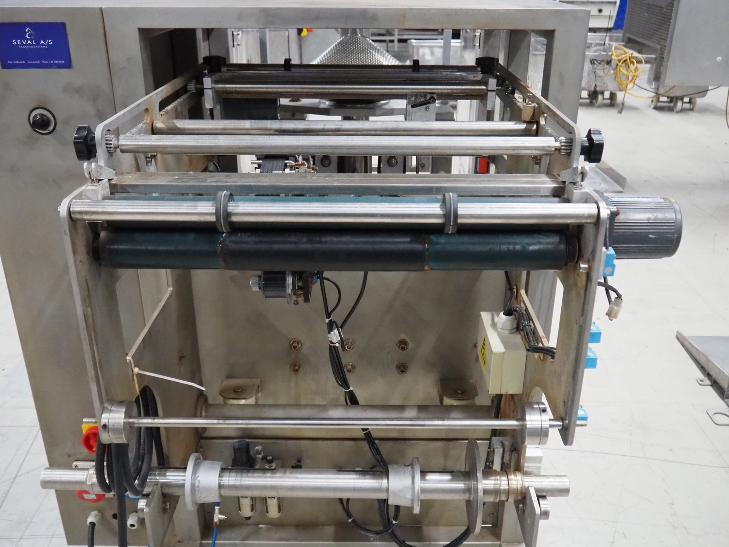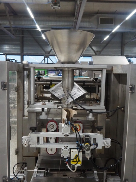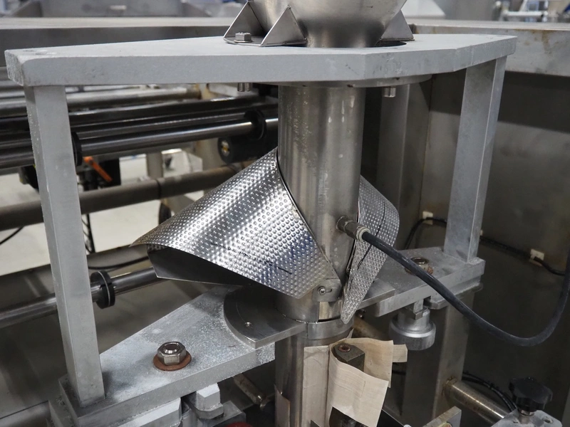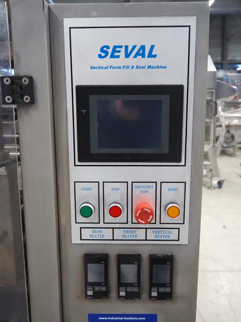 Seval vertical bag form-, fill- and seal machine, diameter filling pipe: 75 mm, vertical seal length: 320 mm, horizontal seal length: 250 mm, total dimensions: 1600 mm x 1150 mm x 1670 mm. Including extra filling pipes, diameter filling pipes: (1x) 55 mm, (1x) 70 mm.