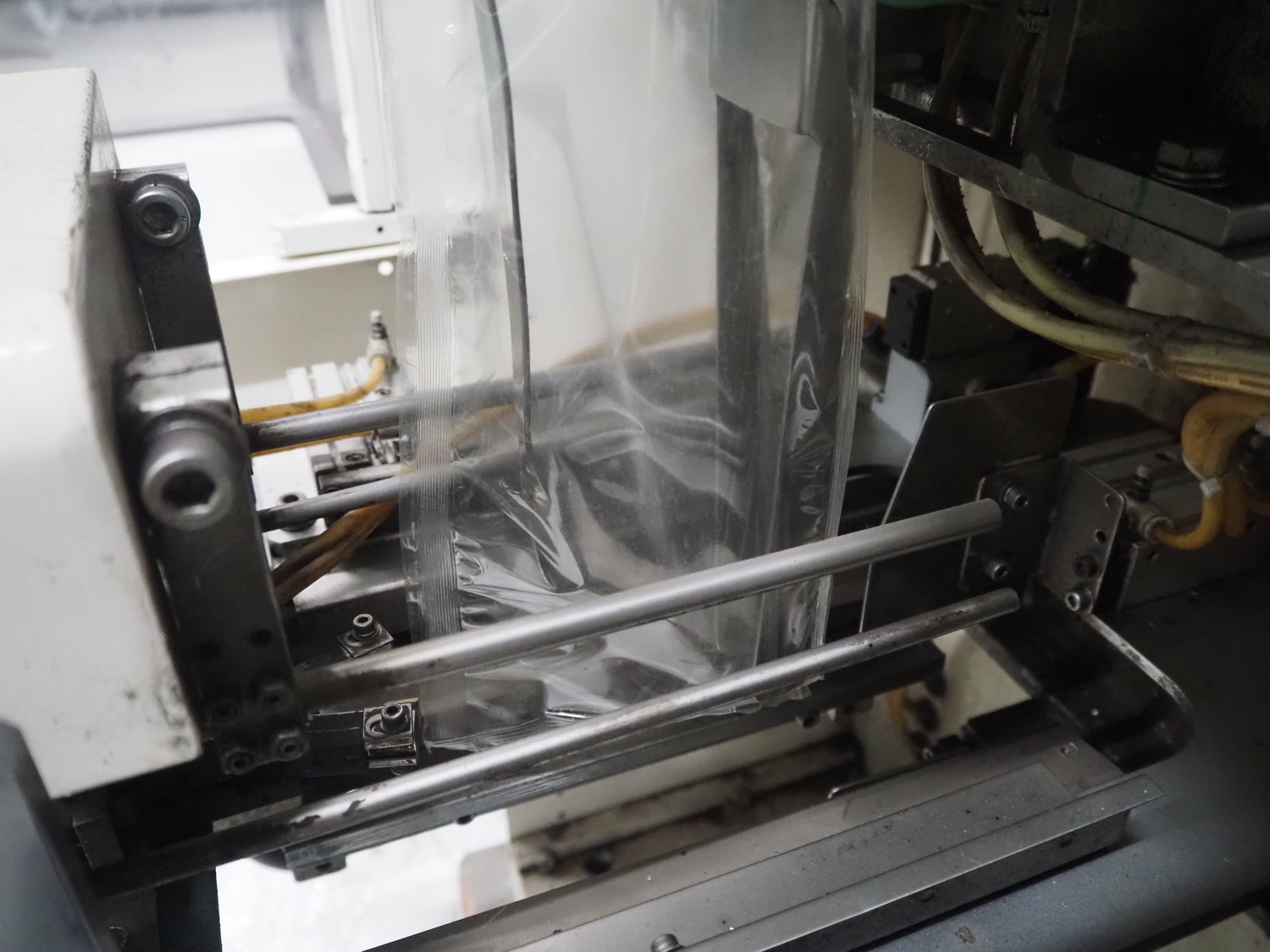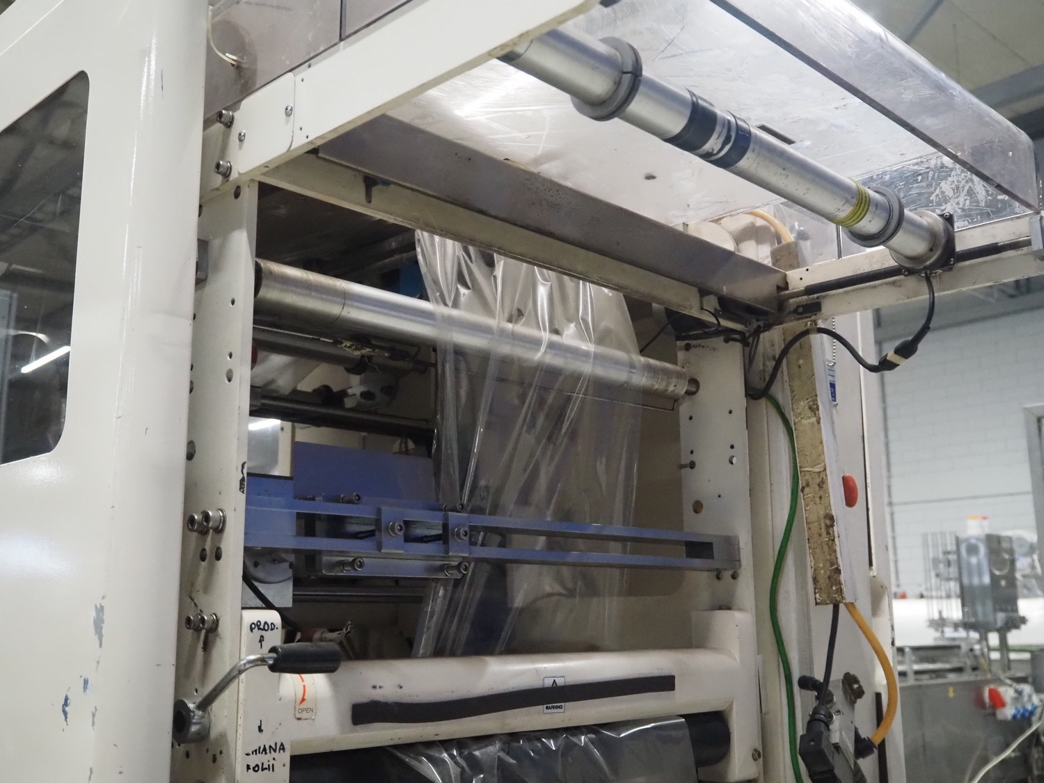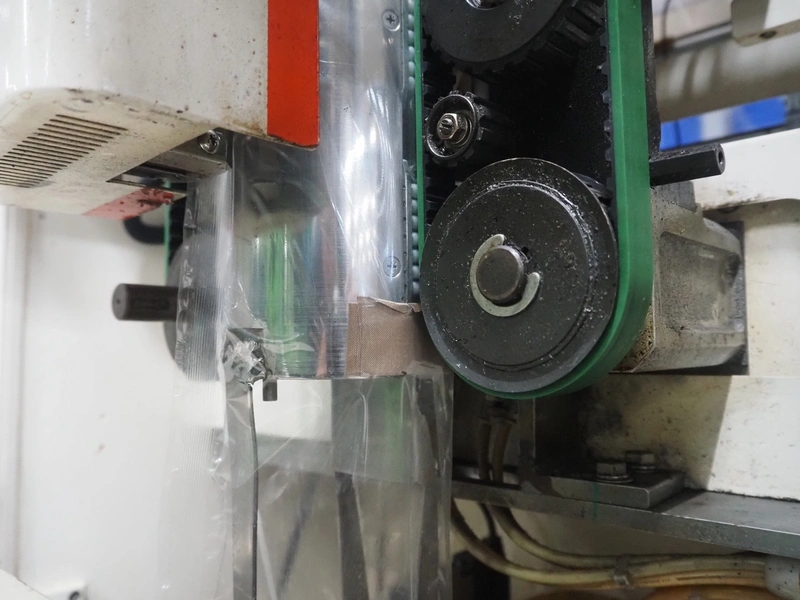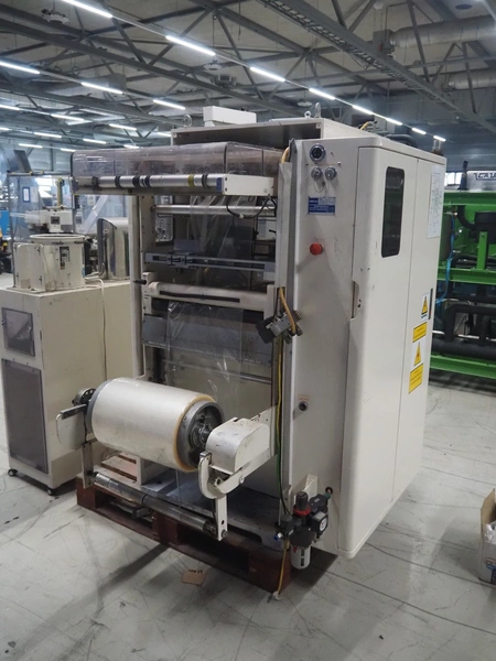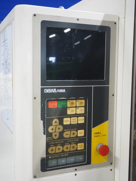 Kawashima vertical bag form-, fill-, and seal machine, model: KBF-6122, serial number: 824, year of construction: August 2001, film width: 370 mm, vertical seal length: 340 mm, horizontal seal length: 280 mm, total dimensions: 1700 mm x 1450 mm x 1810 mm.