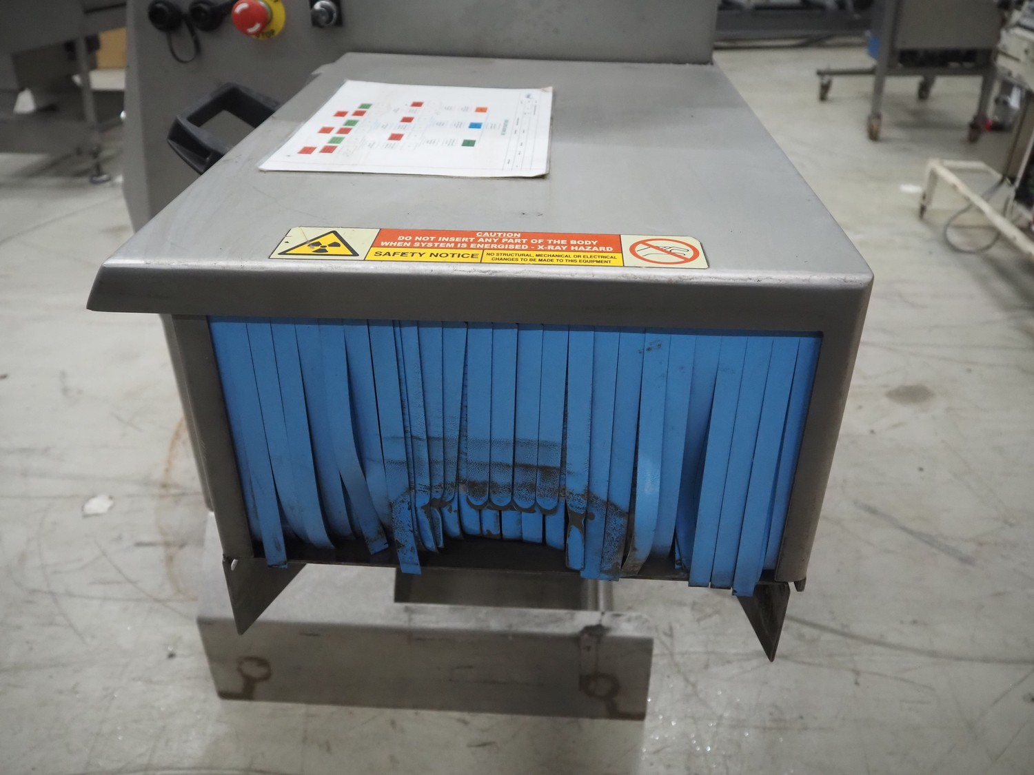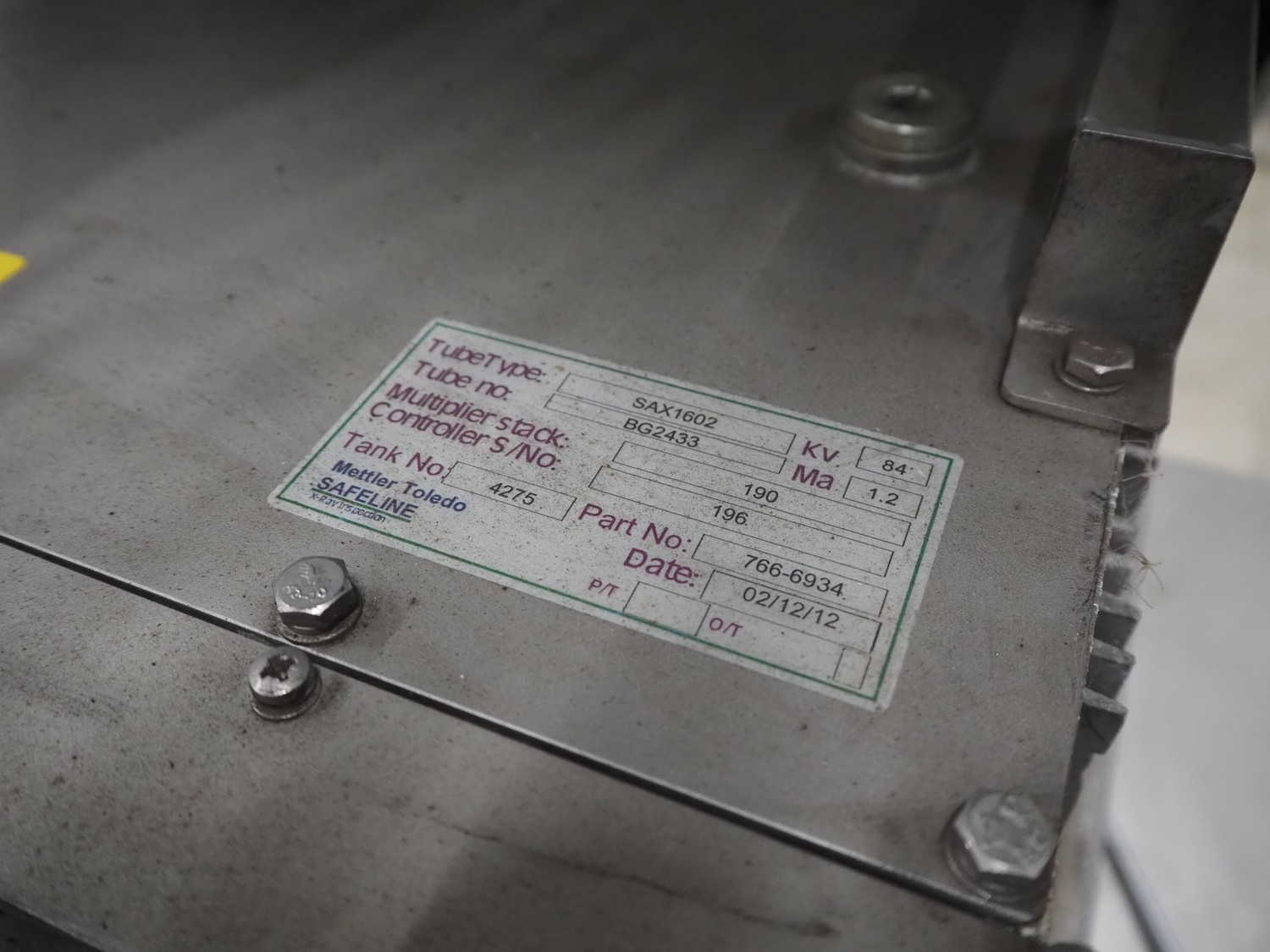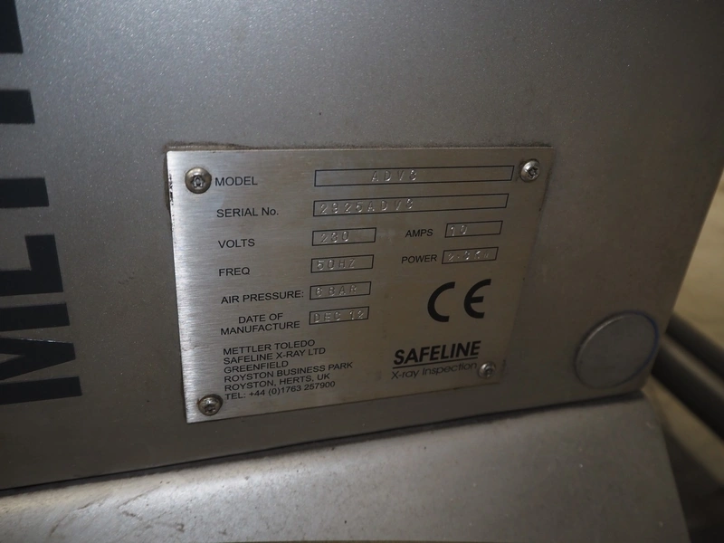 Mettler Toledo X ray scanner, model: ADV3, serial number: 2925ADV3, year of construction: 12-2012, 230 V, 50 Hz, 10 A, 2.3 kW, 6 bar, clearance: 360 mm x 200 mm, total dimensions: 2500 mm x 800 mm x 1700 mm. Missing belt.