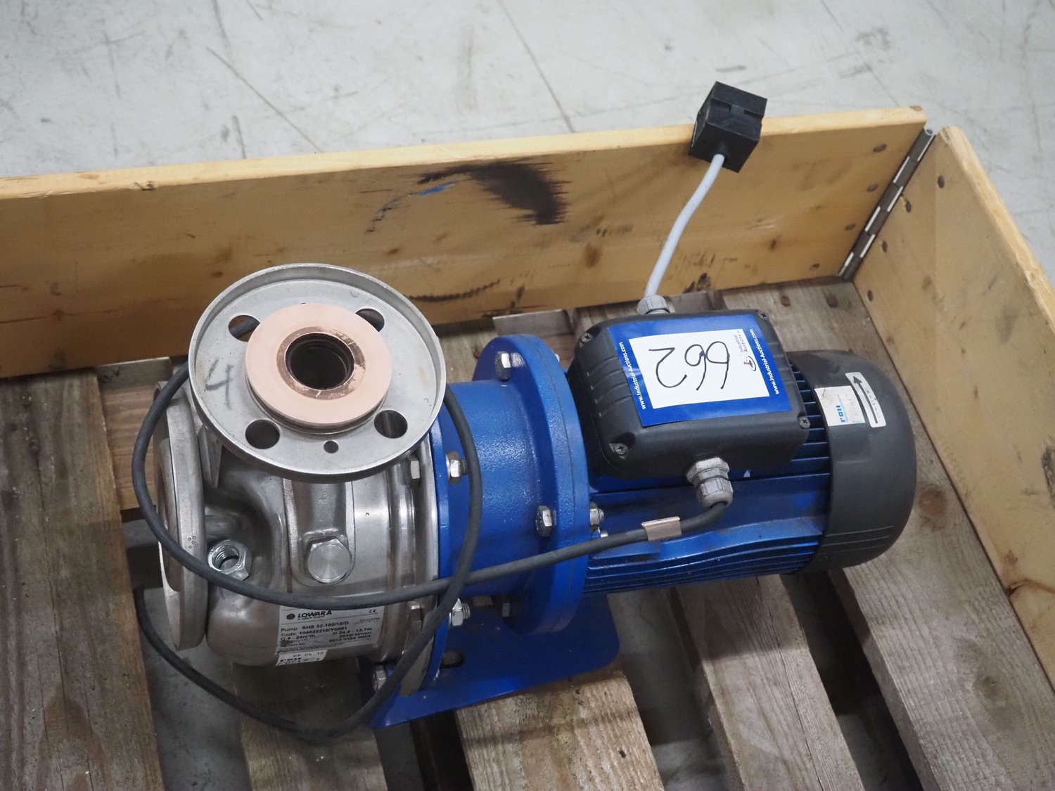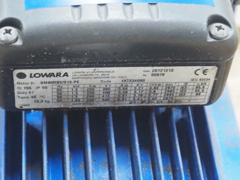 Lowara centrifugal pump, type: SHS 32-160/15/D, serial number: 2013 0326 0003, capacity: 9-24 m³ per hour, dimensions: 490 mm x 250 mm x 300 mm.