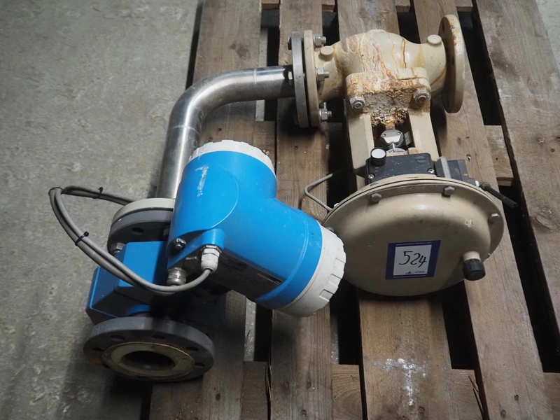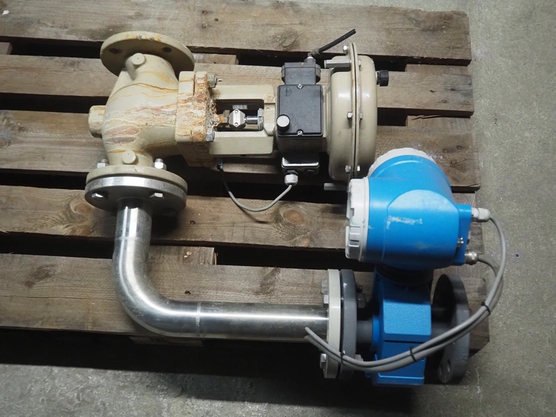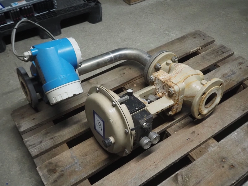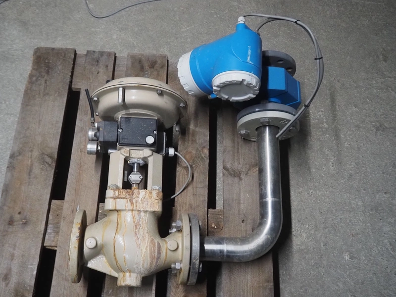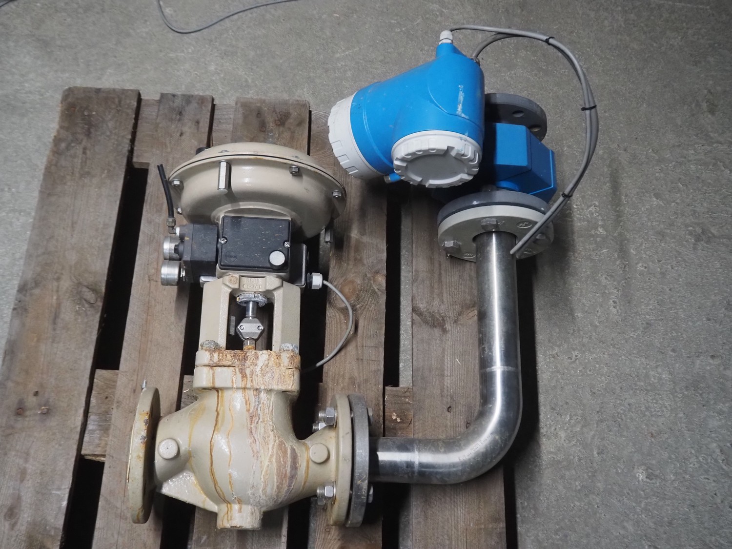 Samson valve with Endress + Hauser flowmeter, total dimensions: 670 mm x 400 mm x 630 mm.