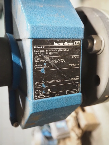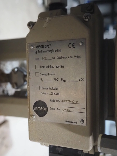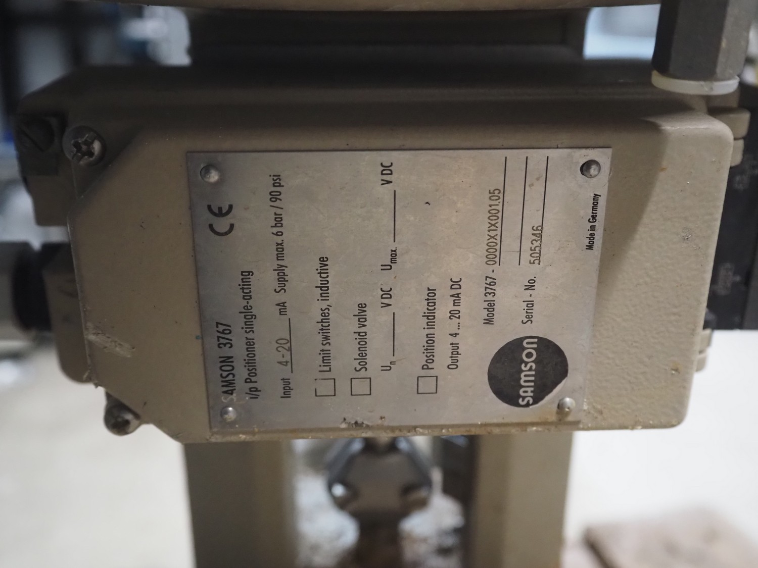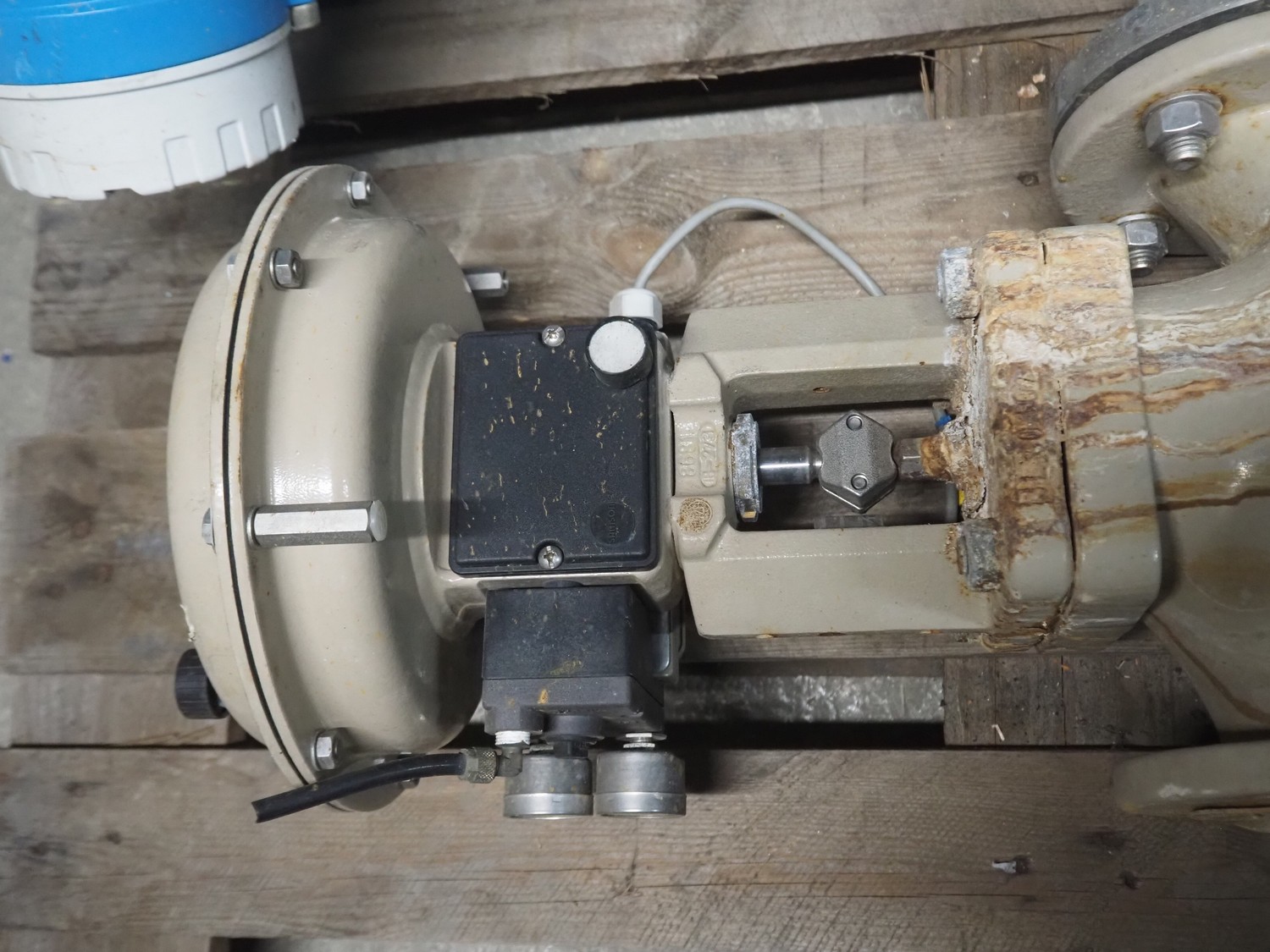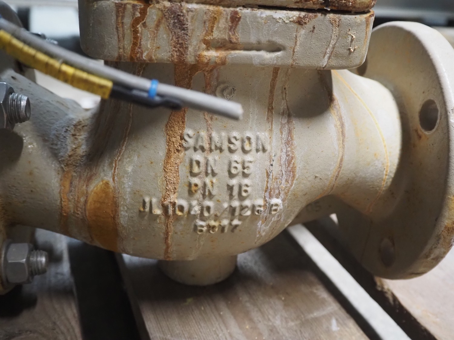 Samson valve with Endress + Hauser flowmeter, total dimensions: 670 mm x 400 mm x 630 mm.