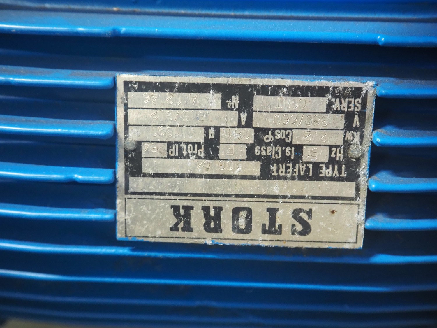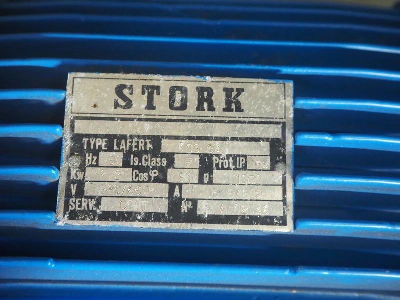 Stork flow pump, type: 100 C4, number: A 02 46, 380/660 V, 50 Hz, 2.2 kW, N: 1390, dimensions: 1650 mm x 750 mm x 500 mm.