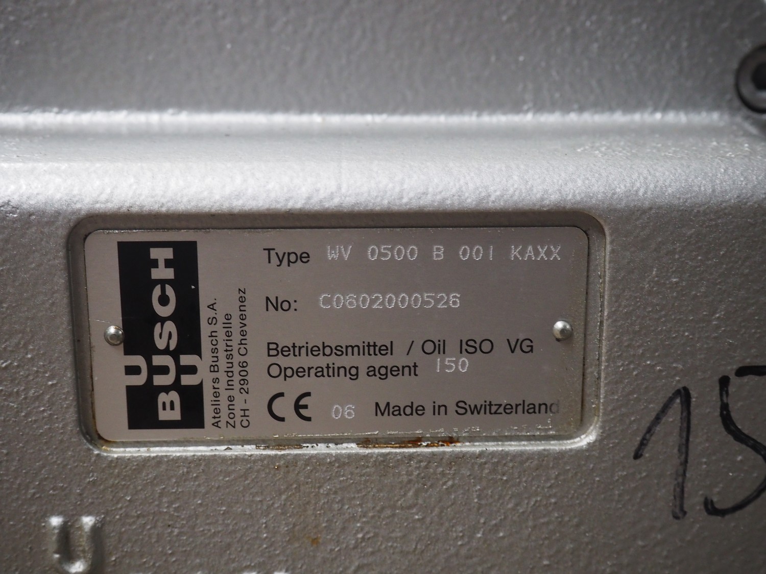 Busch booster vacuum pump, type: WV 0500 B 001 KAXX, number: C0602000526, capacity: 500 m³/h, dimensions: 900 mm x 300 mm x 300 mm.