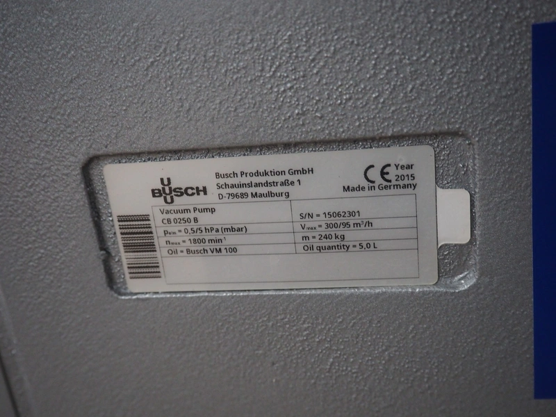Busch vacuum pump, type: CB 0250, serial number: 15062301, year of construction: 2015, capacity: 300 m³/h, dimensions: 1100 mm x 500 mm x 700 mm.