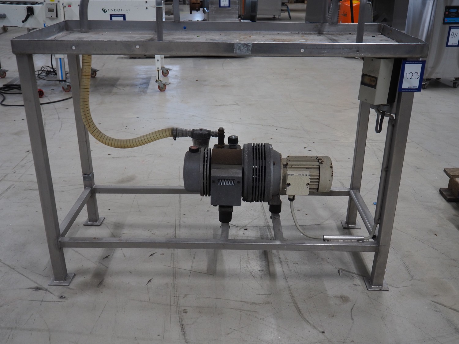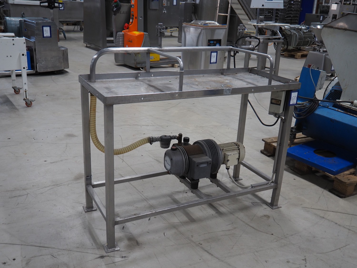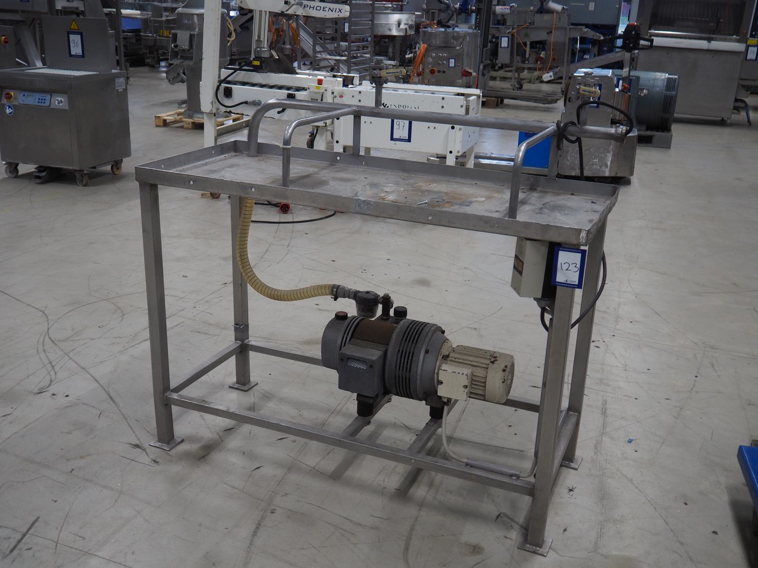 S/s table with Rietschle vacuum pump, dimensions: 550 mm x 1300 mm x 1260 mm.