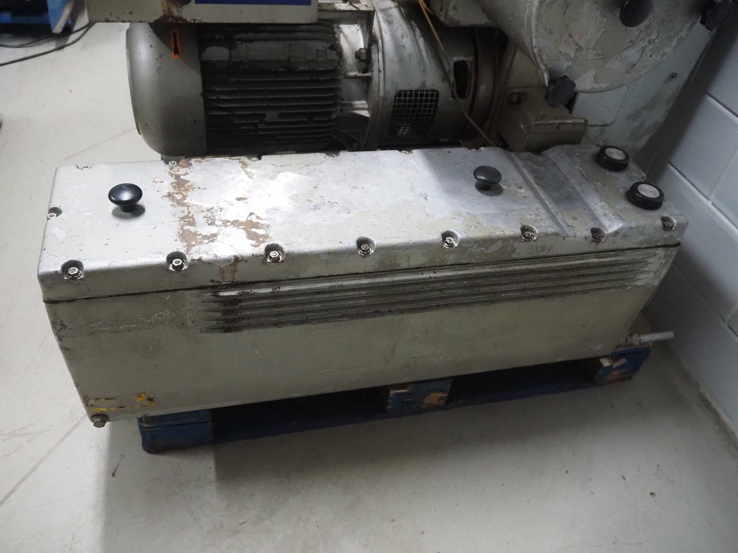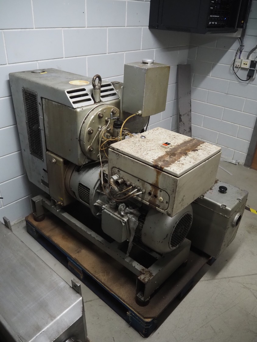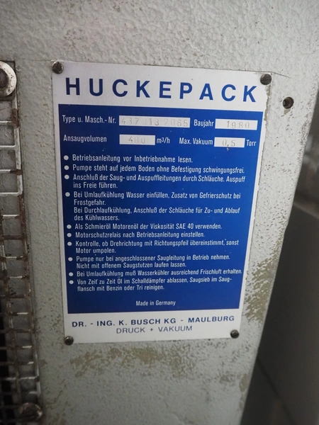 Huckepack vacuum pump, type: 437 013, machine number: 2065, year of construction: 1980, capacity: 400 m³ per hour, dimensions: 1400 mm x 850 mm x 1300 mm.