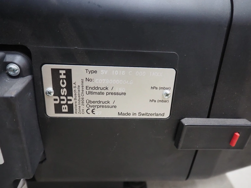 Busch vacuum pump, type: SV 1016 C 000 IHXX, number: C0730000049, year of construction: 2007, nominal pump speed: 16 m³ per hour, dimensions: 440 mm x 220 mm x 410 mm.