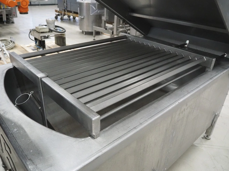 S/s degreasing tank, inside dimensions: 940 mm x 1700 mm x 500 mm, total dimensions: 2170 mm x 1150 mm x 1190 mm.