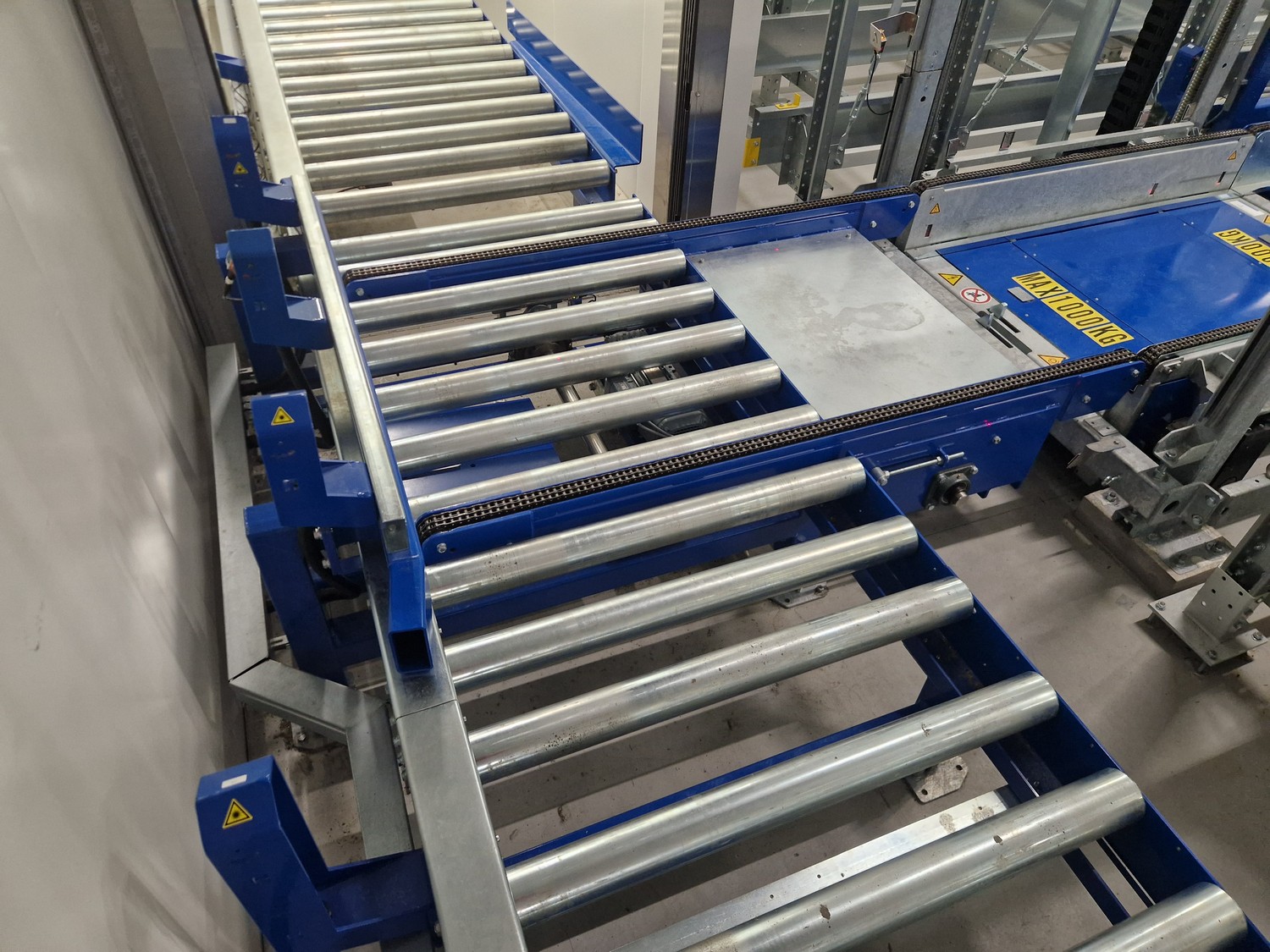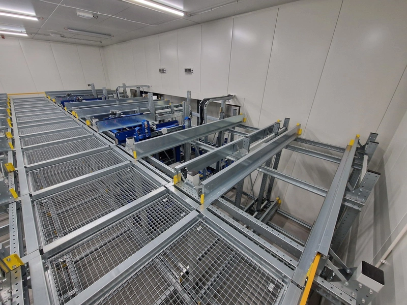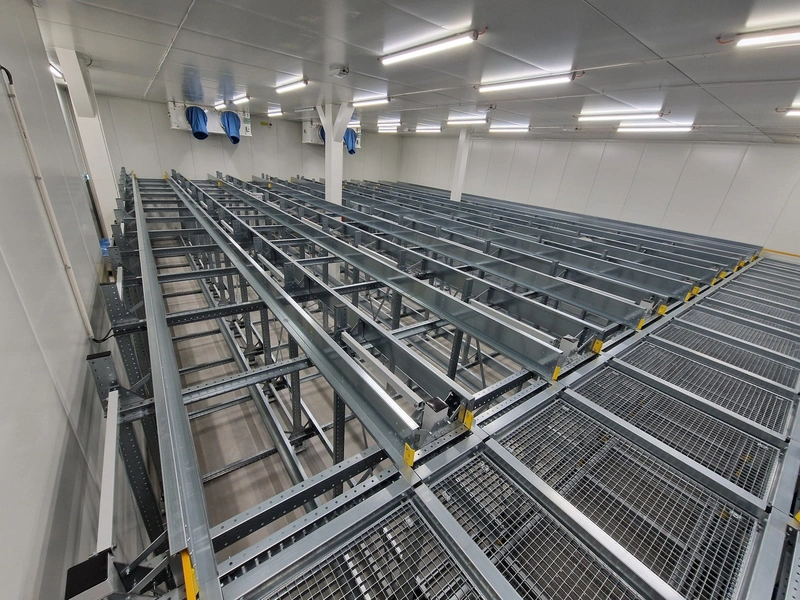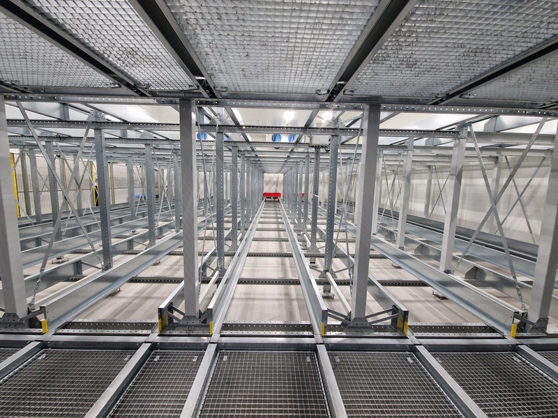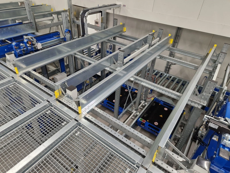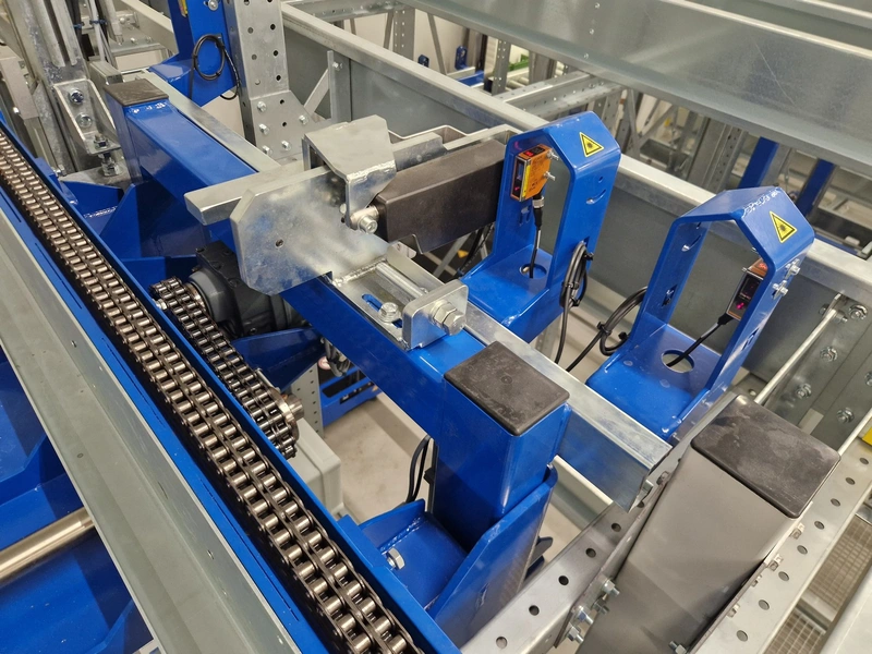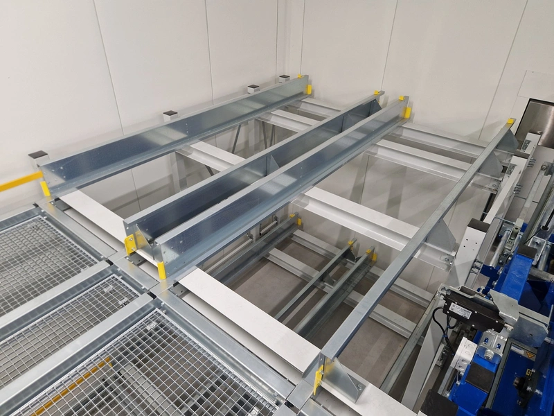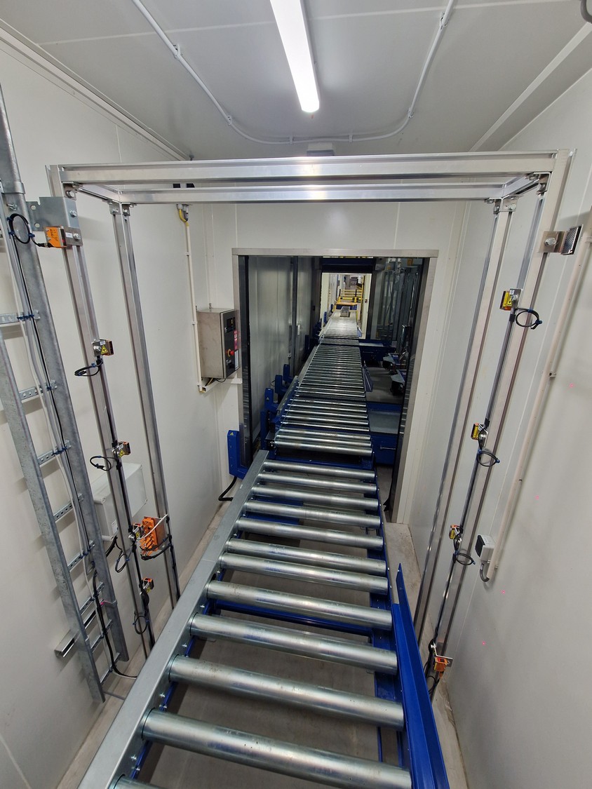 • iCube pallet transport, 8 lanes, distance between conductors: 970 mm, length for top and bottom lanes: (8x) 15450 mm and (4x) 3270 mm;