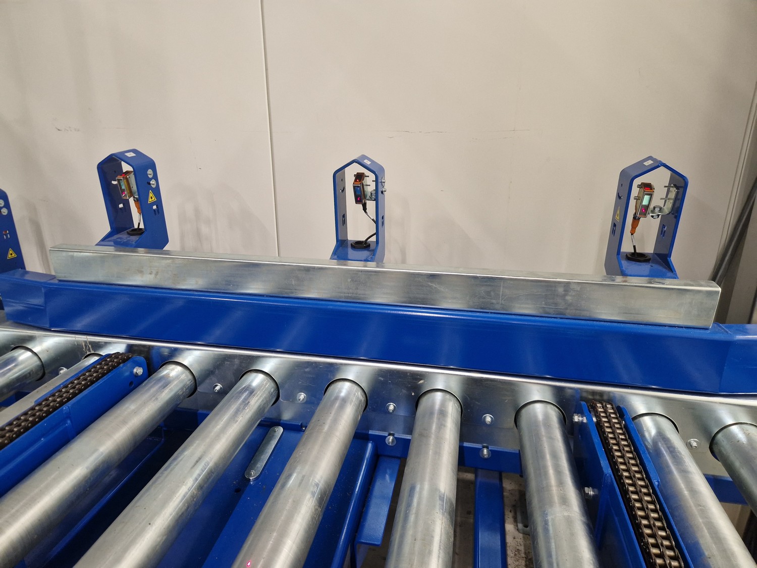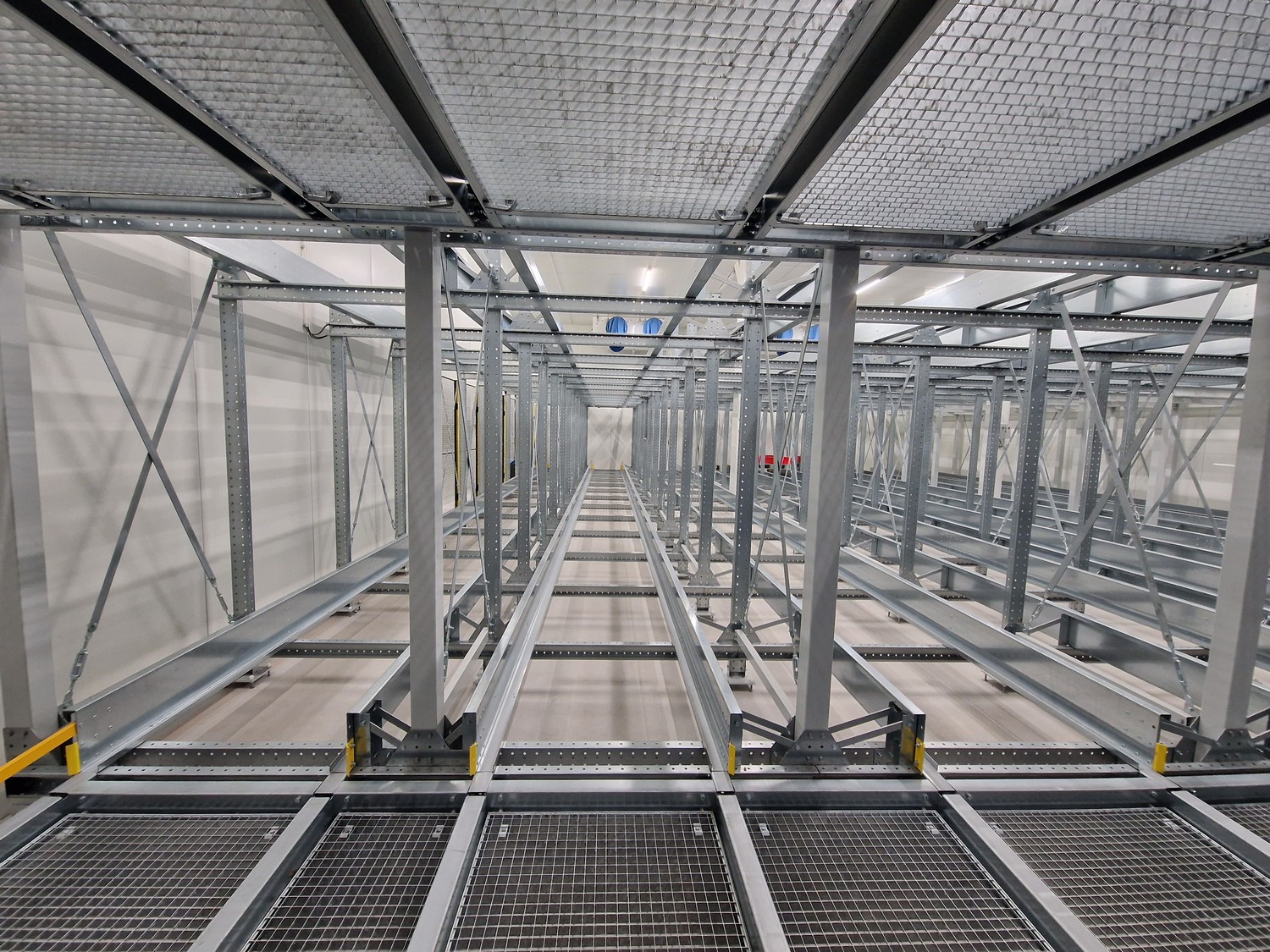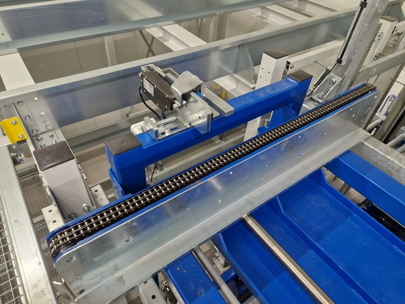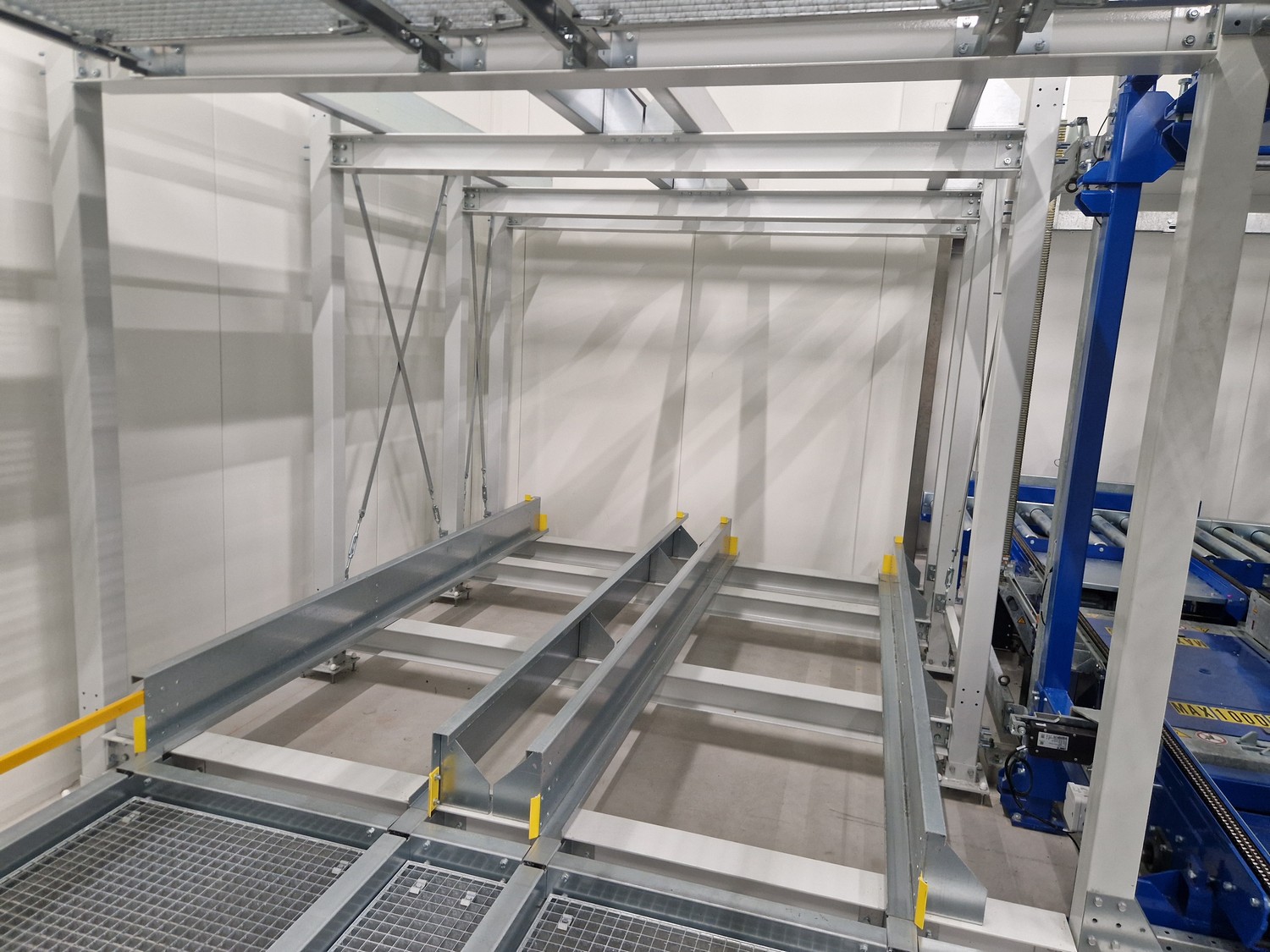 • iCube pallet transport, 8 lanes, distance between conductors: 970 mm, length for top and bottom lanes: (8x) 15450 mm and (4x) 3270 mm;