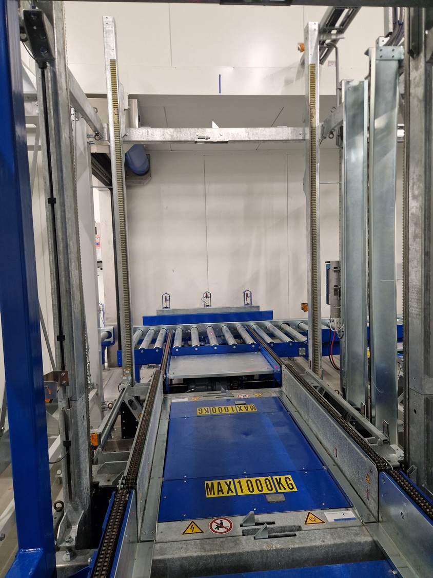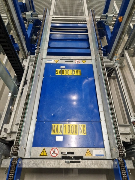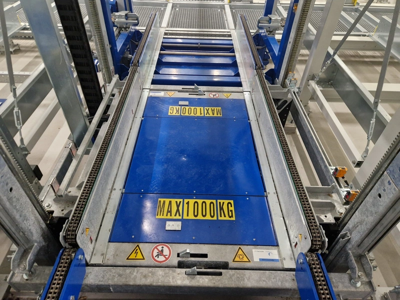 • 2 iCUBE vertical transporters, 400 V, 6.25 kW, speed: 0.2 m/s, weight: 900 kg, maximum lifting weight: 650 kg, dimensions: 1632 mm x 1825 mm x 3060 mm;