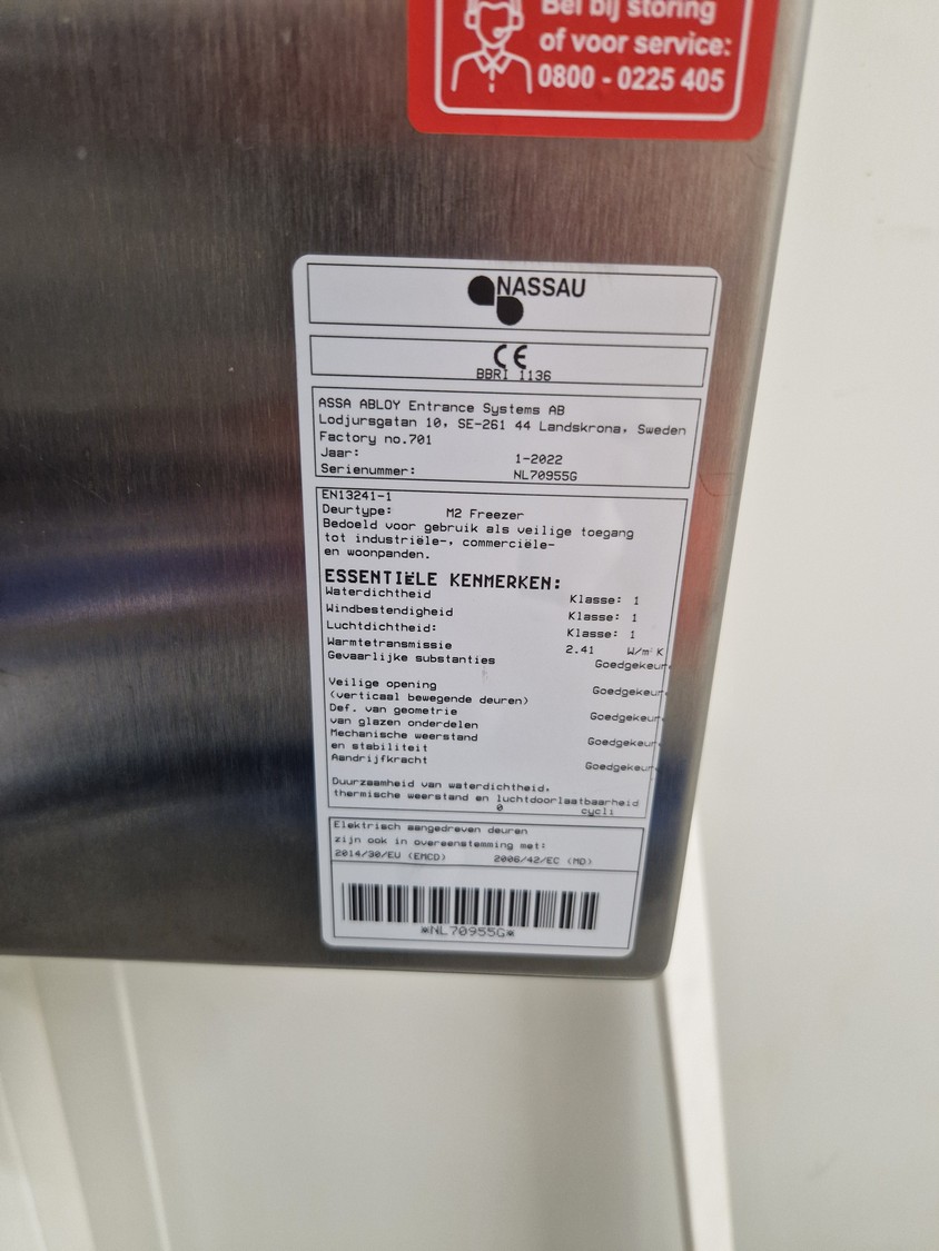 • 2 Nassau electric shutter doors, type: M2 Freezer, serial number: NL70955H and NL70955G, year of construction: 1-2022.