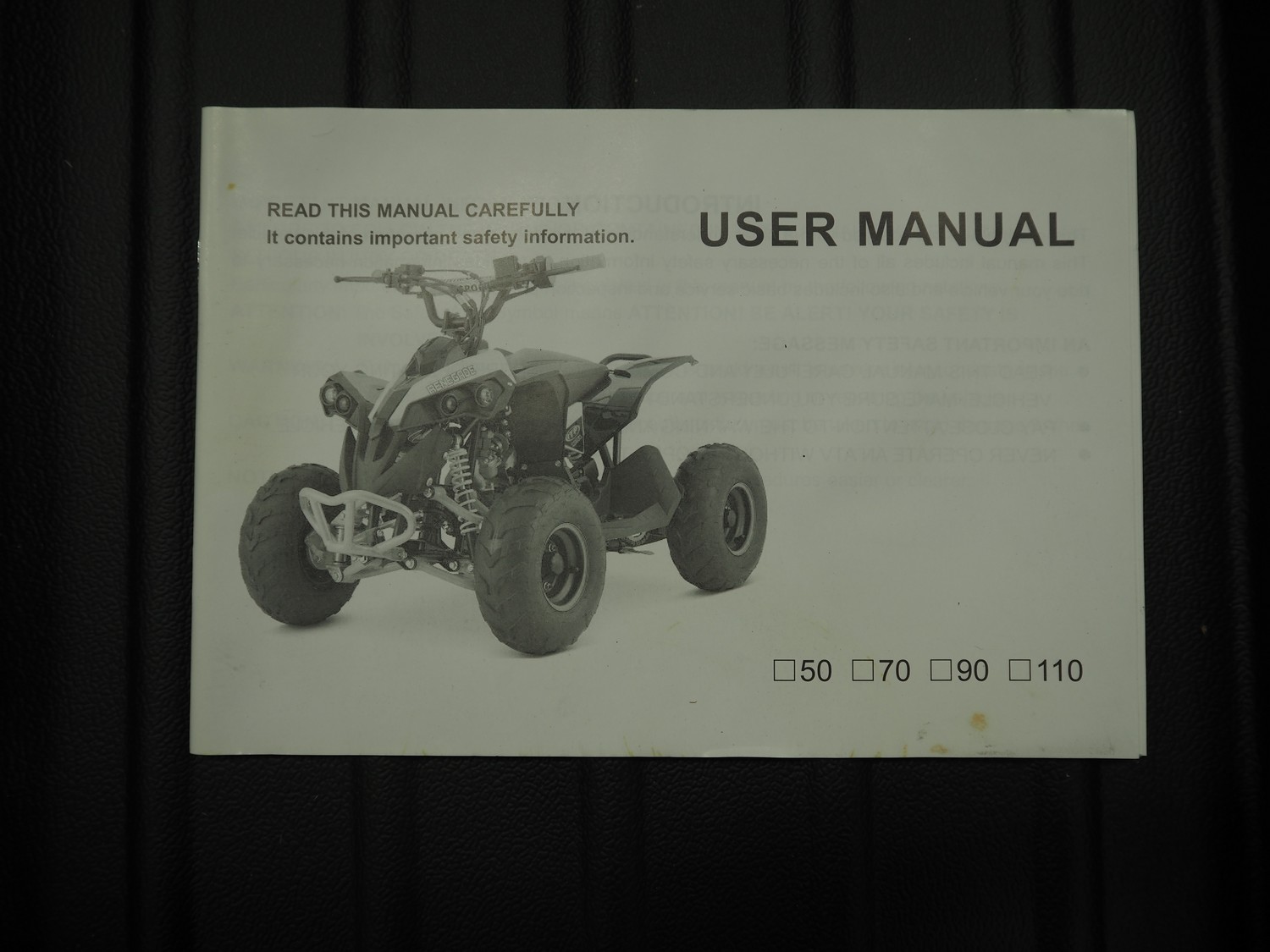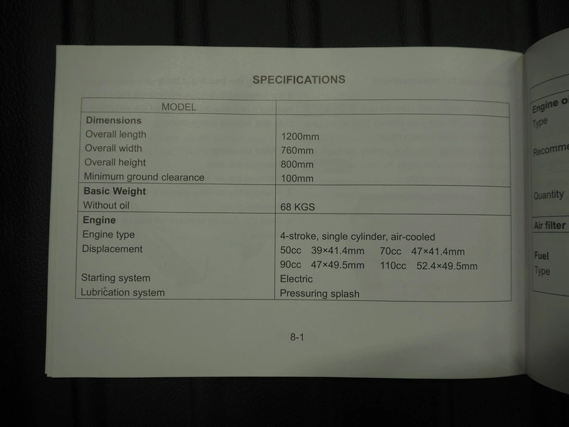 Quad, 4-stroke engine, single cylinder, air-cooled, dimensions: 720 mm x 1300 mm x 770 mm.