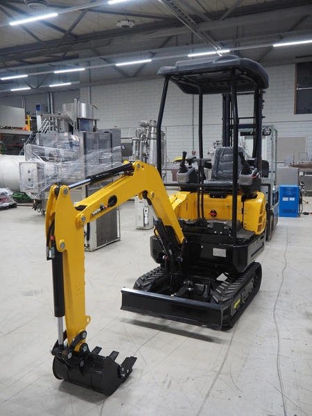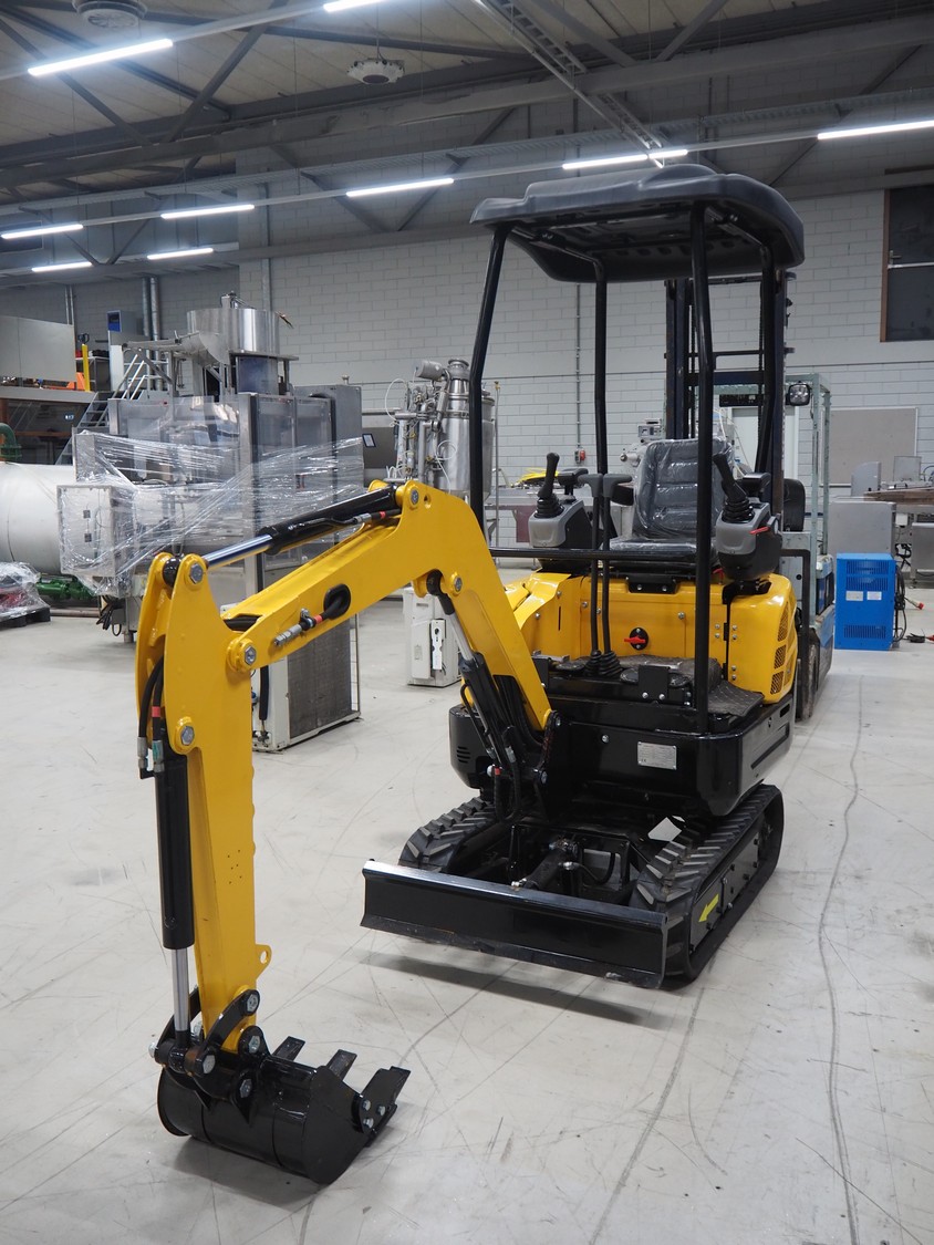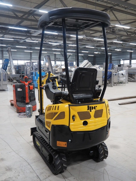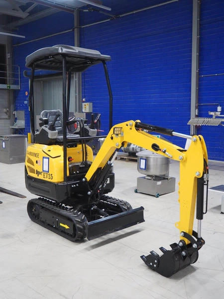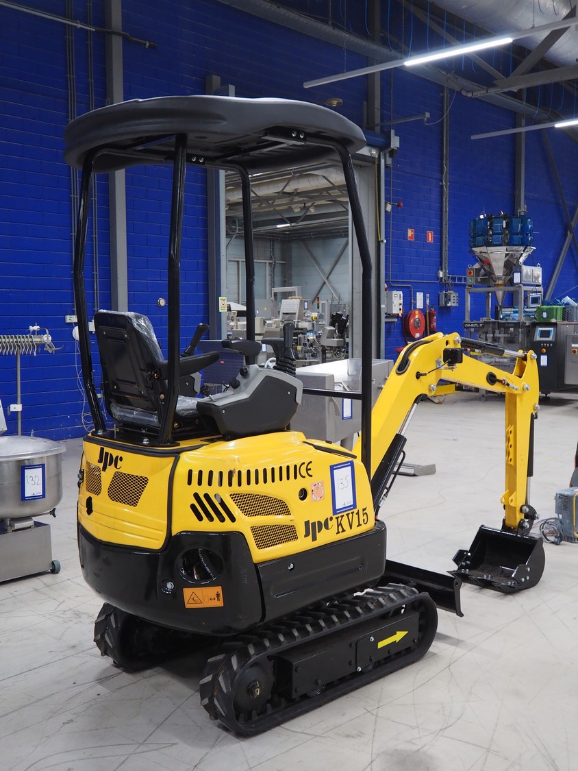 JPC excavator, model: KV15, serial number: 2506010, year of construction: 2025, maximum forward speed: 5 km/h, maximum digging depth: 1650 mm, maximum operating weight: 1500 kg, dimensions: 2700 mm x 1000 mm x 2300 mm.