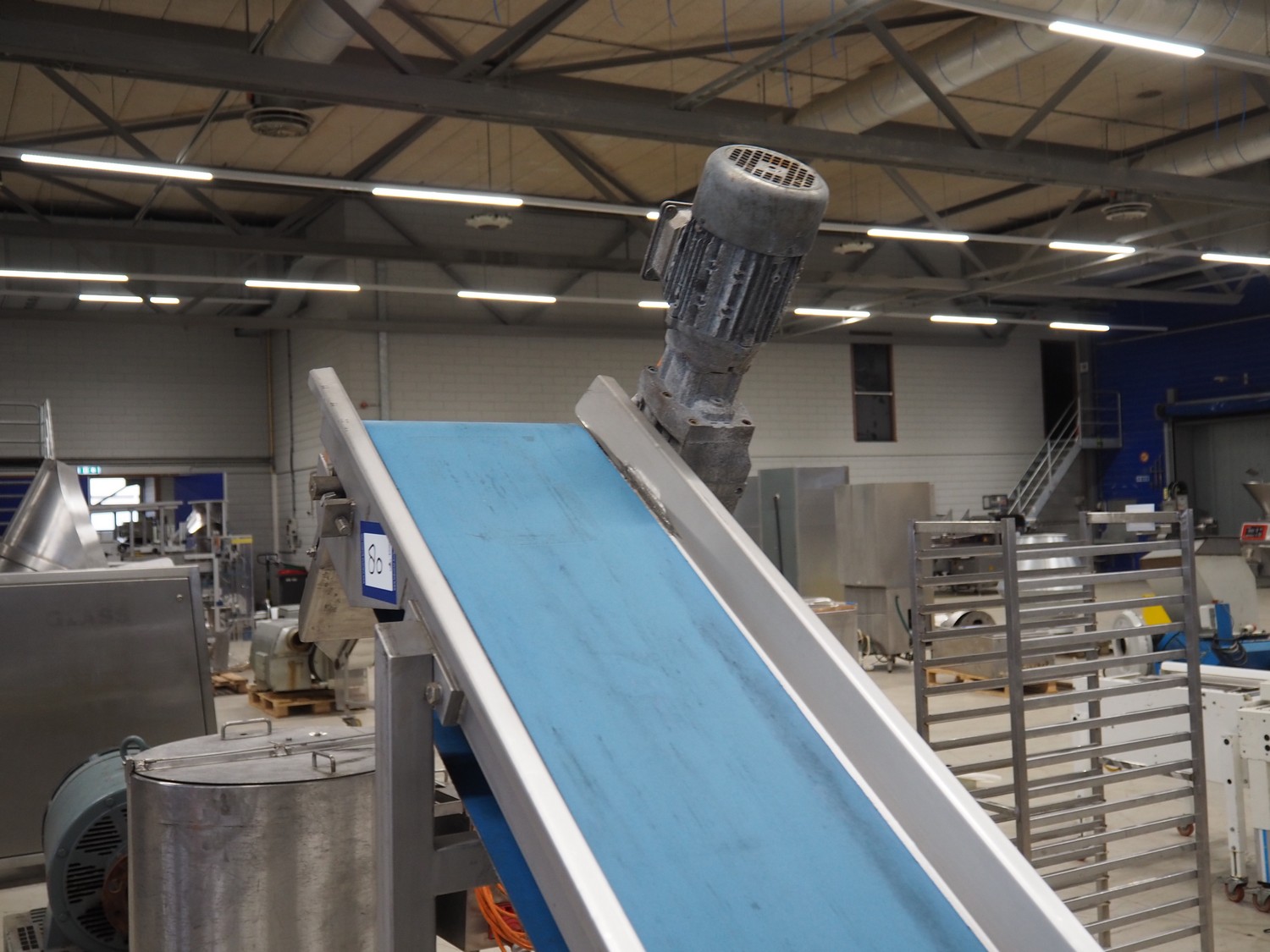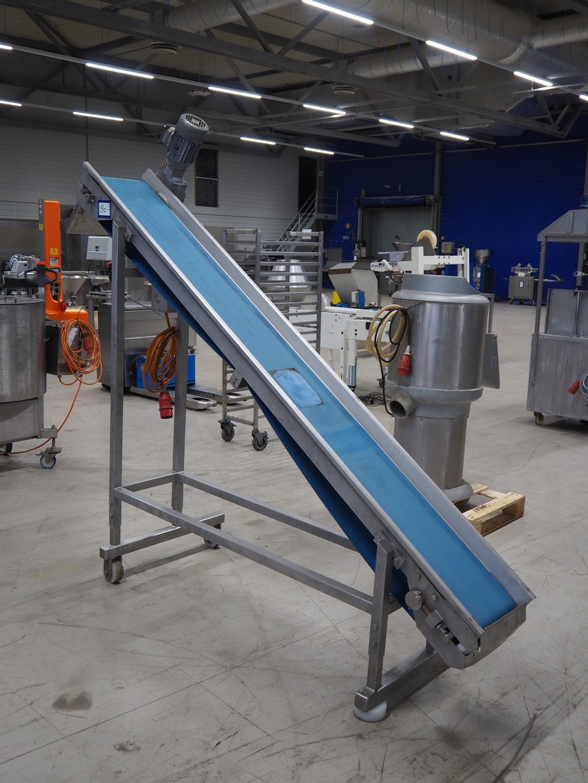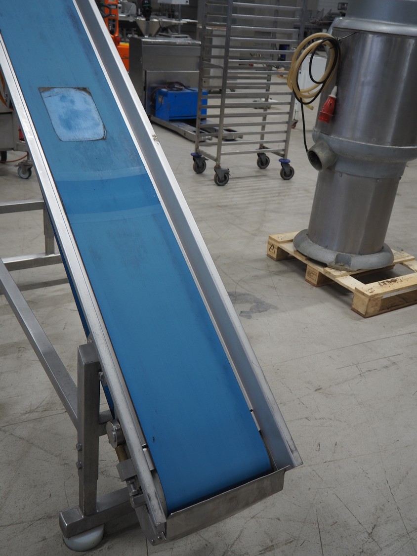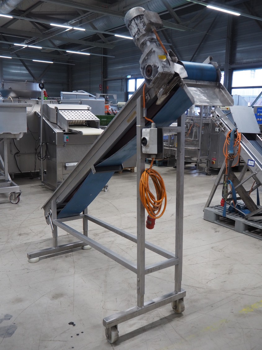 Nieros mobile elevating belt, plastic belt, belt width: 255 mm, elevating height: 1780 mm, total dimensions: 2150 mm x 700 mm x 2050 mm.