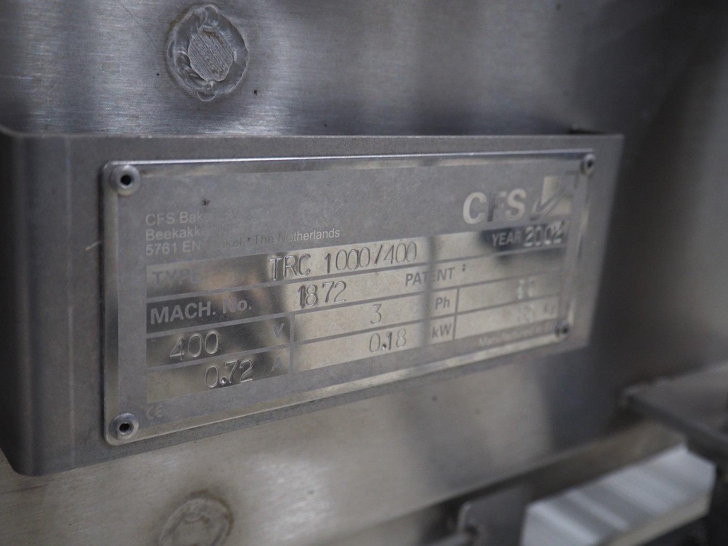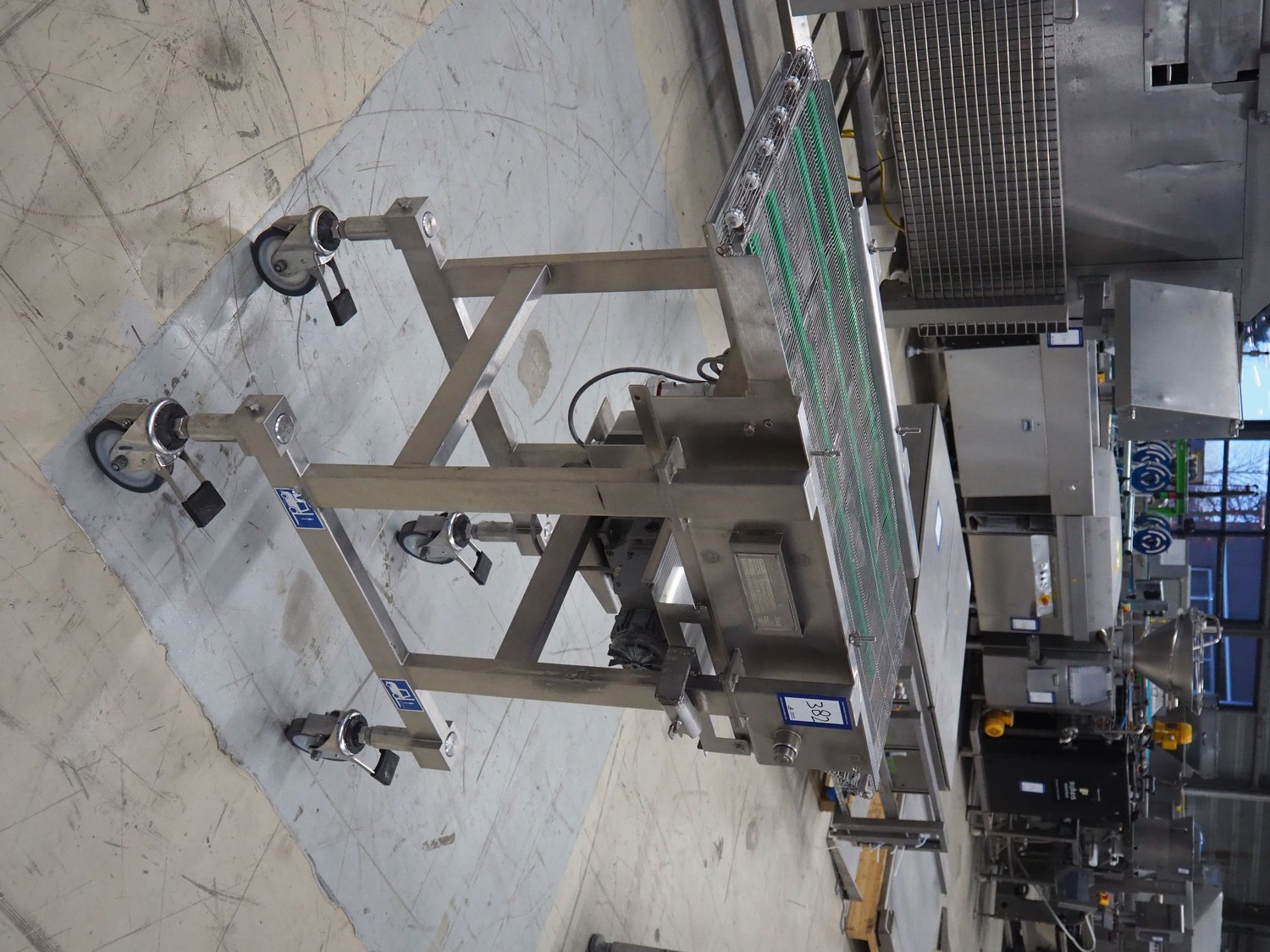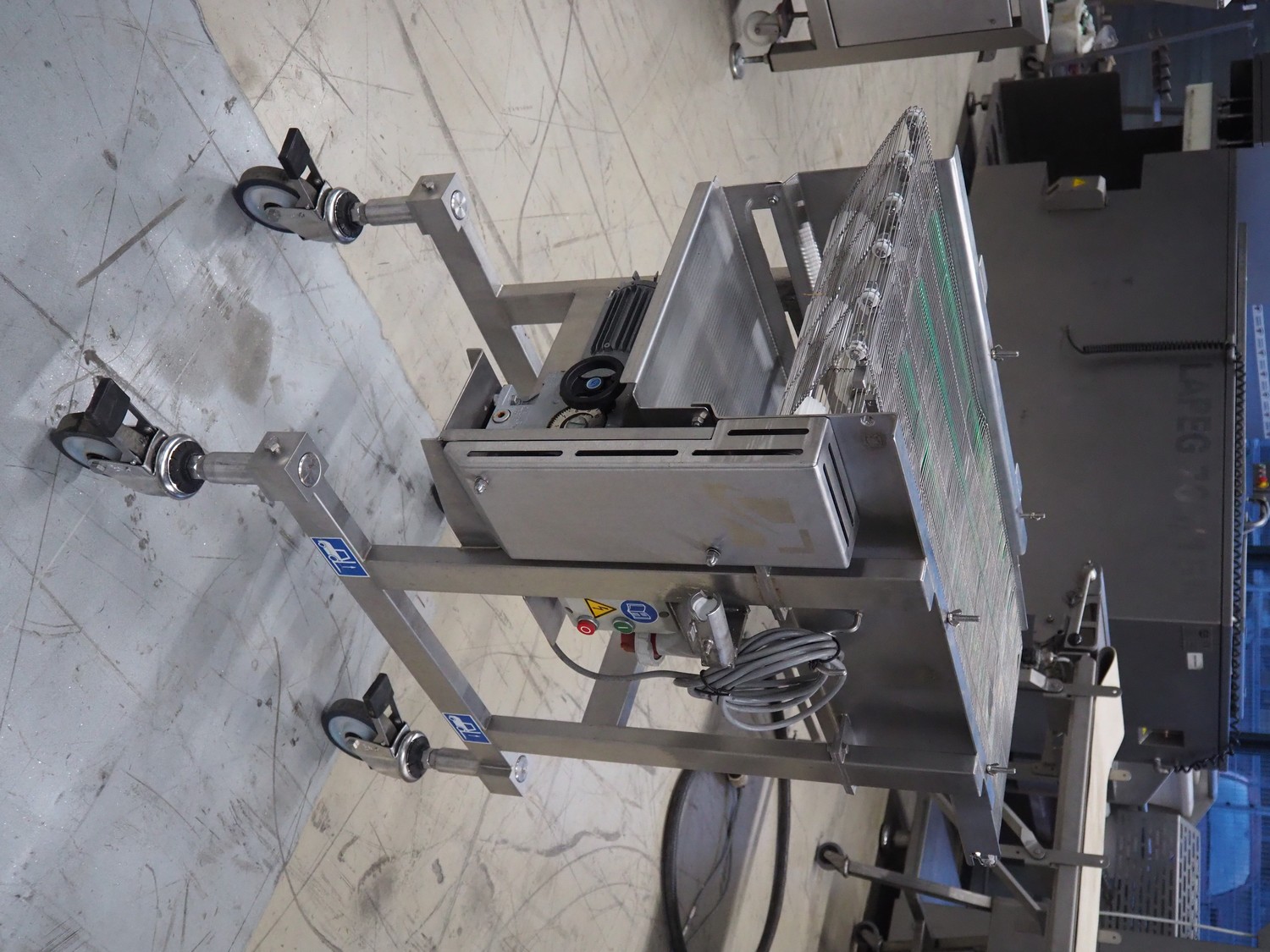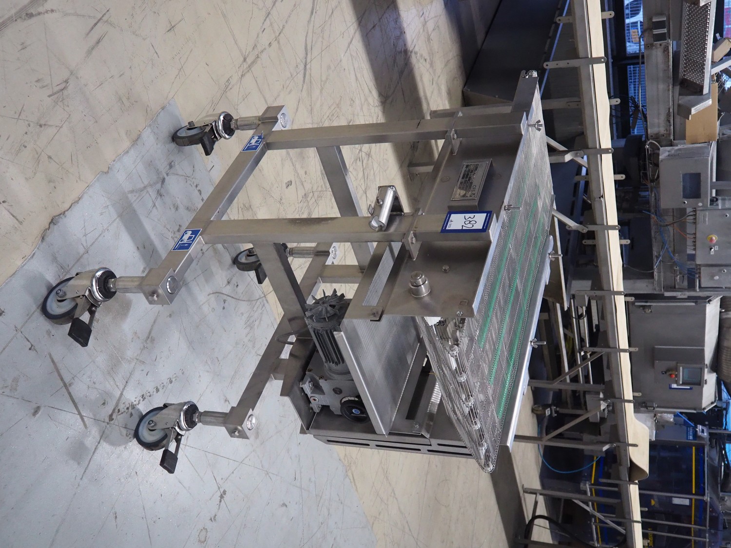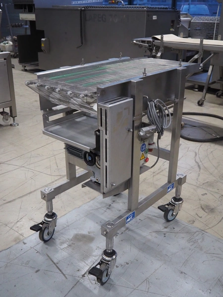 CFS mobile mesh belt, type: TRC 1000/400, machine number: 1872, year of construction: 2002, 400 V, 3 Ph, 50 Hz, 0.72 A, 0.18 kW, 85 kg, s/s frame, s/s mesh belt, belt width: 400 mm, total dimensions: 1100 mm x 600 mm x 1050 mm.