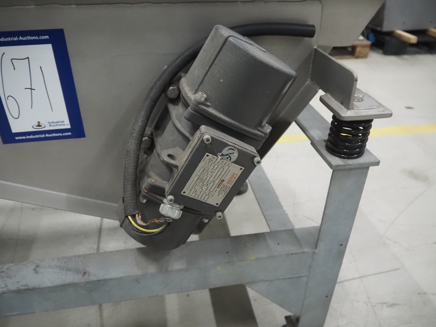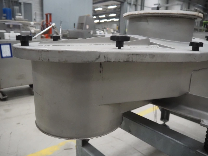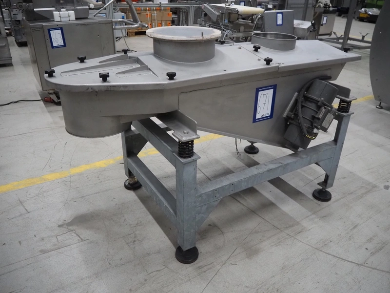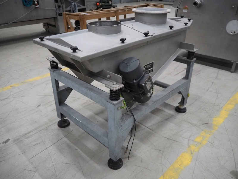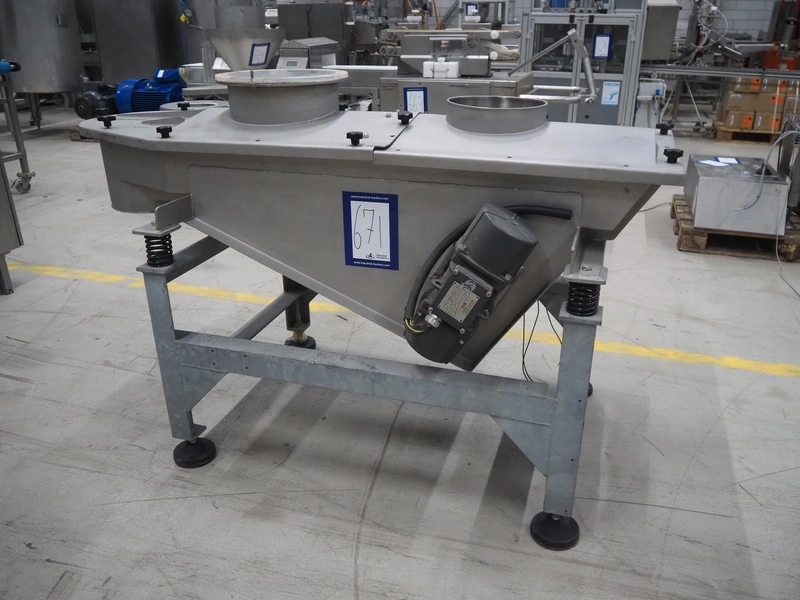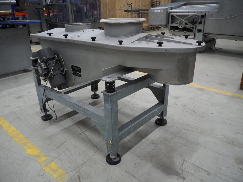 SIG Packaging Technology s/s vibrating gutter, serial number: MV 1058, gutter width: 500 mm, total dimensions: 1800 mm x 900 mm x 1100 mm.