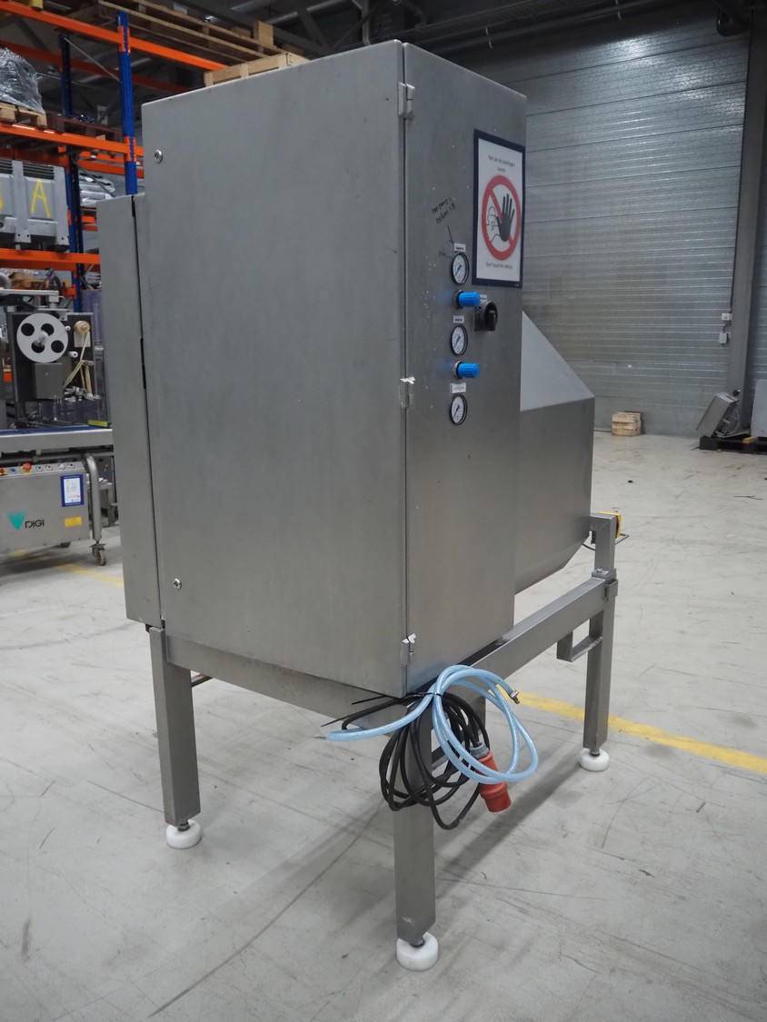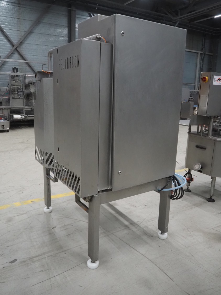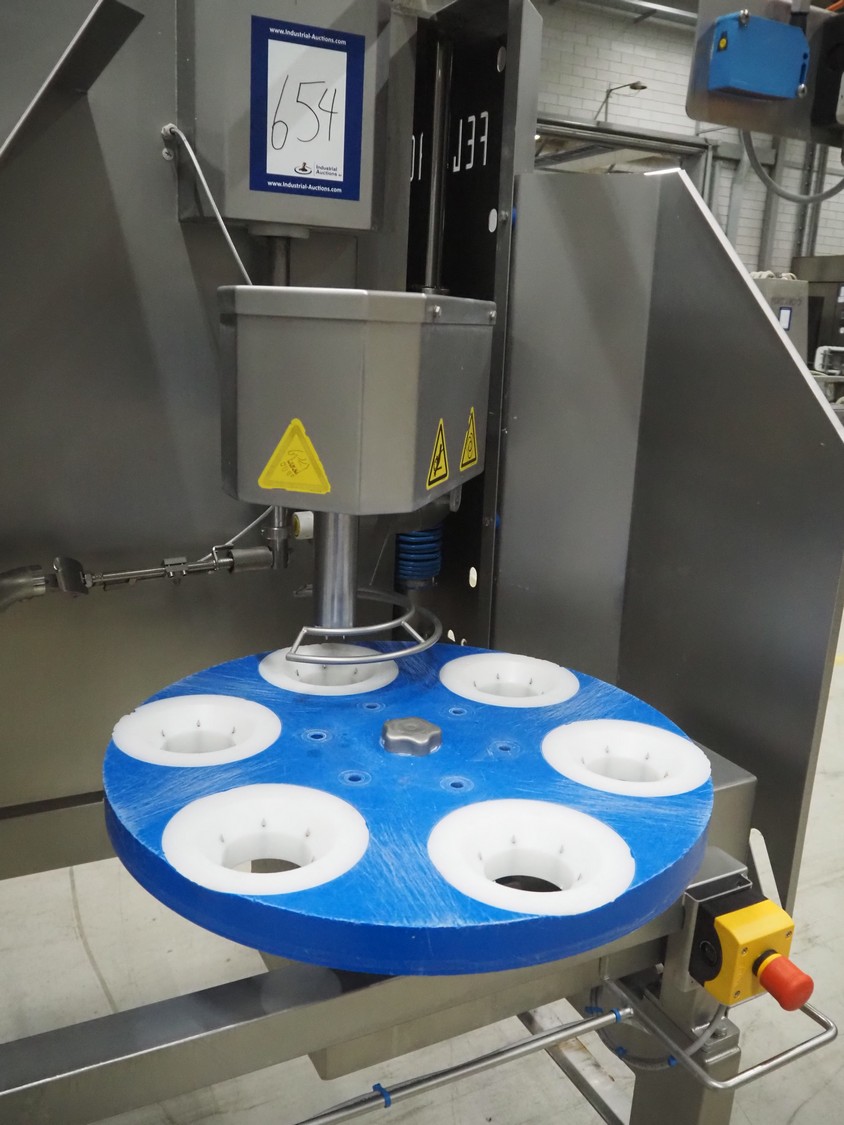 Feltracon melon peeler for 6 melons, type: 61M, number: 3615-61M1, year of construction: 2009, 230/400 V, 0.6 kW, diameter each station: 105 mm, total dimensions: 1450 mm x 980 mm x 2050 mm.