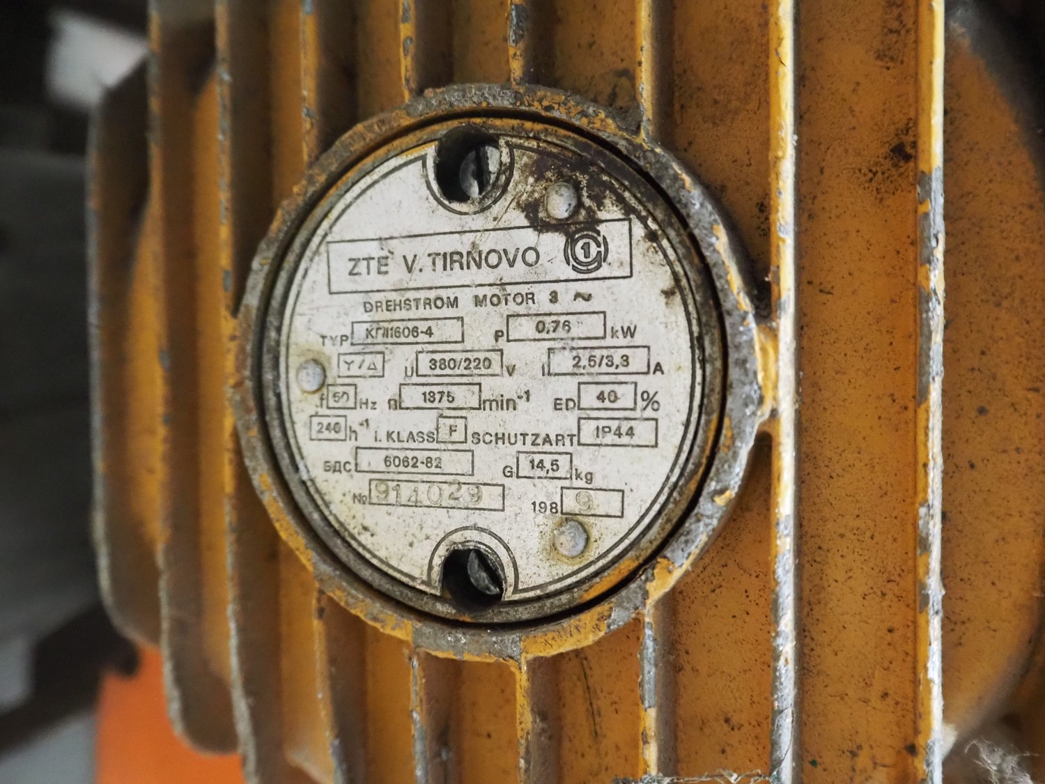 ZTE V. Tirnovo chain hoist, type: KR11606-4, number: 914029, year of construction: 1989, 220/380 V, 50 Hz, 2.5/3.3 A, 0.75 kW, dimensions: 850 mm x 300 mm x 490 mm.