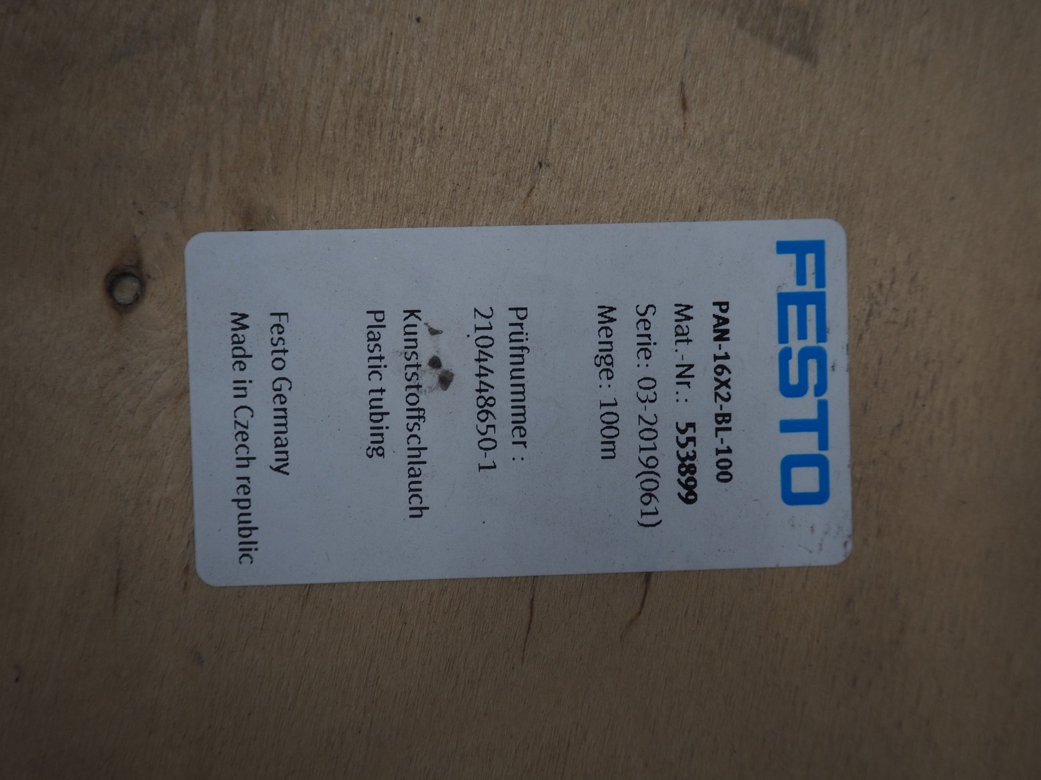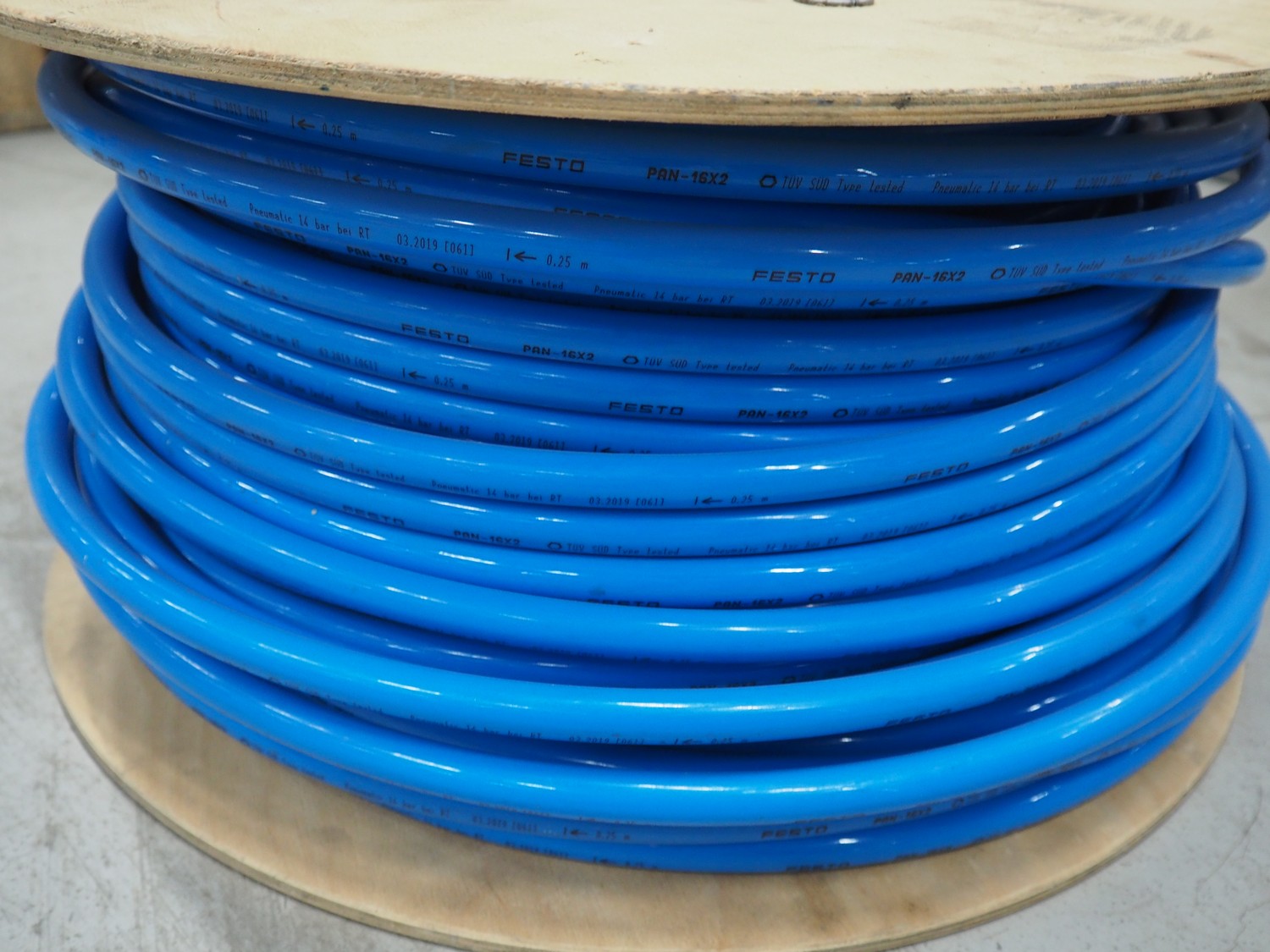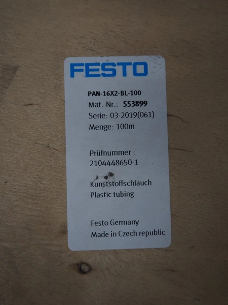 Festo roll with air hose, model: PAN-16X2-BL-100, serial: 03 - 2019, length roll: 100 meter.