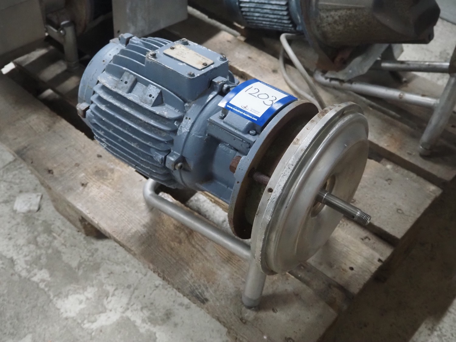 Electro motor, 380 V, 3 Ph, 50 Hz, 9.6 A, 0.85 kW, dimensions: 750 mm x 280 mm x 390 mm.